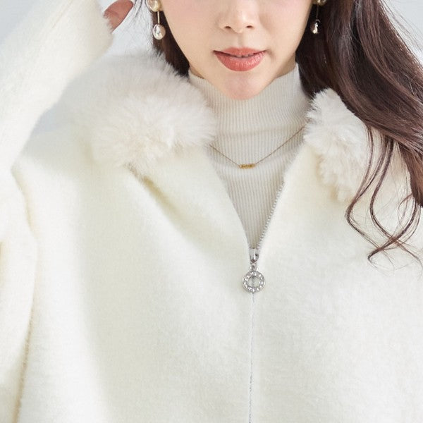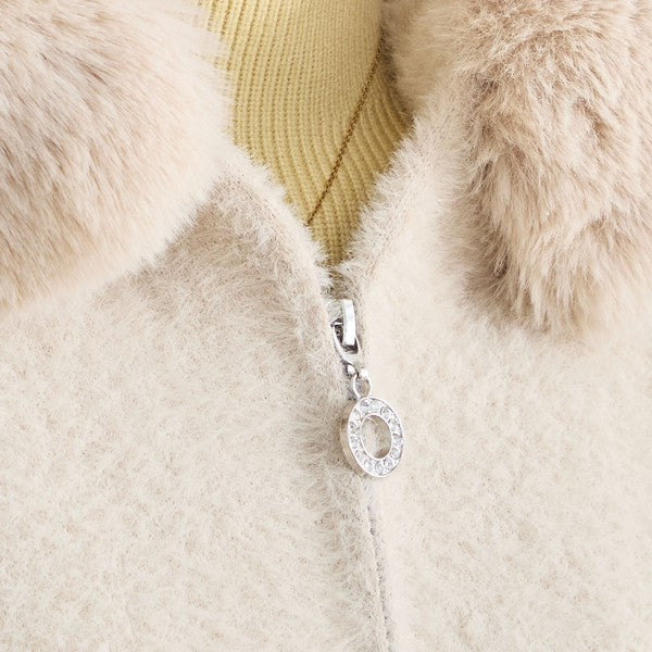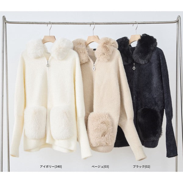 #秋の着回し vol.9 |【M〜L】華やかファー襟付き!上品ショート丈「ジップニットジャケッ...