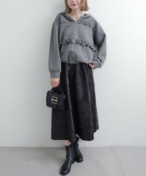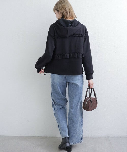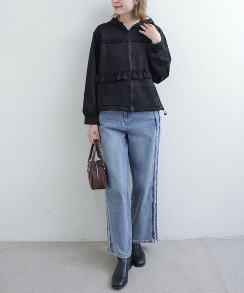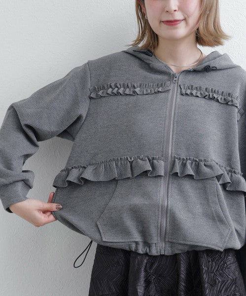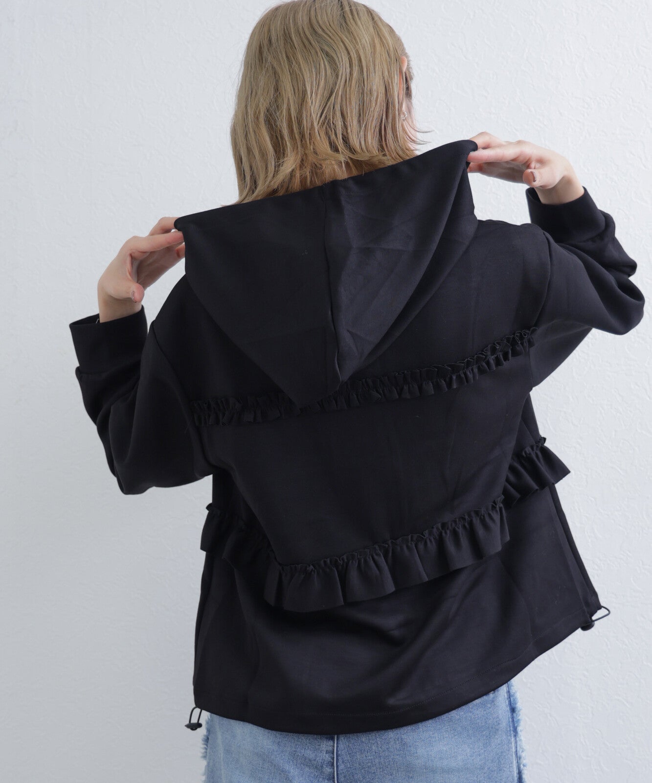 【M〜L】フリルジャケット|フード付き・2段フリル・調整可能裾・レディースアウター・chouchou 201798