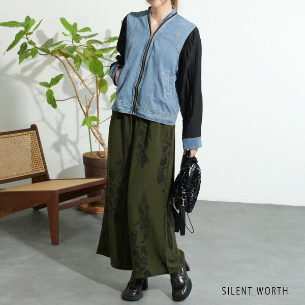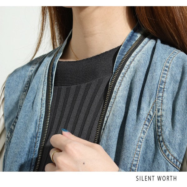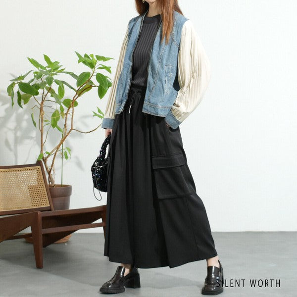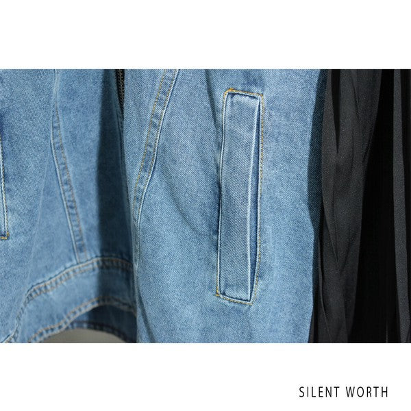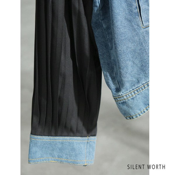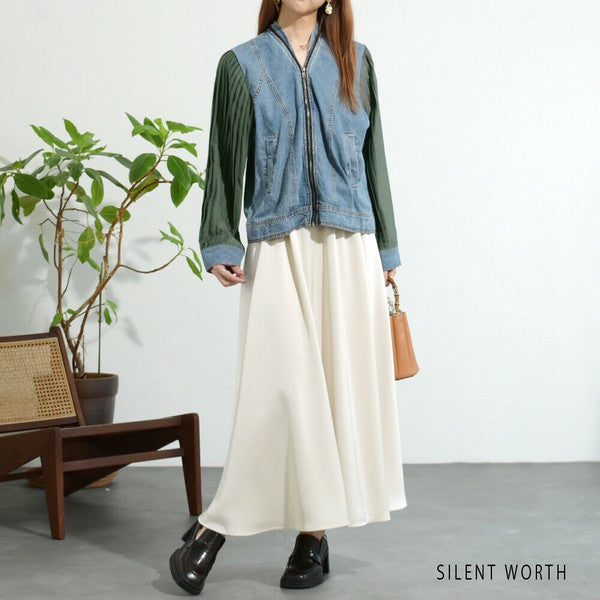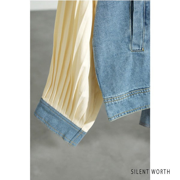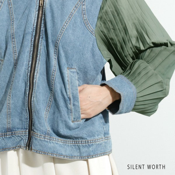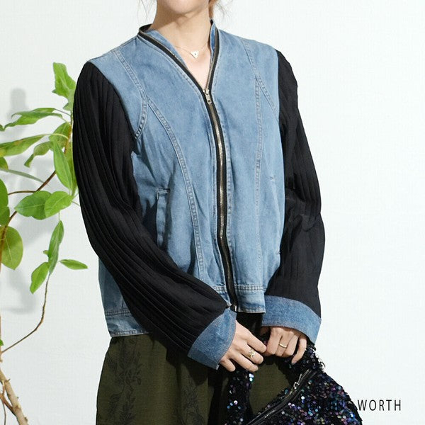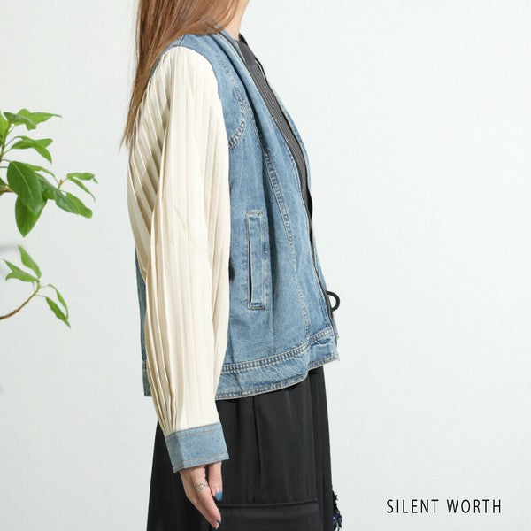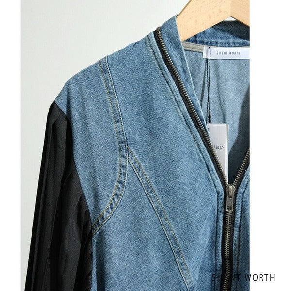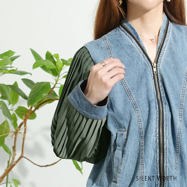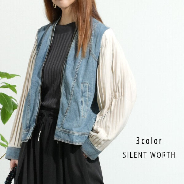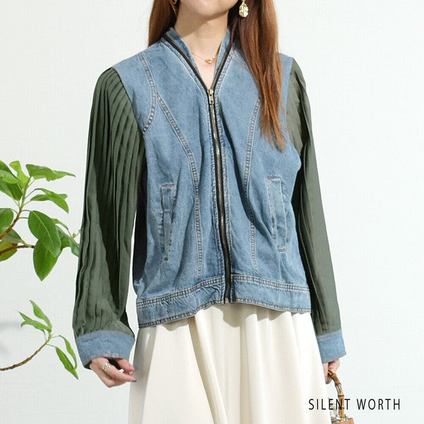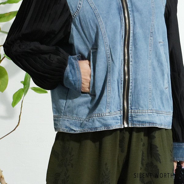 【M】プリーツ×デニム切替ジャケット|異素材コンビ・カジュアルアウター・SILENT WORTH N-2865