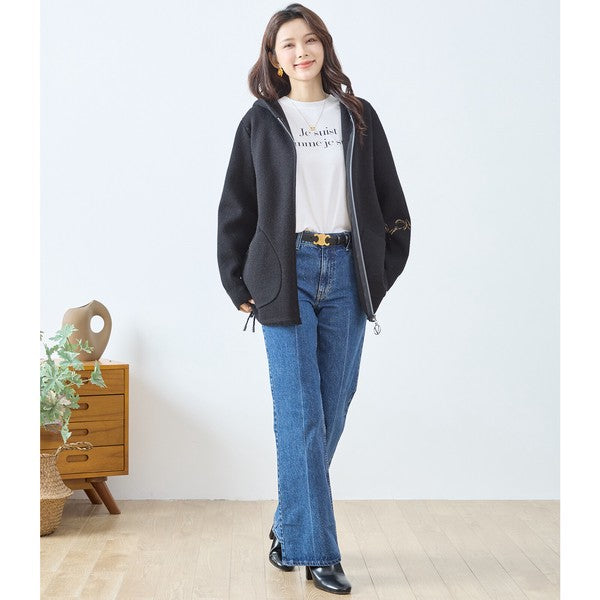 【M〜L】ふわふわポケット付きファーフードブルゾン|暖かリッチ・大人かわいい・TRUBE・N25-091B