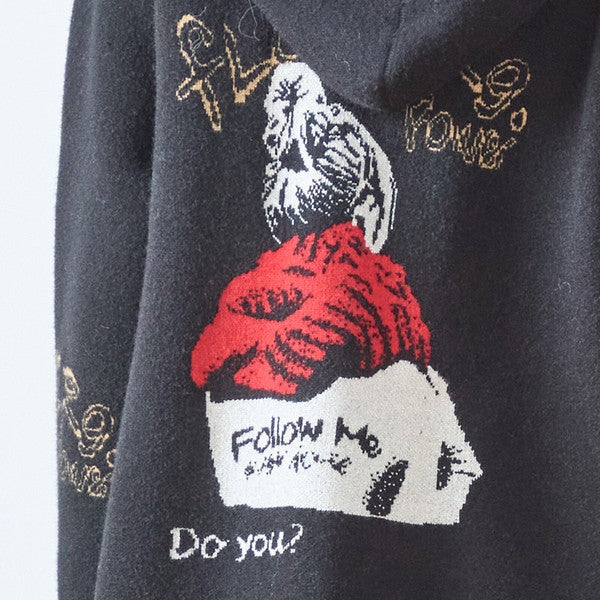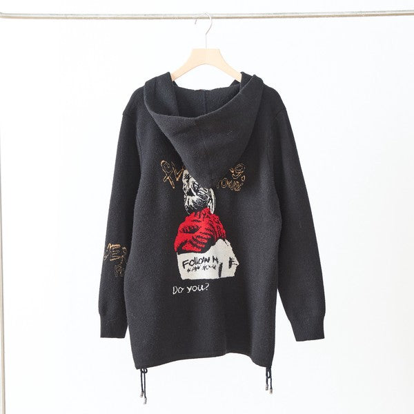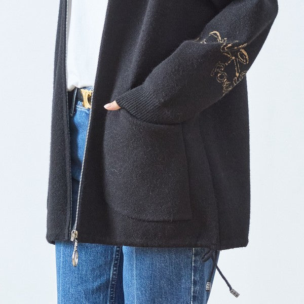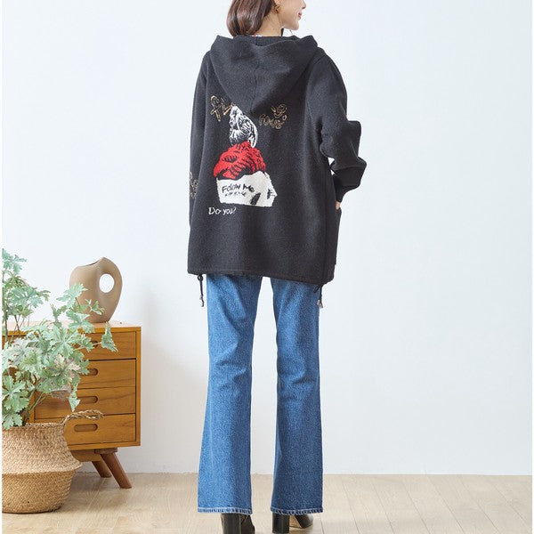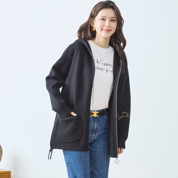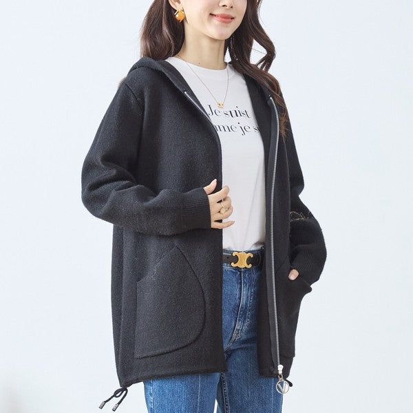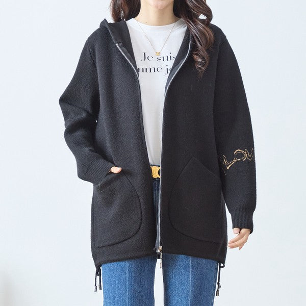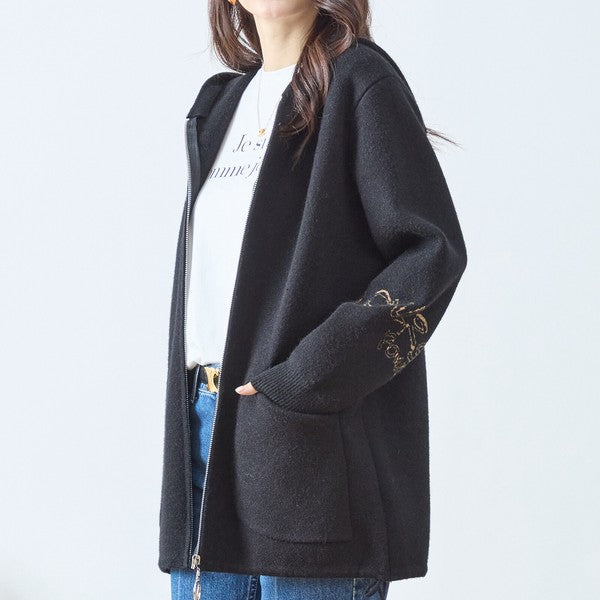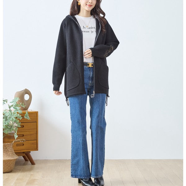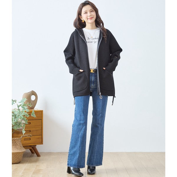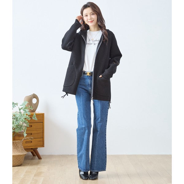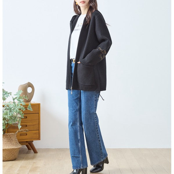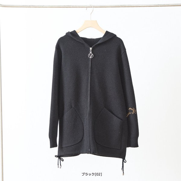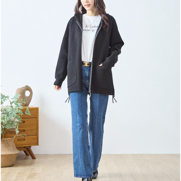 【M〜L】フード付きバックデザインニットブルゾン|体型カバー・あったか・大人カジュアル・TRUBE・N25-163A