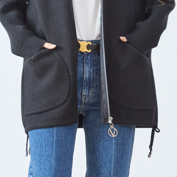 【フリー】ハート柄ダブルジップニットカーディガン|大人可愛い・着映え・chouchou・14079646