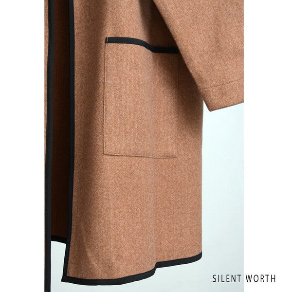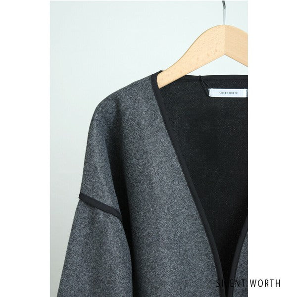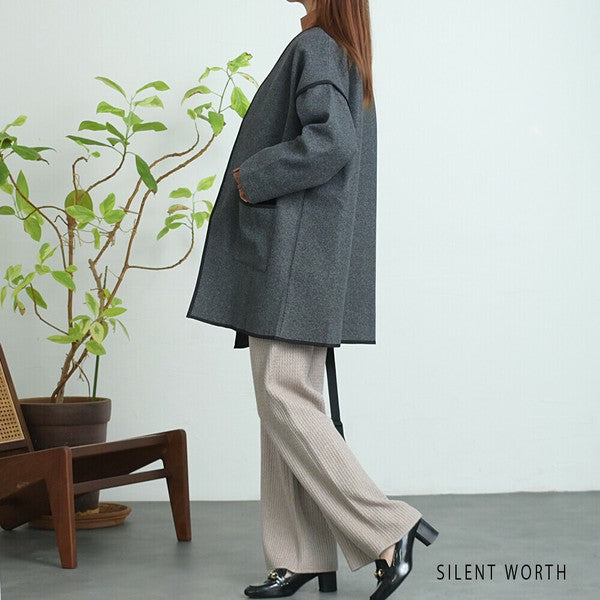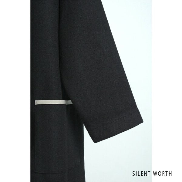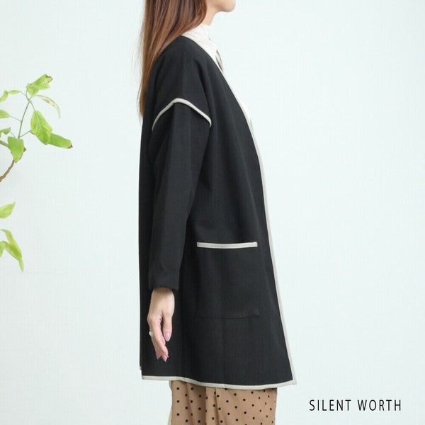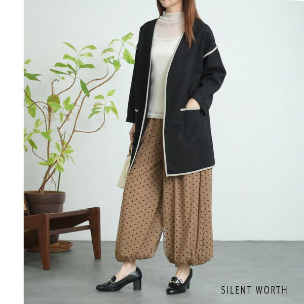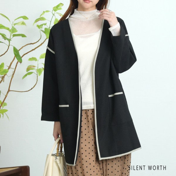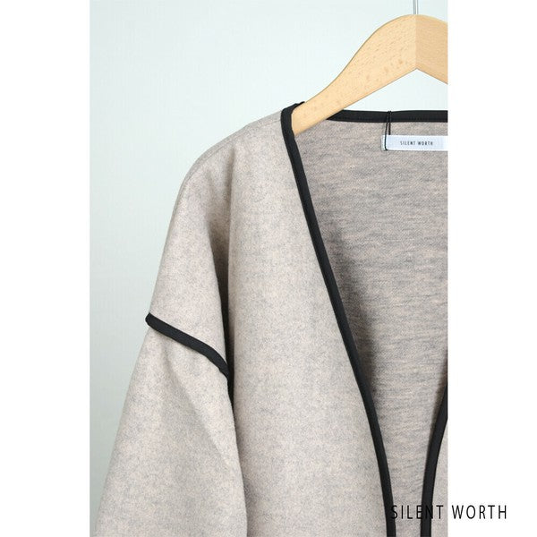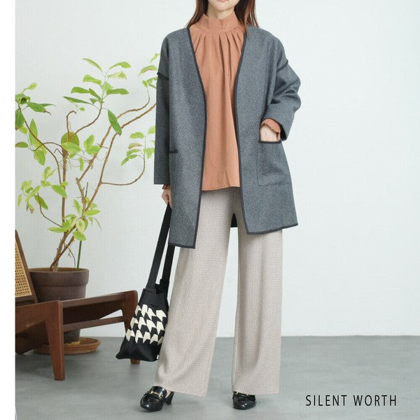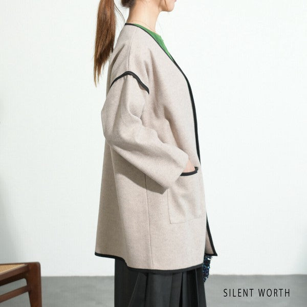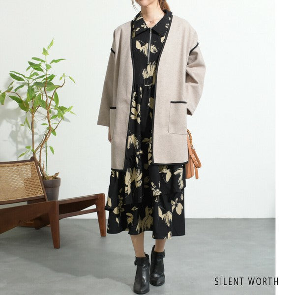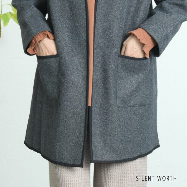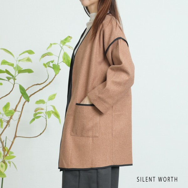 【M〜L相当】配色パイピング起毛ノーカラーコート|軽量アウター・上品シンプル・秋冬アウター・C-3181