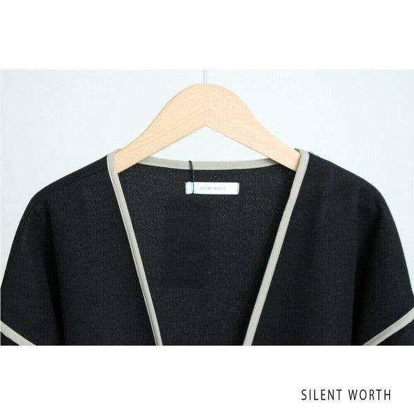 配色のパイピングラインがアクセントとなり、洗練された大人のスタイルに仕上がります。