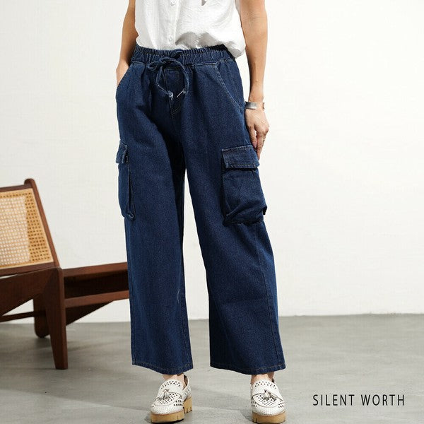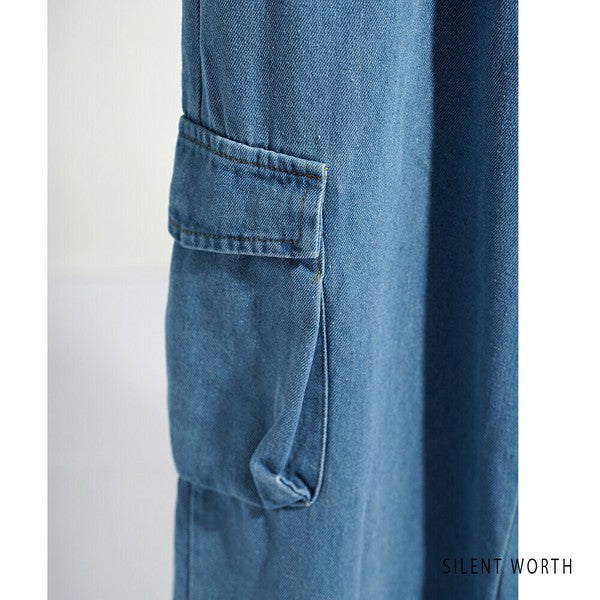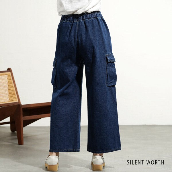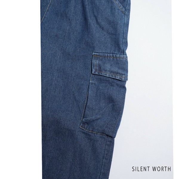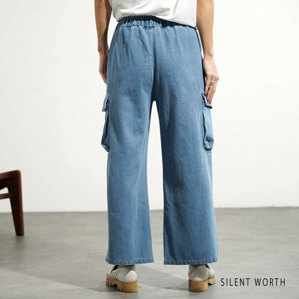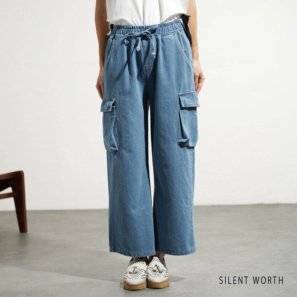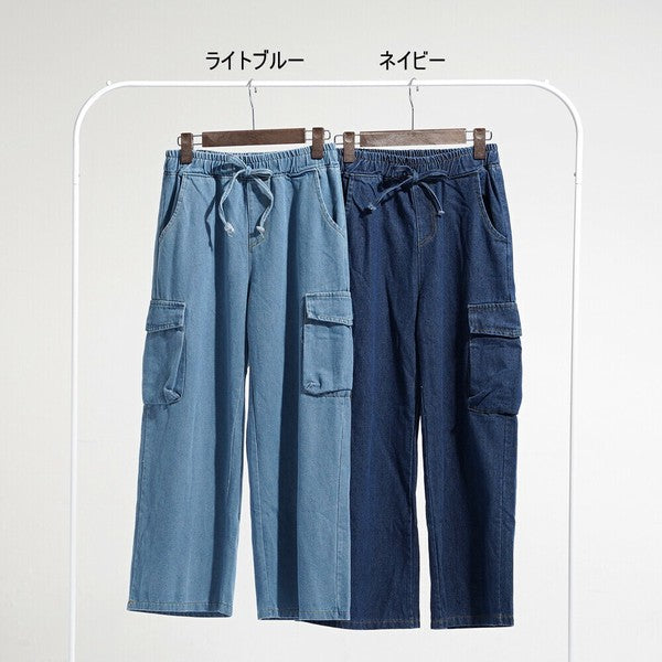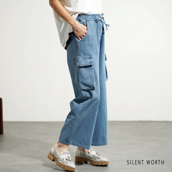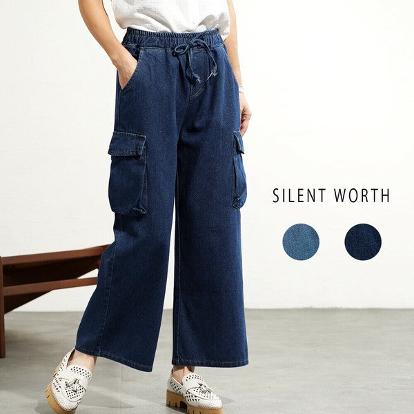 【M】デニムワイドカーゴパンツ|サイドポケット付き・ゆったりシルエット Y-0070・SILENT WORTH