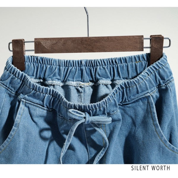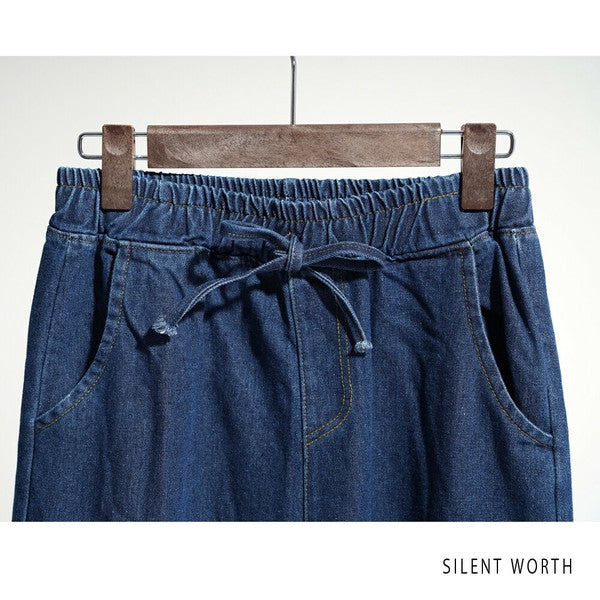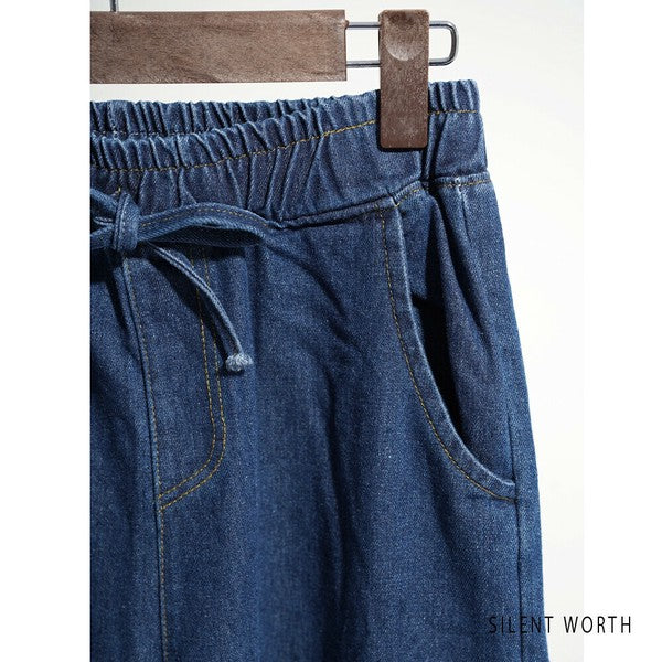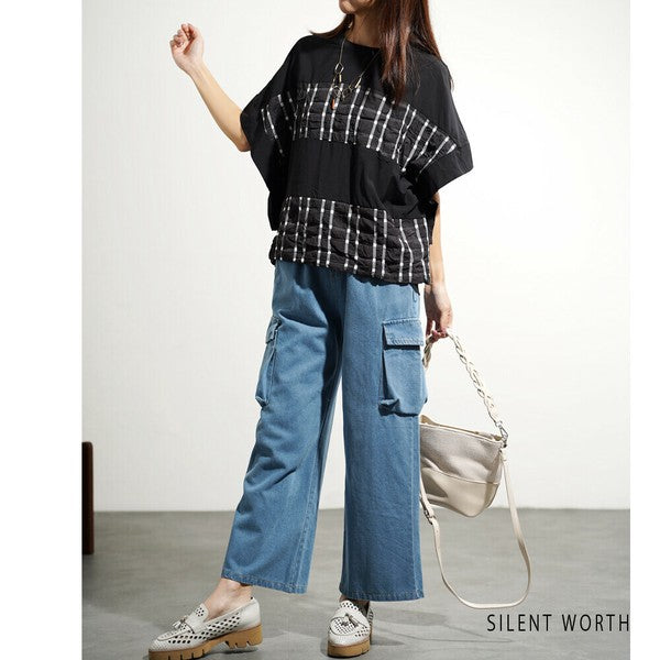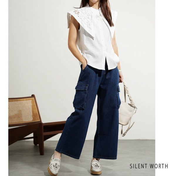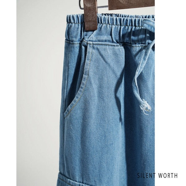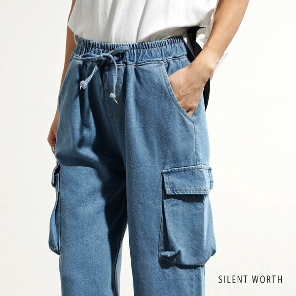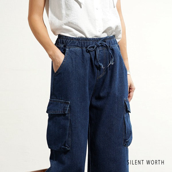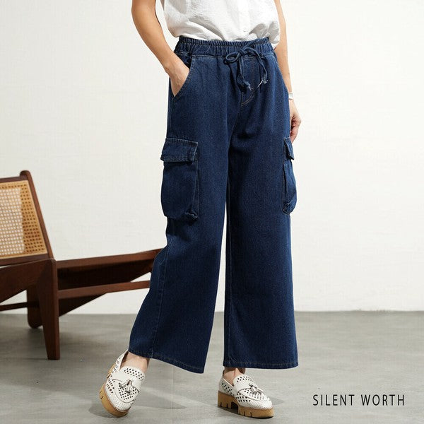 【M】デニムワイドカーゴパンツ|サイドポケット付き・ゆったりシルエット Y-0070・SILENT WORTH