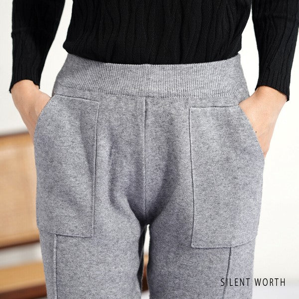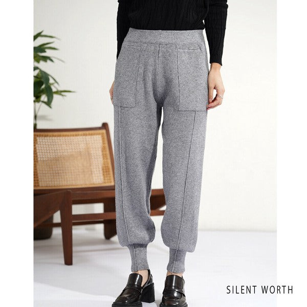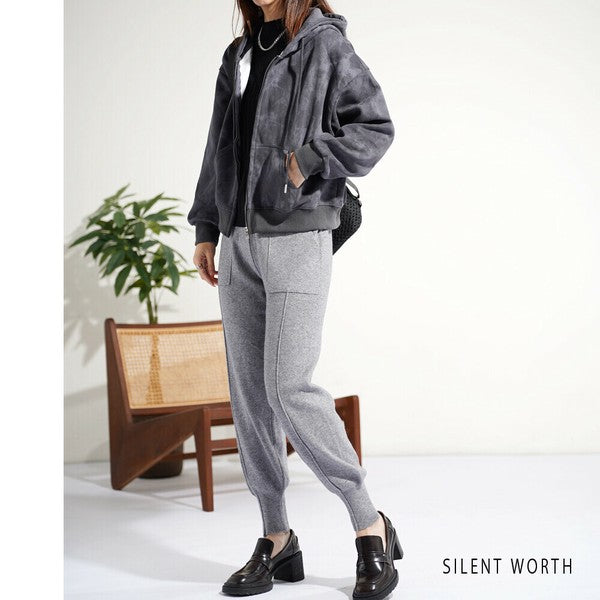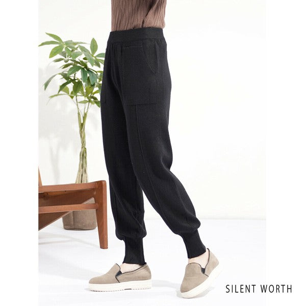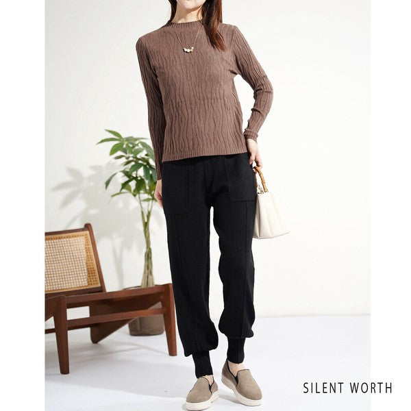 【Mサイズ】ニットジョガーパンツ|美脚ライン・センタータック・柔らかストレッチ素材|SILENT WORTH Y-0192