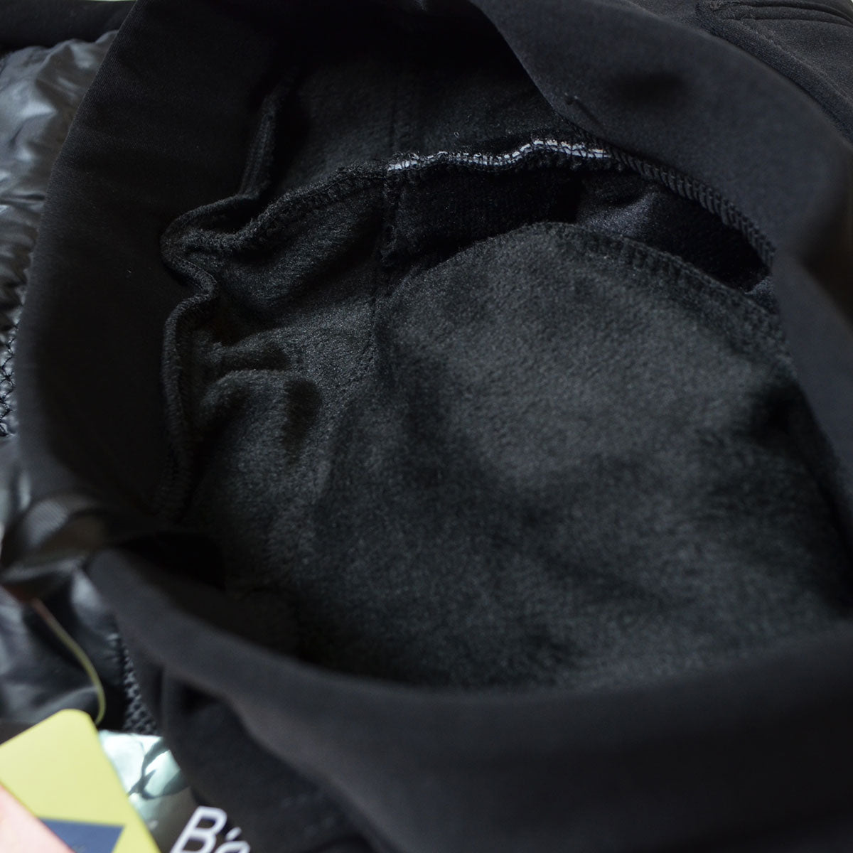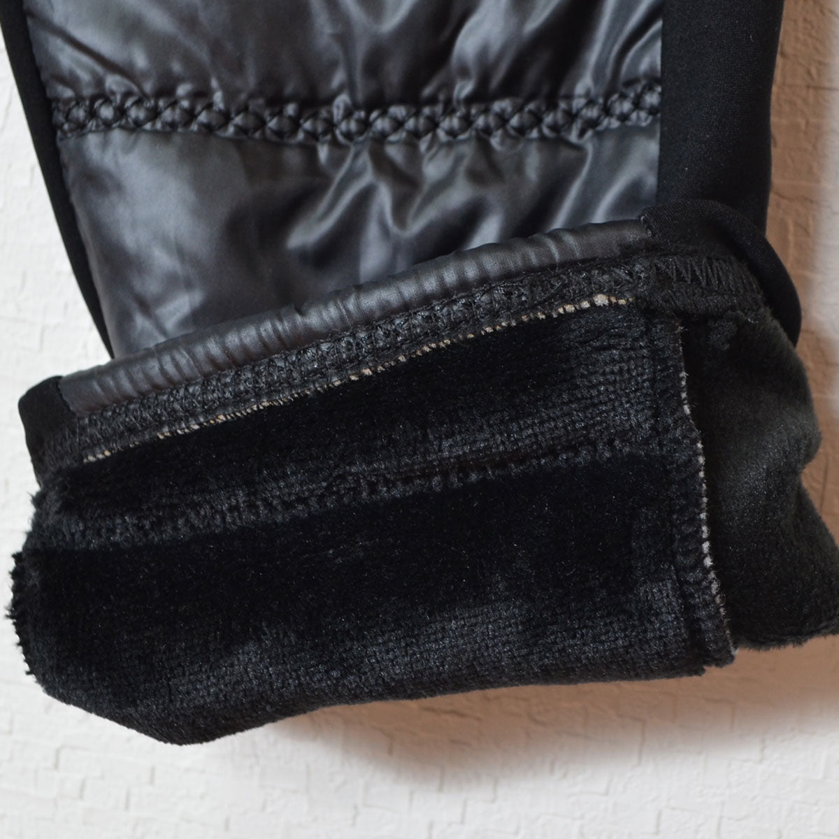 前面はダウン風のキルティング素材で風を通しにくく、背面はストレッチ性のある裏シャギー素材で快適な動きやすさ。