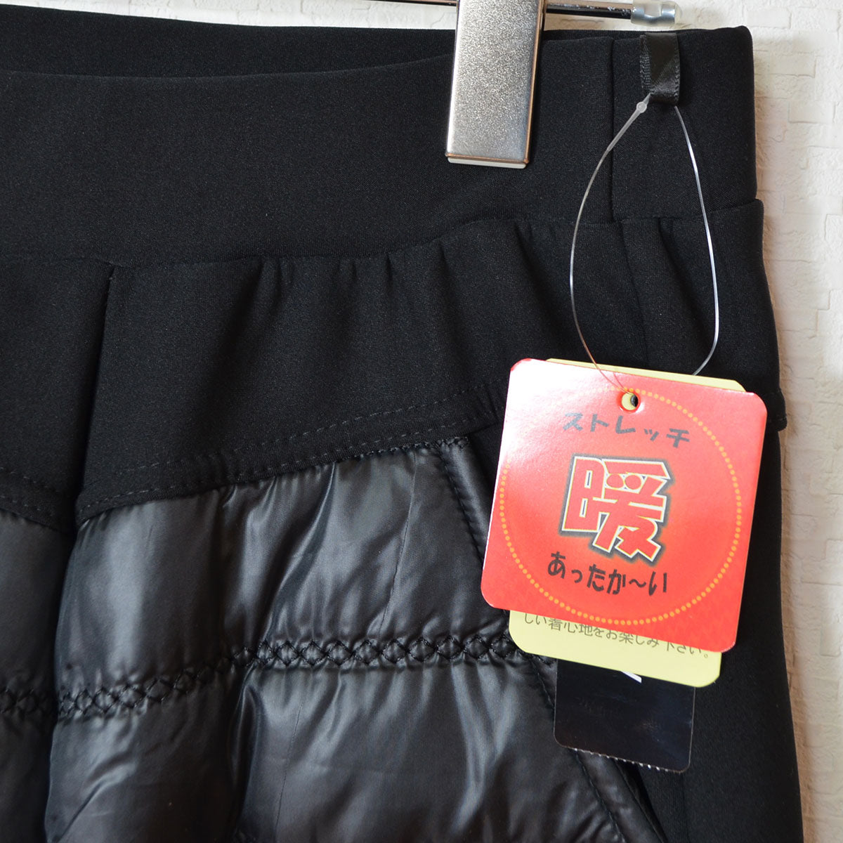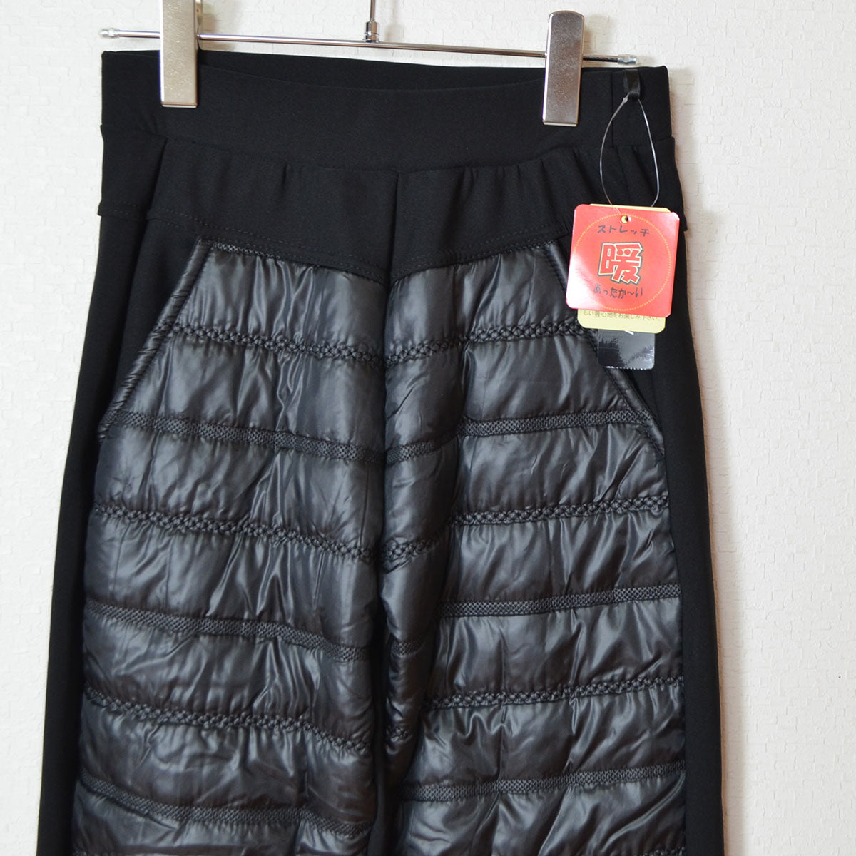 【M〜L】【LL】裏シャギー中綿キルトパンツ|ダウン風 レディース ボトムス 防寒 あったか ストレッチ ブラック 13829