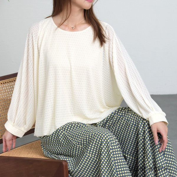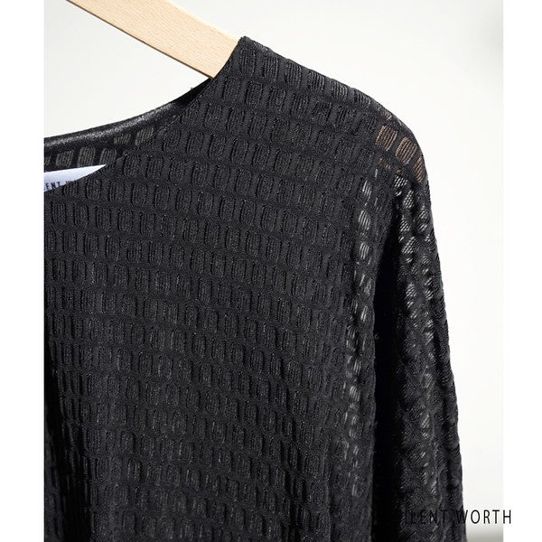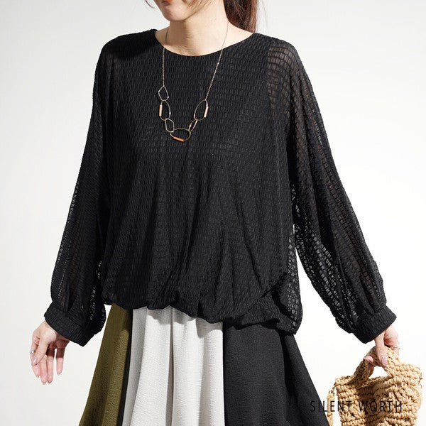 【M】シアージャカードバルーンプルオーバー ぽわん袖 クルーネック 透け感 大人可愛い SILENT WORTH
