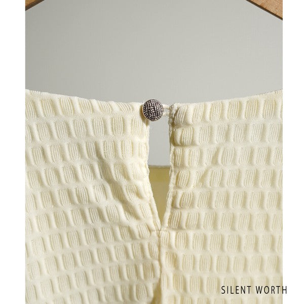 ・表情豊かな「シアージャカード」 ポコポコとした立体的な織り柄が特徴のジャカード素材。程よい透け感(シアー)があり、着るだけで今っぽい抜け感を演出します。