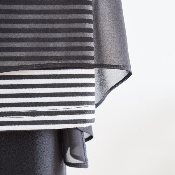 ・絶妙な「シアー×ボーダー」の甘辛バランス 内側のボーダー柄がシアー素材越しにほんのりと透けることで、カジュアルすぎず女性らしい上品な印象に。動くたびにふわりと揺れるシアー生地が、軽やかな抜け感を演出します。