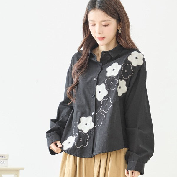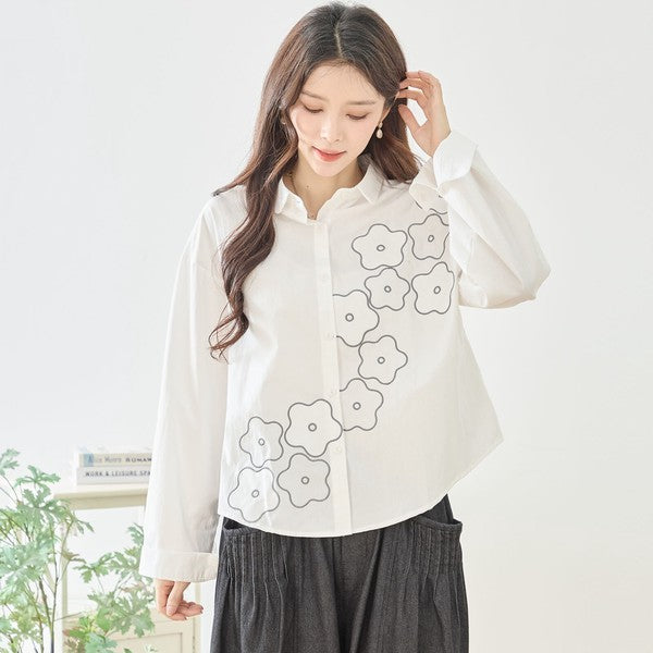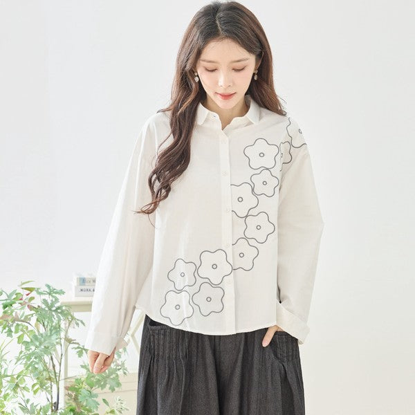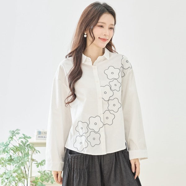 【M〜L】フラワーライン刺繍シャツ|TRUBE
