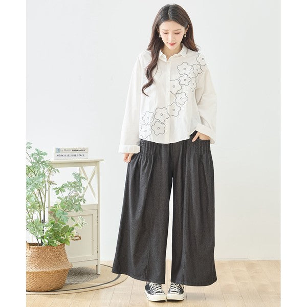 足元に咲く遊び心。綿100%のお花パッチワークで作る大人のリラックスワイドパンツ