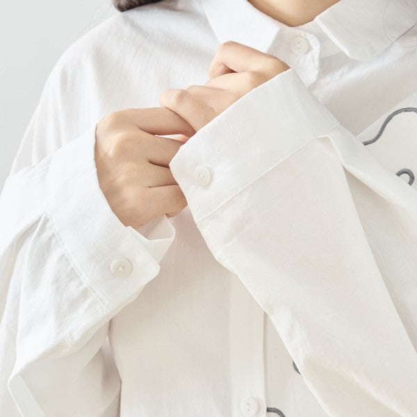 上品なフラワー刺繍がコーデの主役になるデザインシャツ。ベーシックなシャツ型をベースにしているため、柄物でも取り入れやすく、日常からお出かけまで幅広く活躍します。