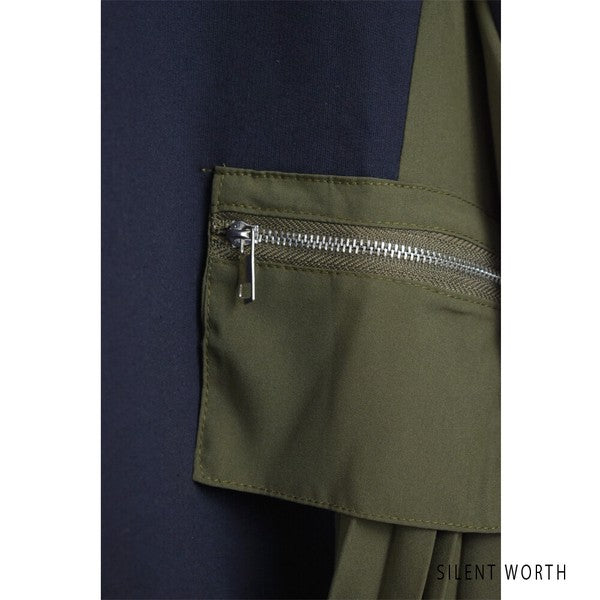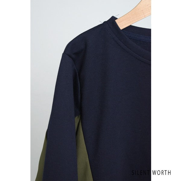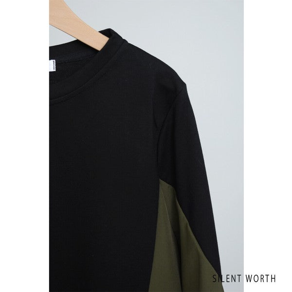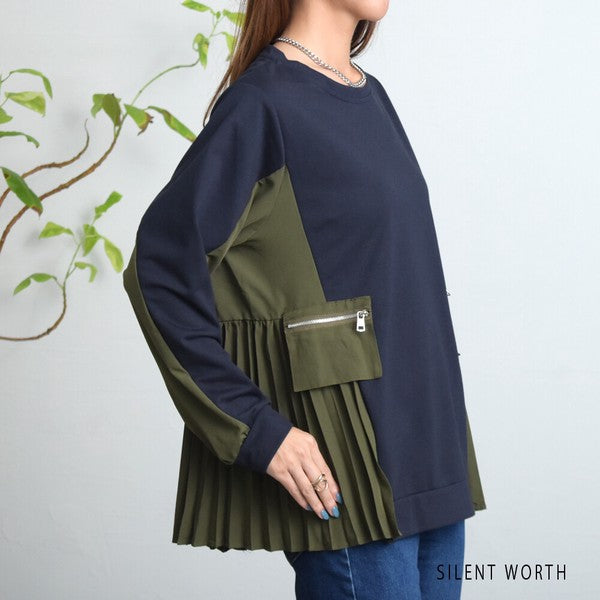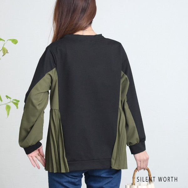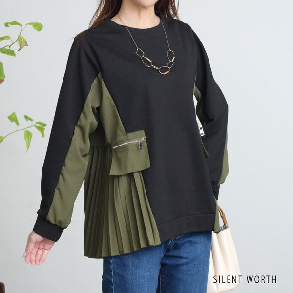 【M】サイドプリーツ切替プルオーバー 裏毛スウェット 異素材ミックス 体型カバー SILENT WORTH