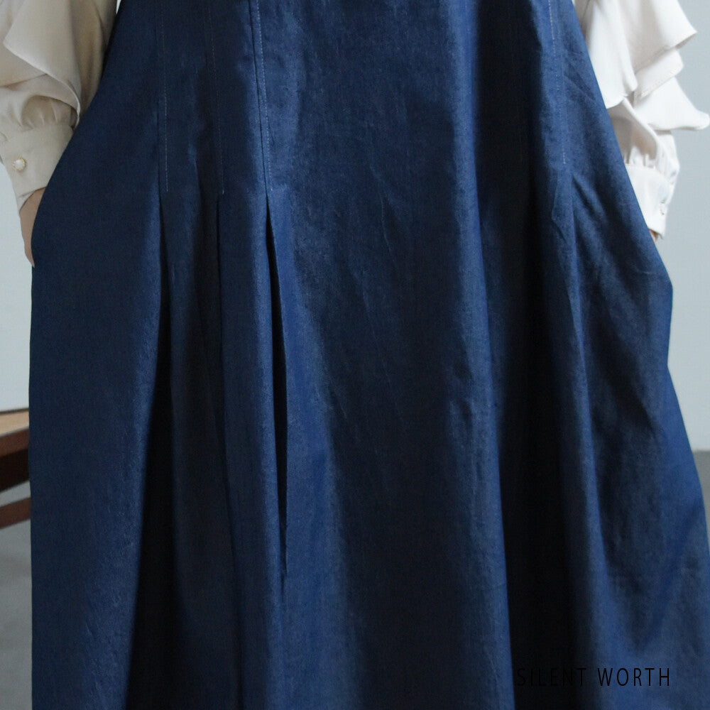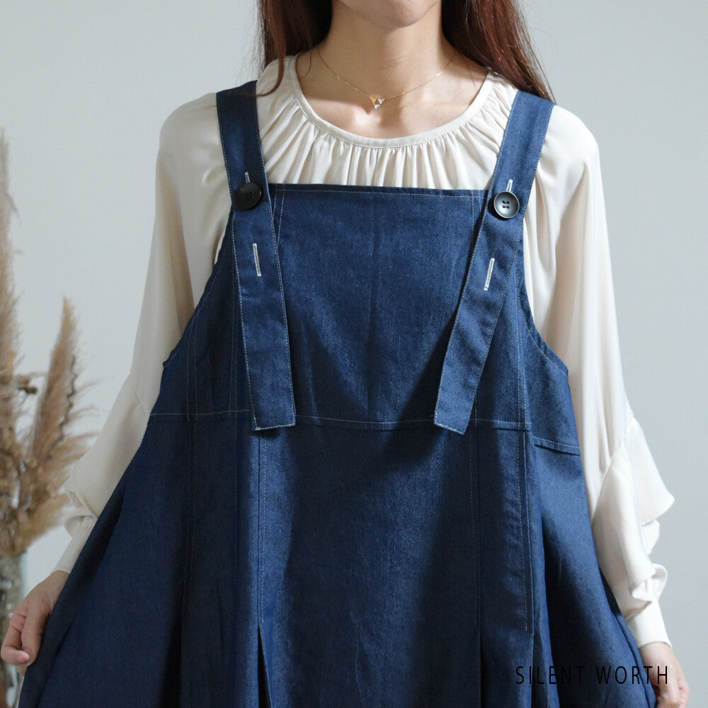 【12042772|Fサイズ】Silent Worth|配色ステッチ デニムジャンスカ|ロング丈・秋ワンピース