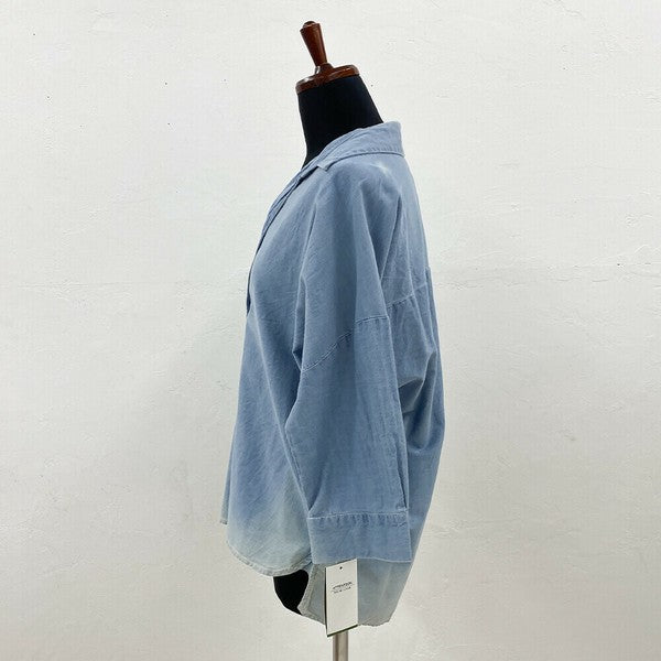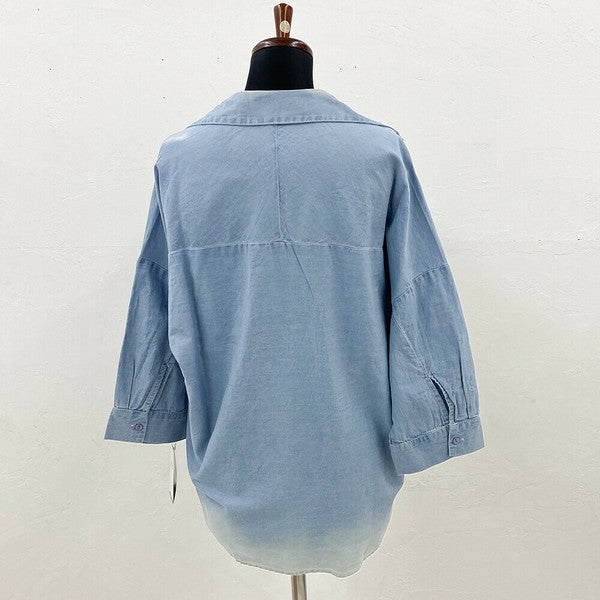 【綿100%・涼感デニム】スキッパー襟 7分袖ブラウス|レディース トップス 春夏