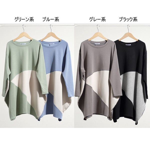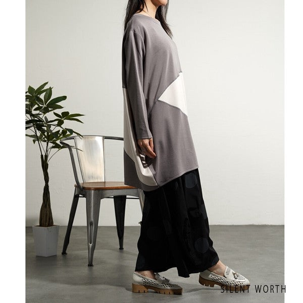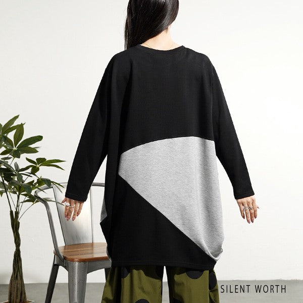 【M】ソフト段ボール配色チュニック ビッグシルエット モード切替 体型カバー SILENT WORTH