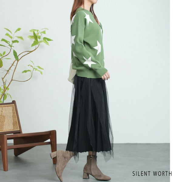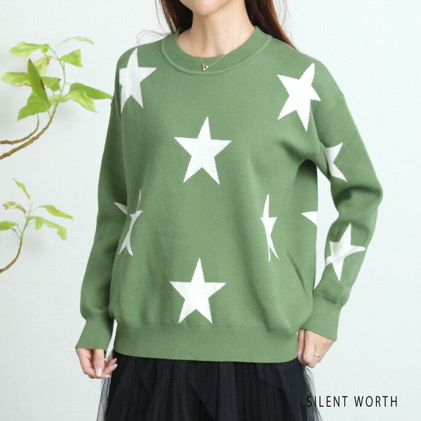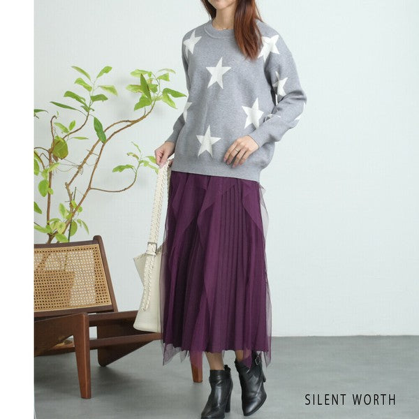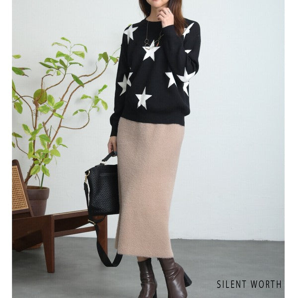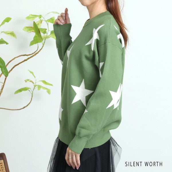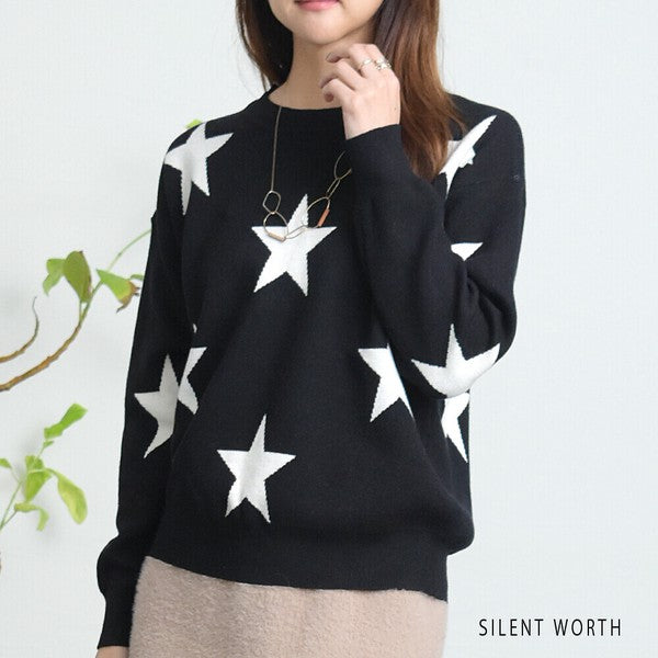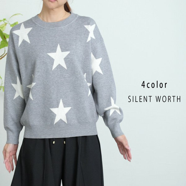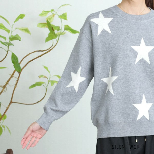 【Mサイズ】星柄ニットプルオーバー|SILENT WORTH レディース 秋冬 トップス 長袖 セーター N-3016