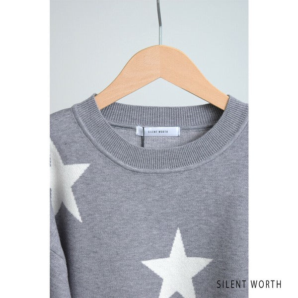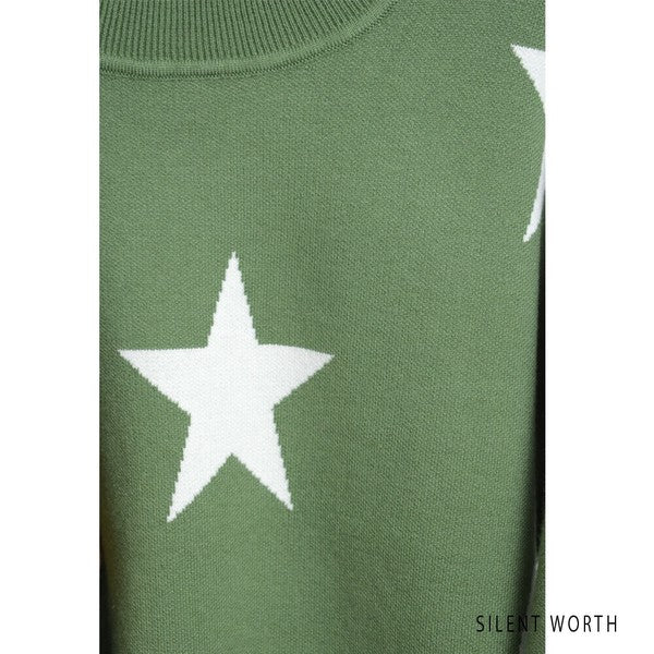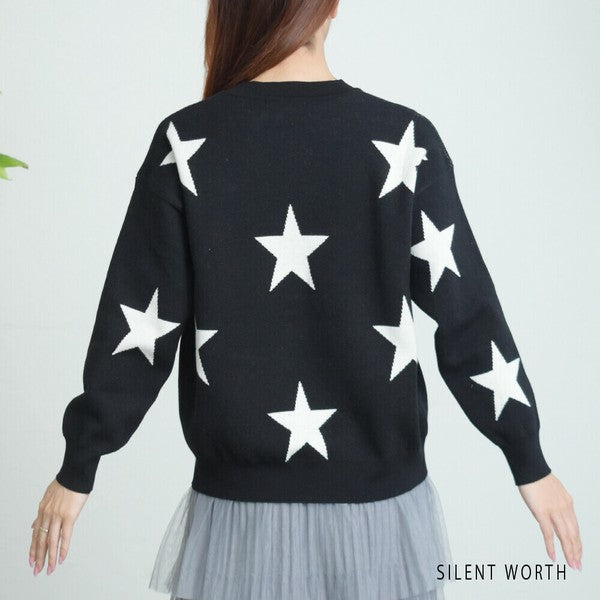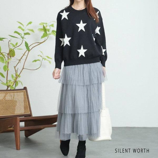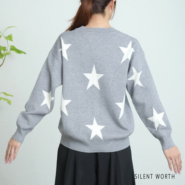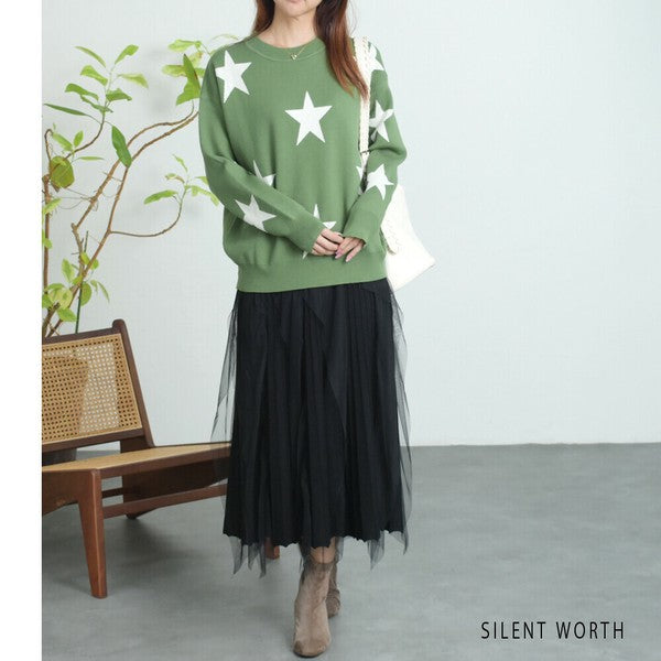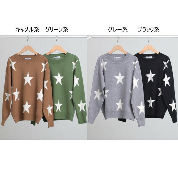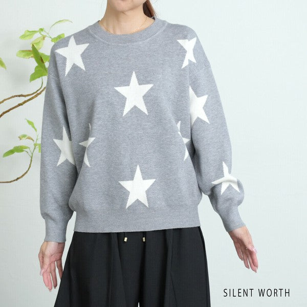 程よい存在感のある星柄が目を引くニットプルオーバー。
