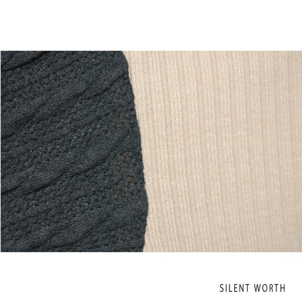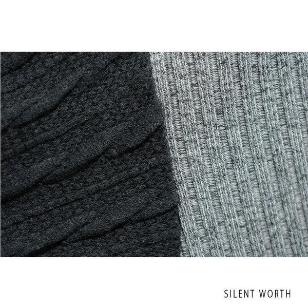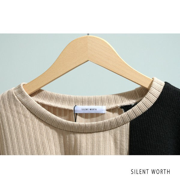柔らかなカットソー素材と凹凸感のあるニット風生地の組み合わせ