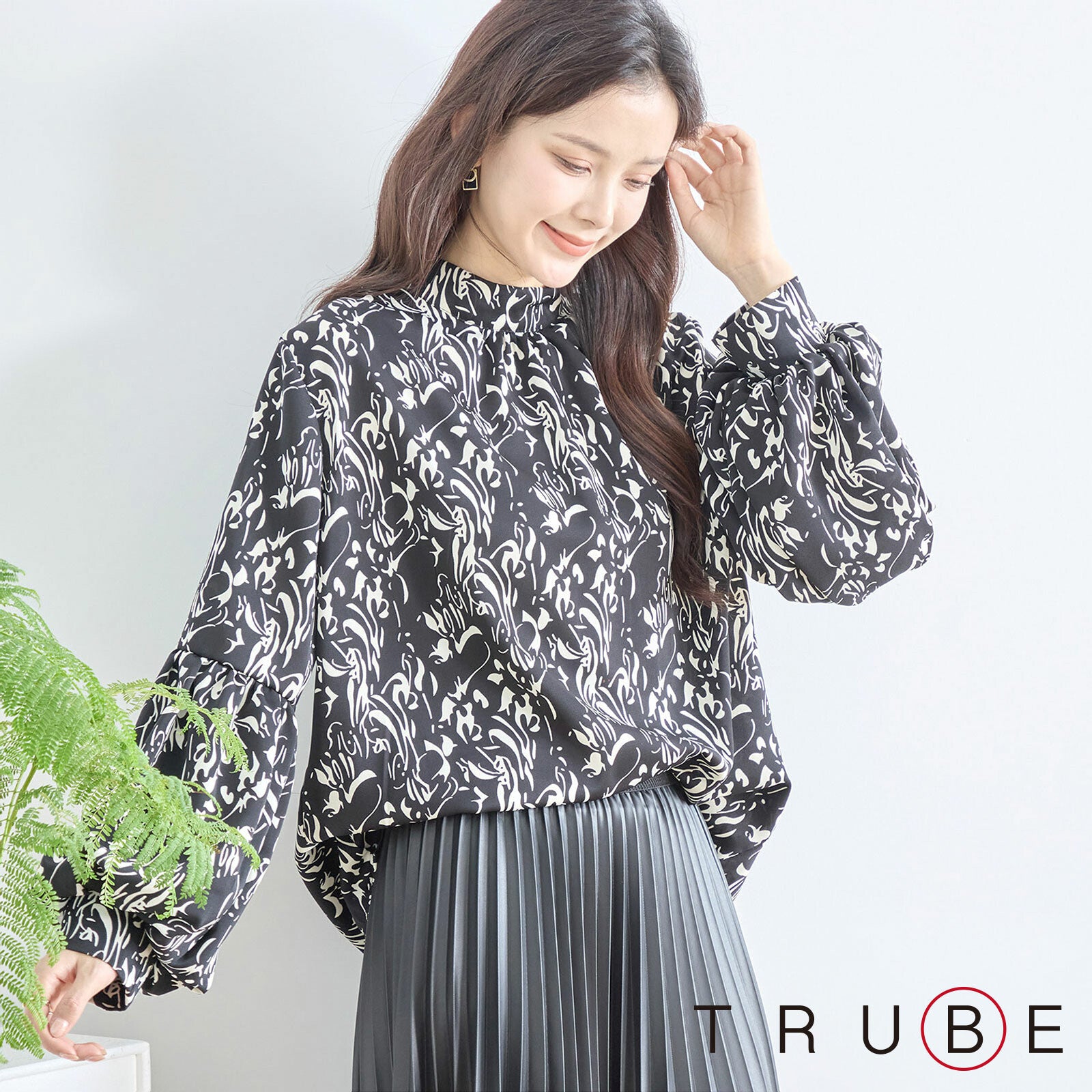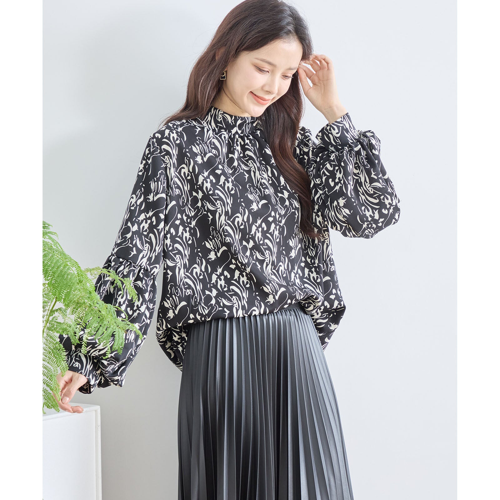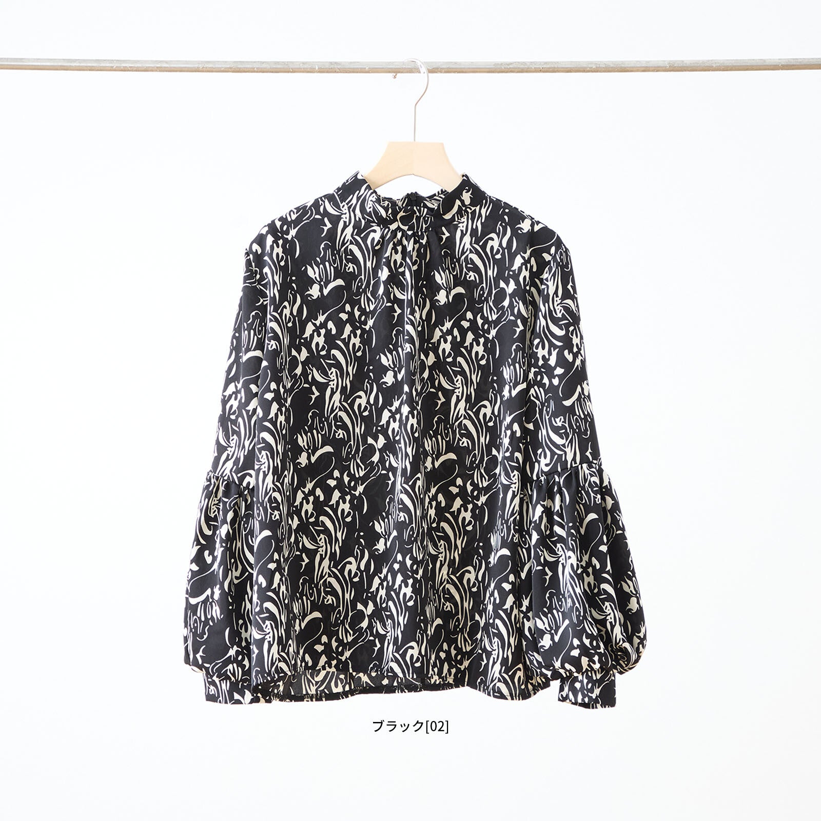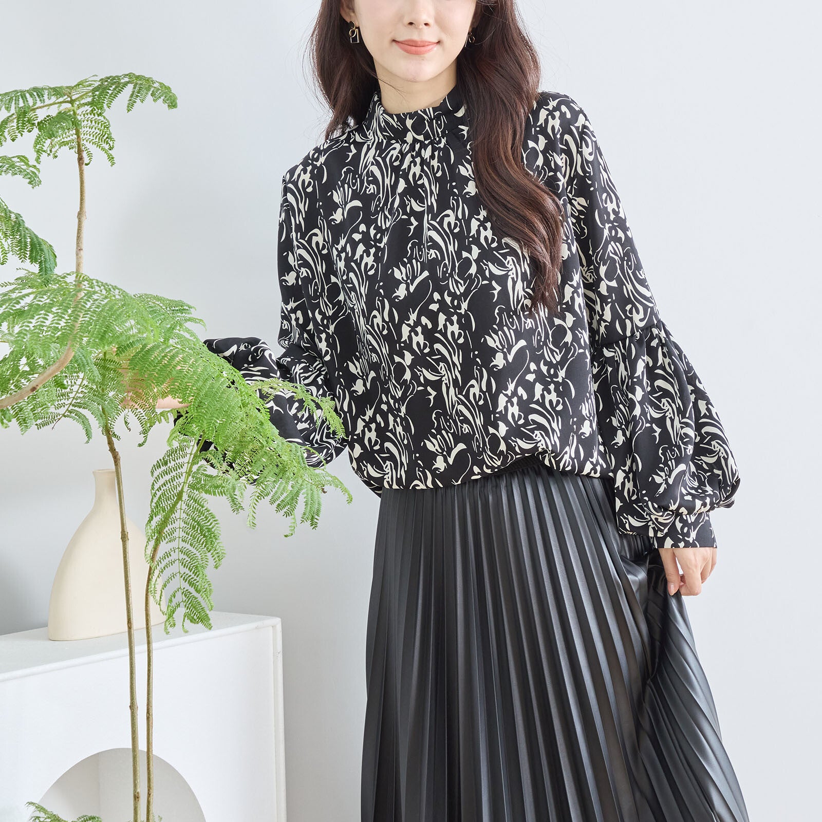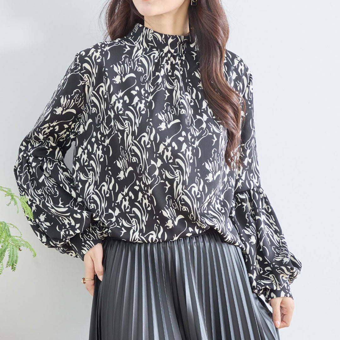 【M〜L】パフ袖スタンドカラー総柄ブラウス|長袖トップス・きれいめフェミニン・TRUBE 12564709