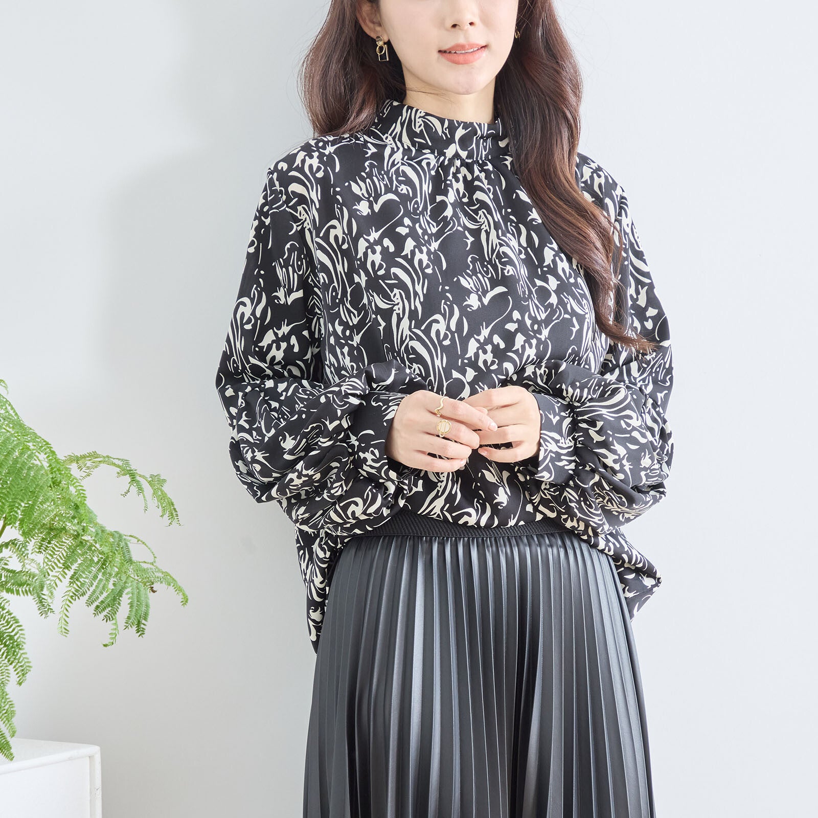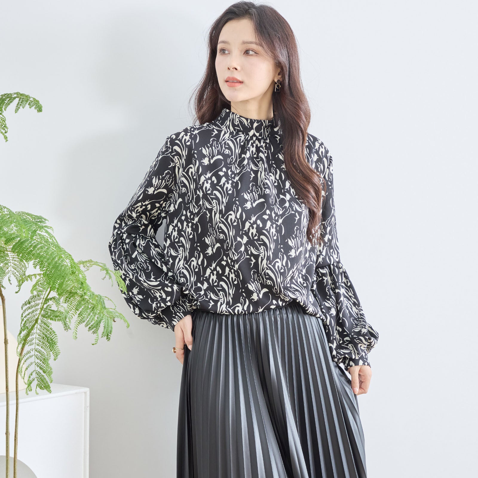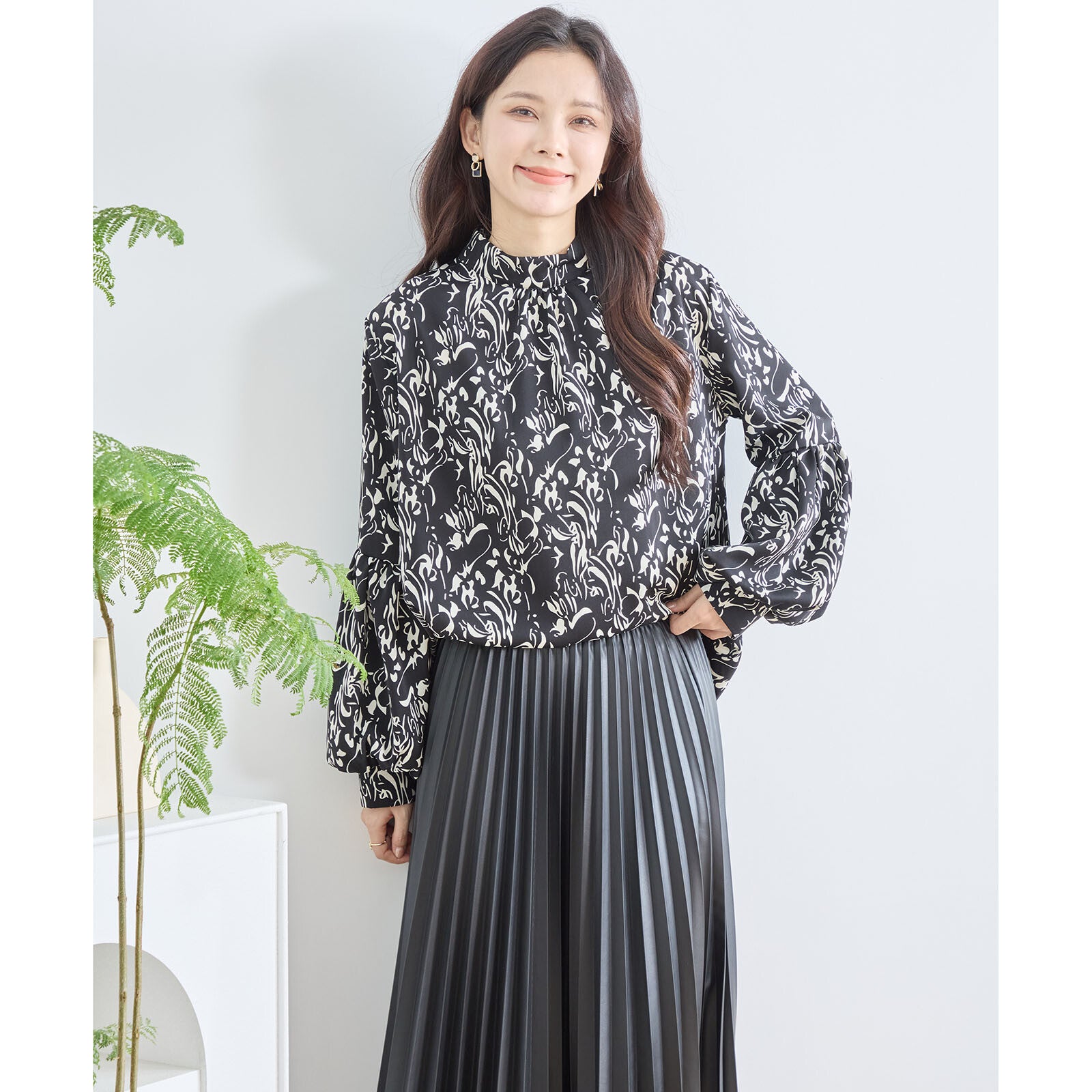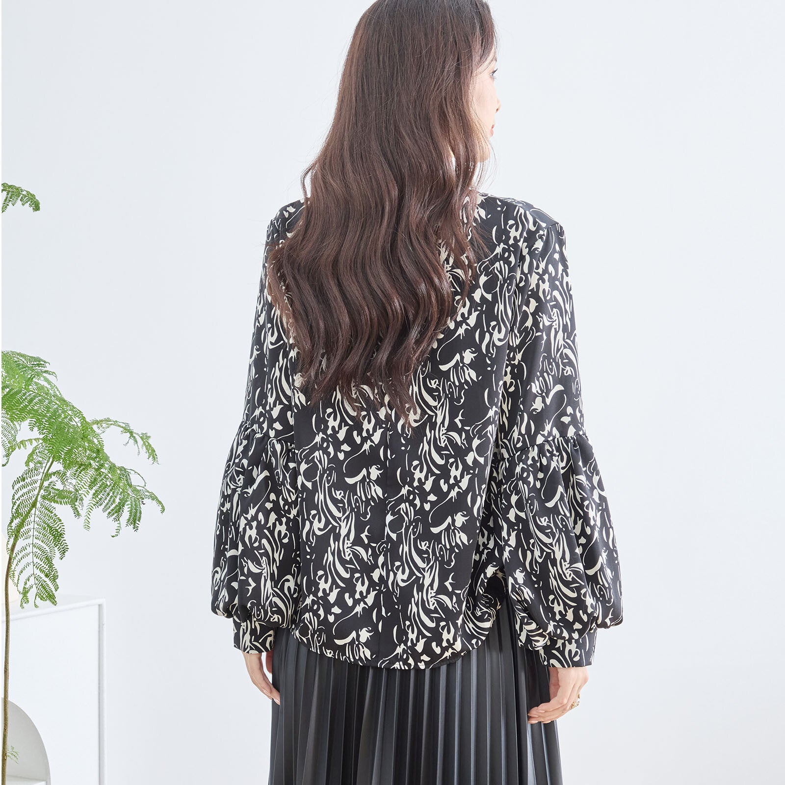 【M〜L】パフ袖スタンドカラー総柄ブラウス|長袖トップス・きれいめフェミニン・TRUBE 12564709