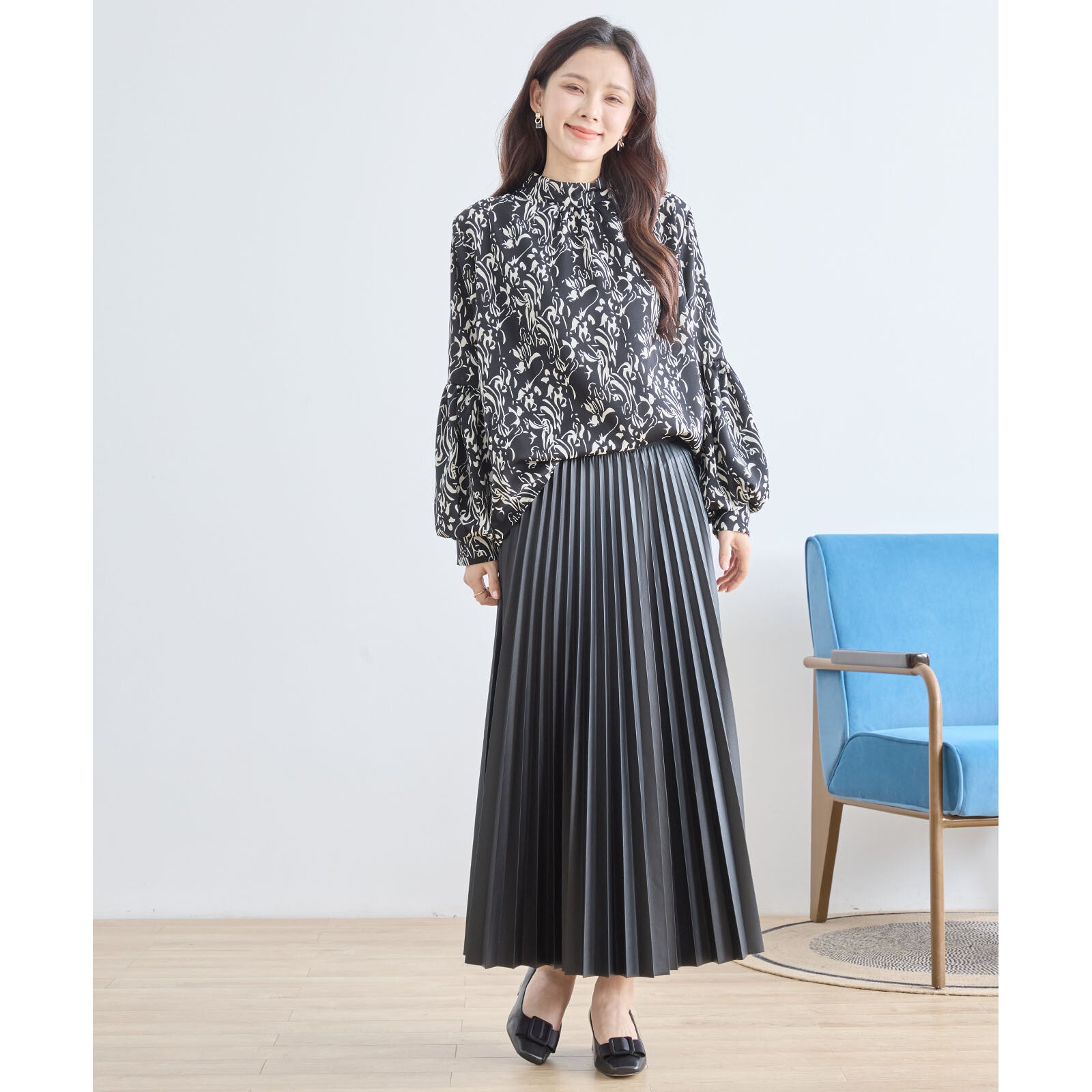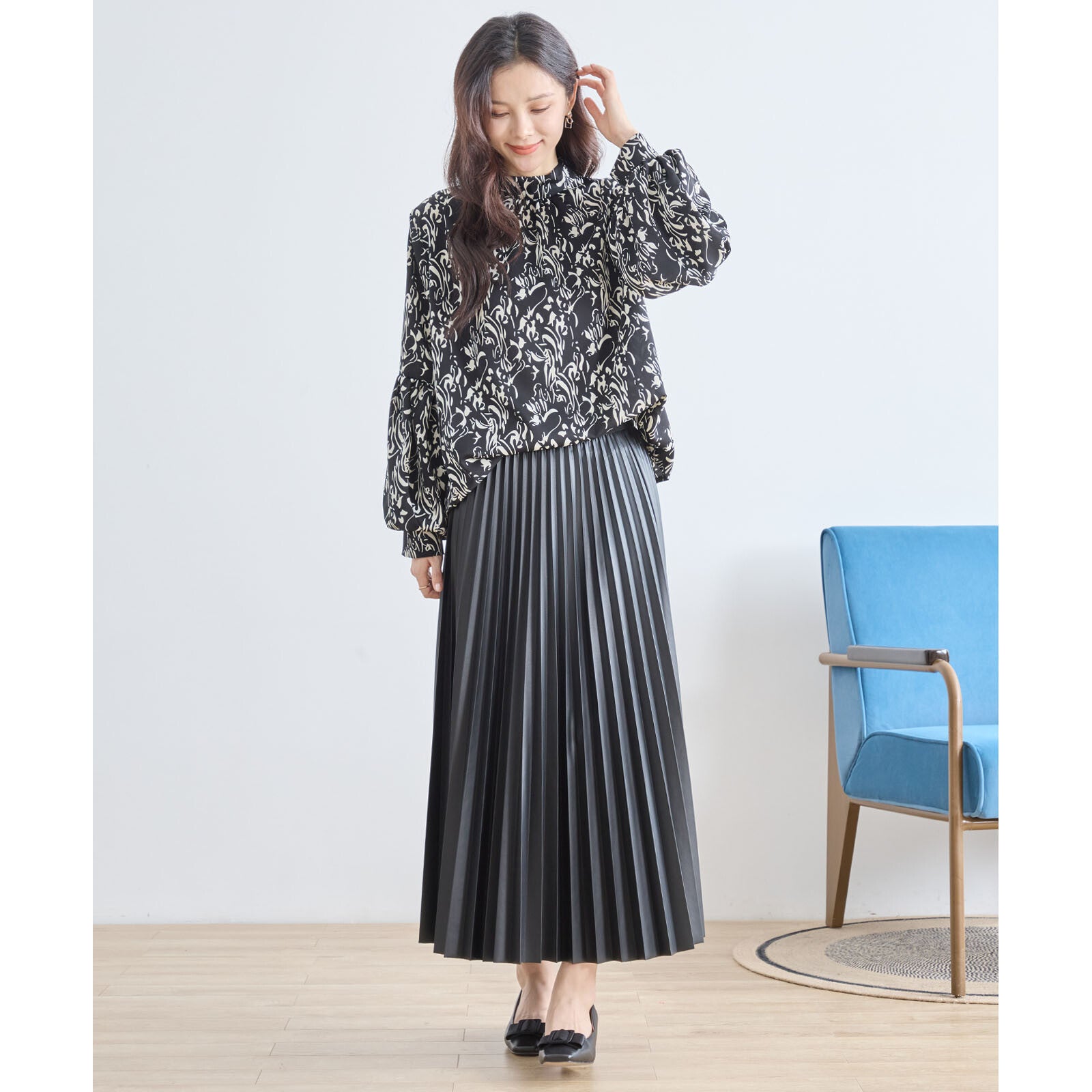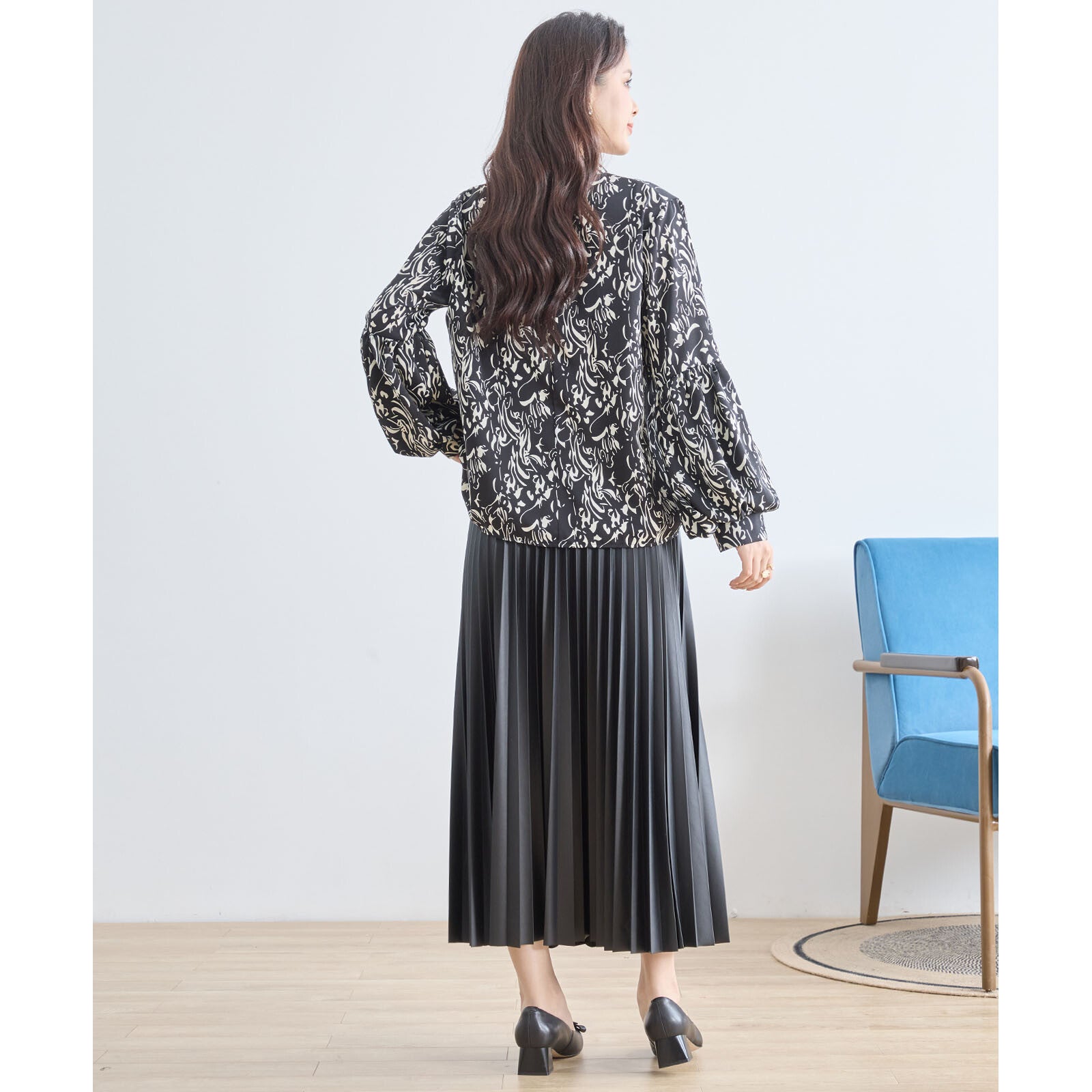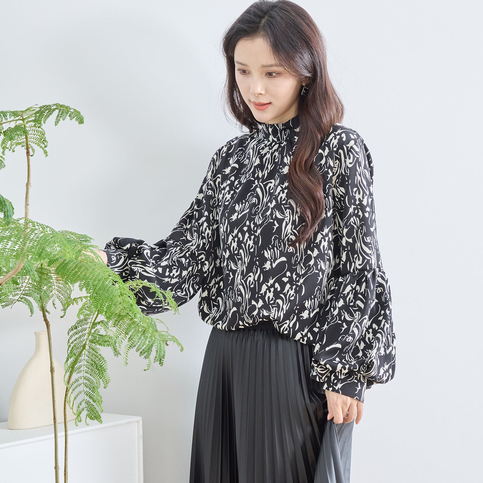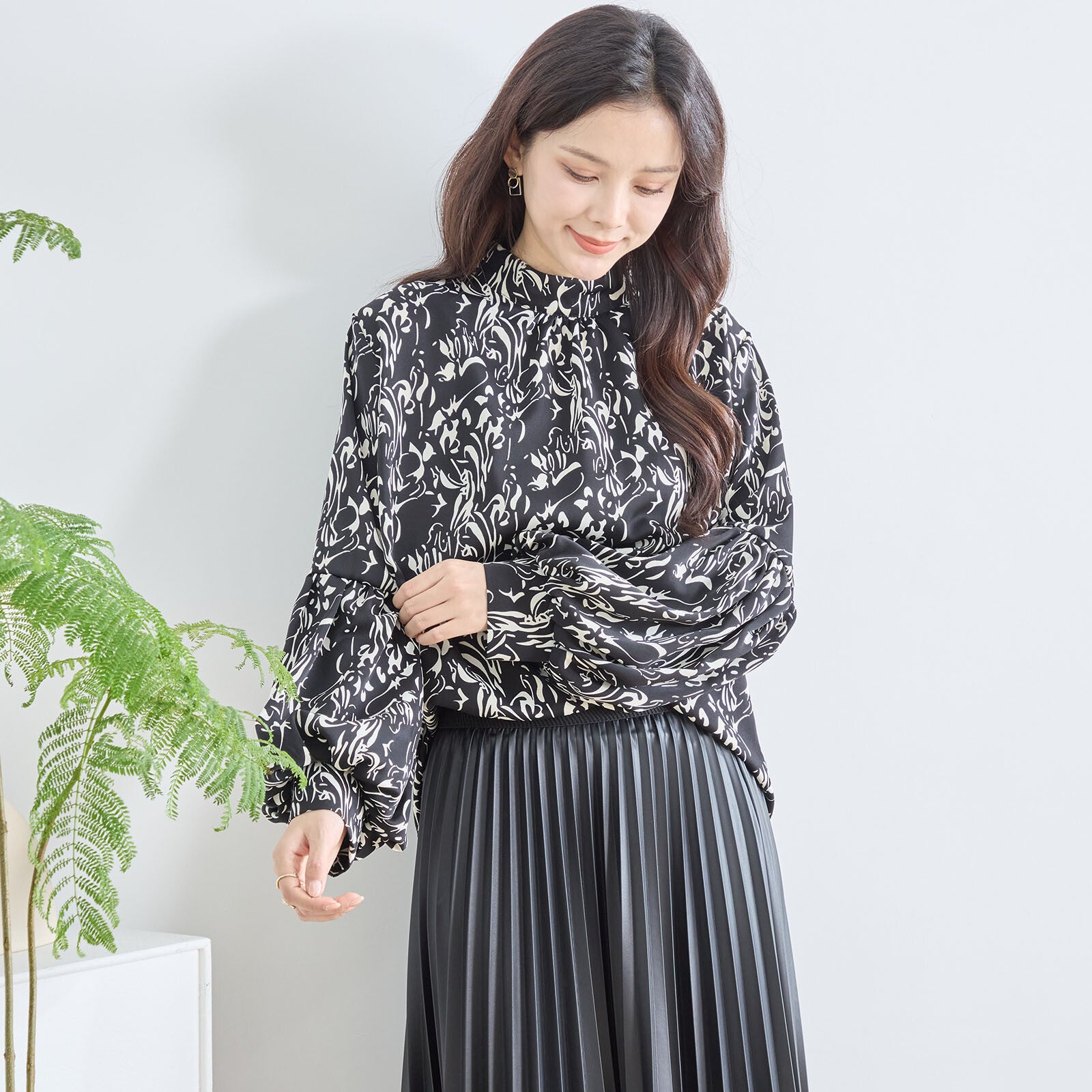 【M〜L】パフ袖スタンドカラー総柄ブラウス|長袖トップス・きれいめフェミニン・TRUBE 12564709