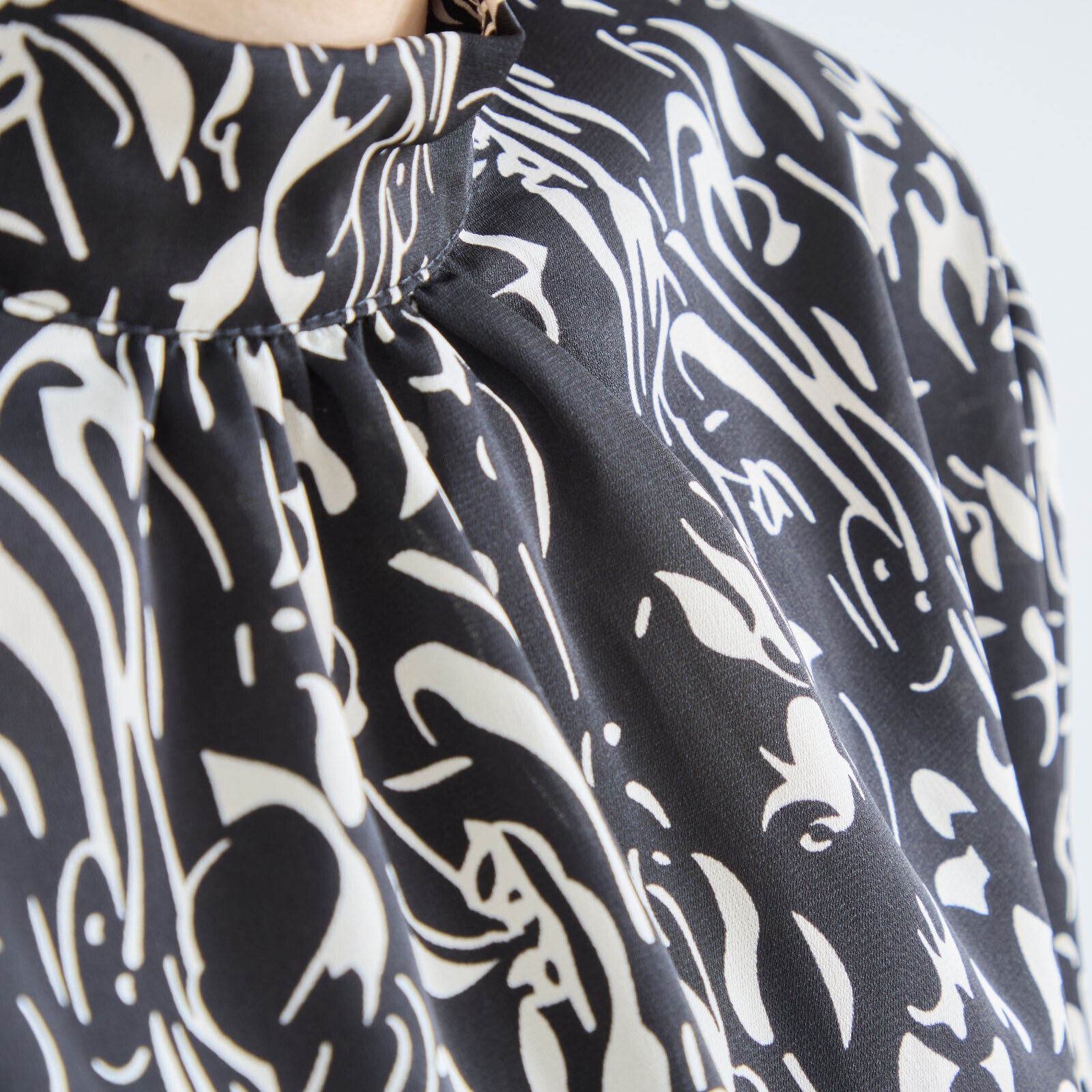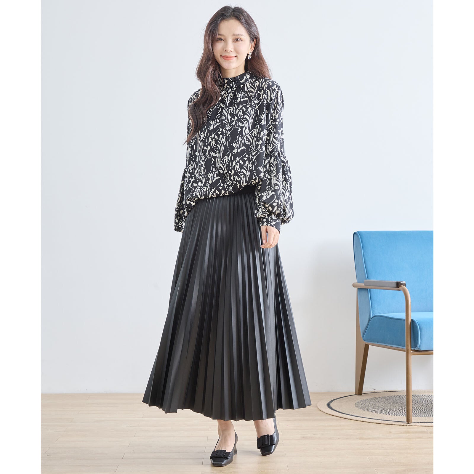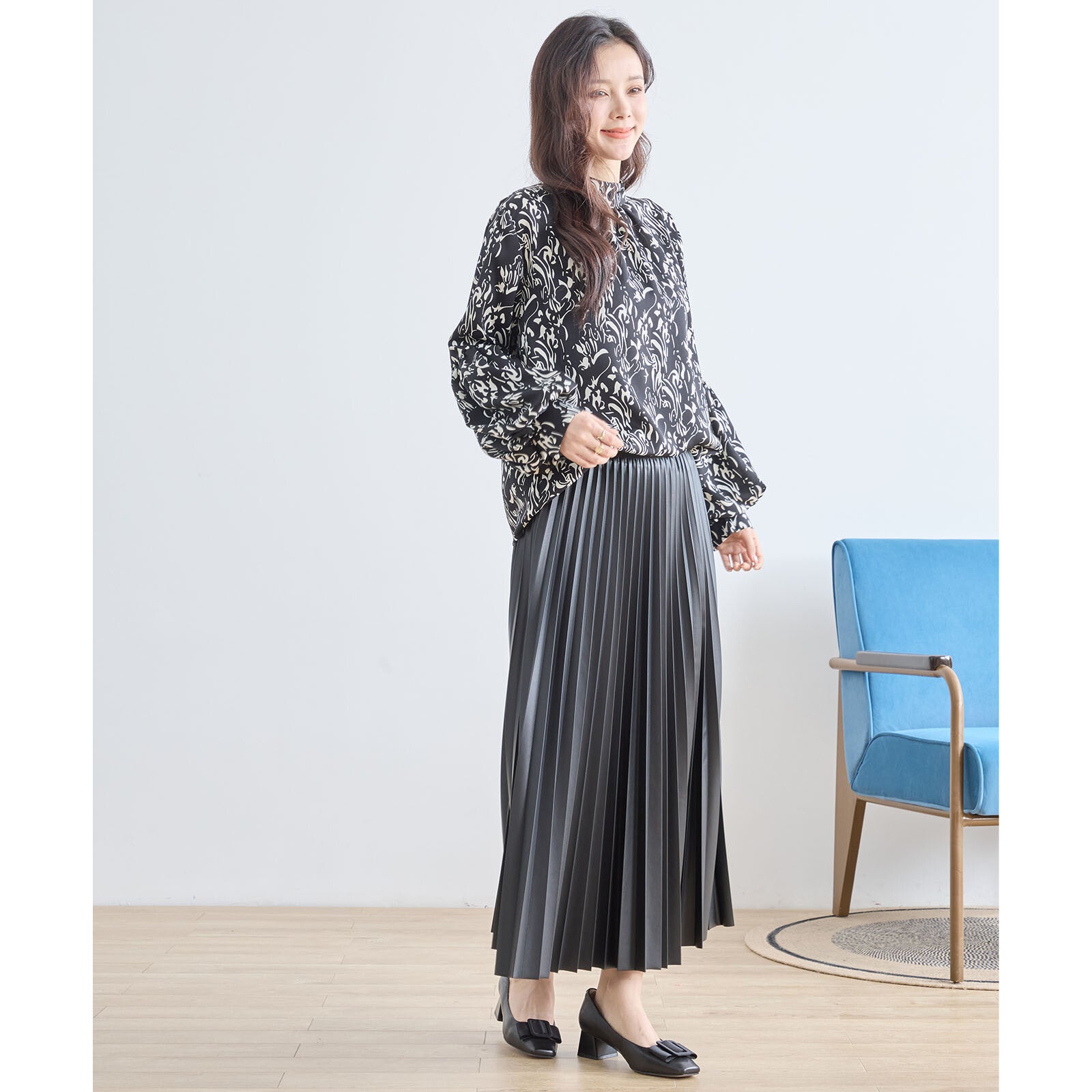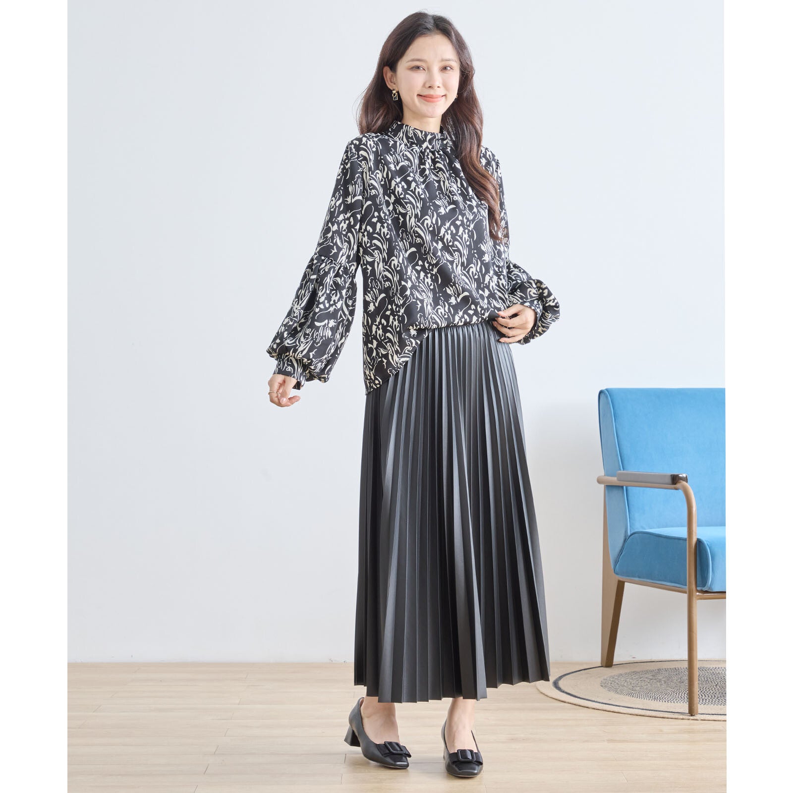 【M〜L】パフ袖スタンドカラー総柄ブラウス|長袖トップス・きれいめフェミニン・TRUBE 12564709
