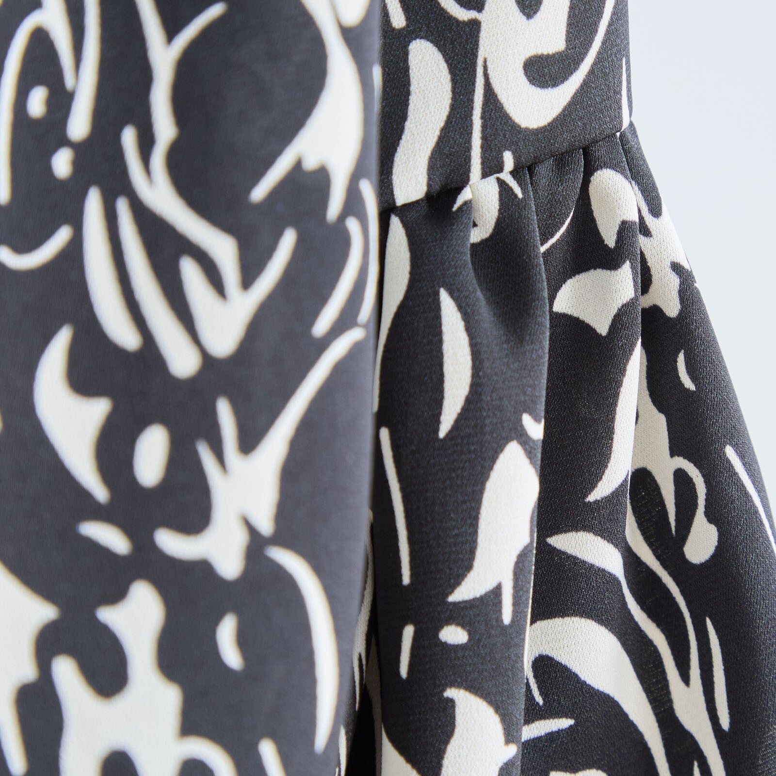 シックなモノトーンの総柄デザインで、大人の華やかさを演出