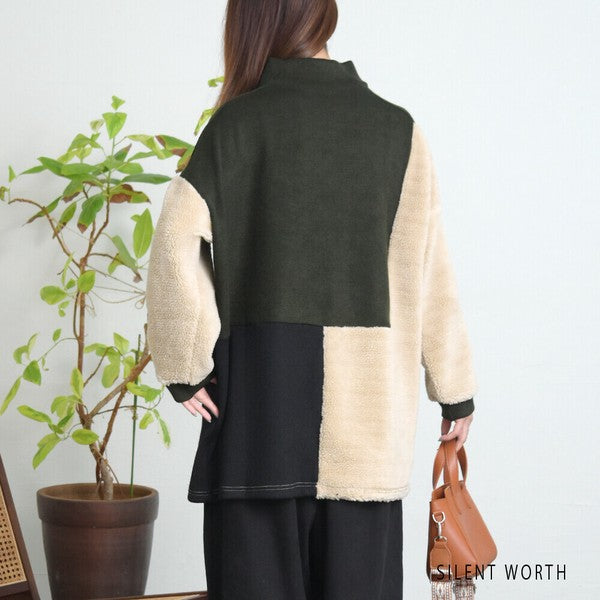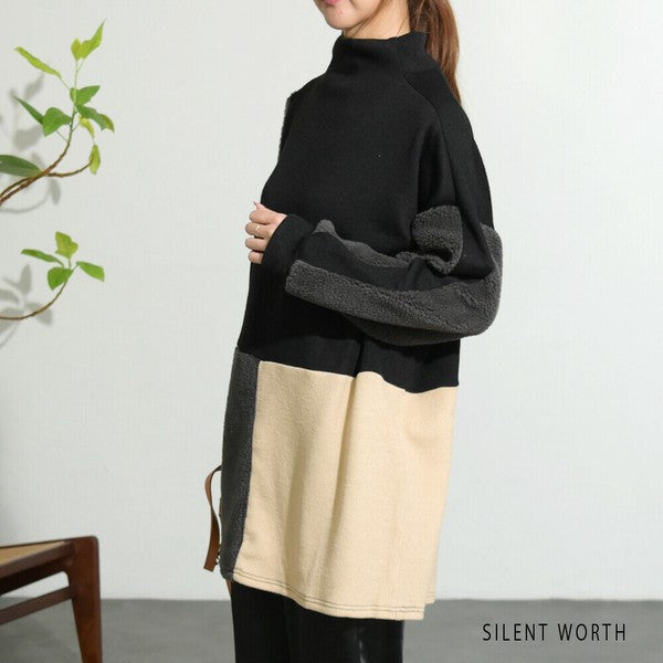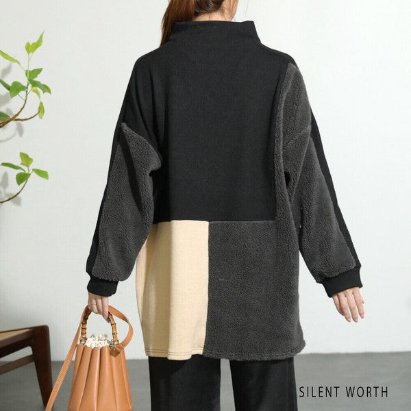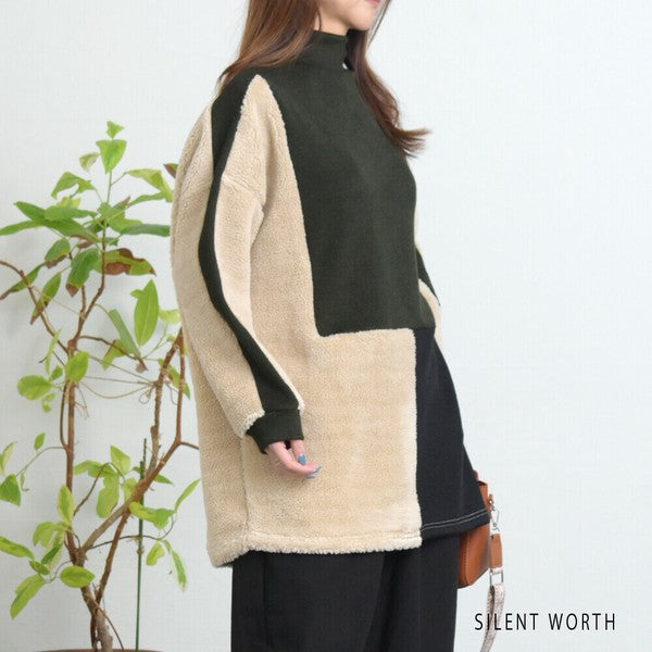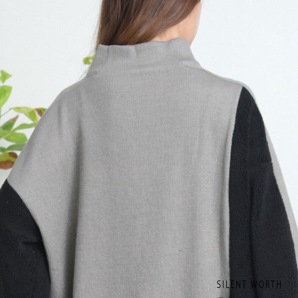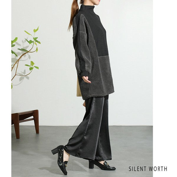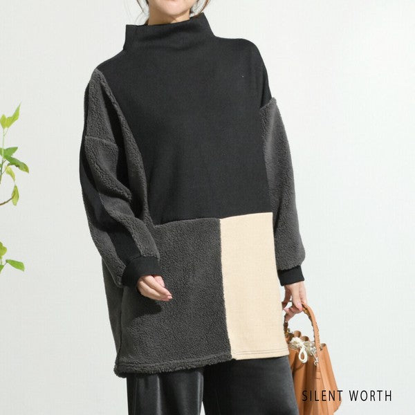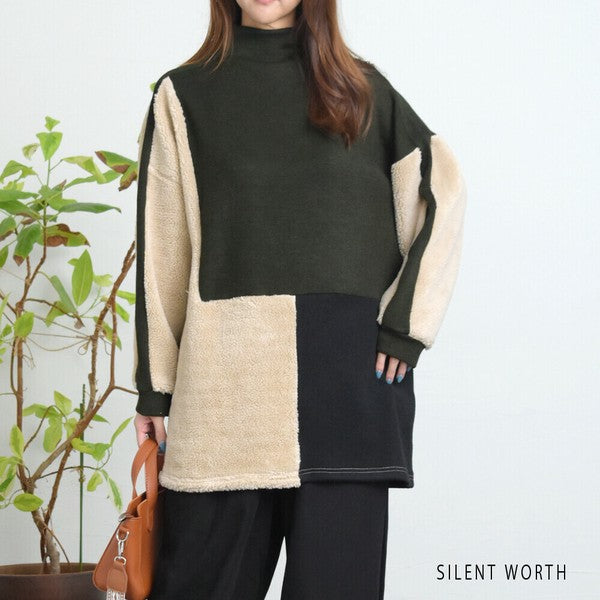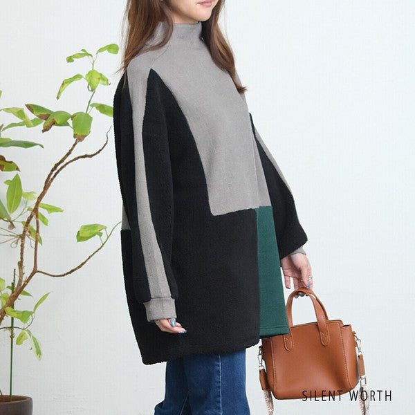 【Mサイズ】ボアブロッキングチュニック|異素材切替・ふんわりあたたか・体型カバー|SILENT WORTH C-3205