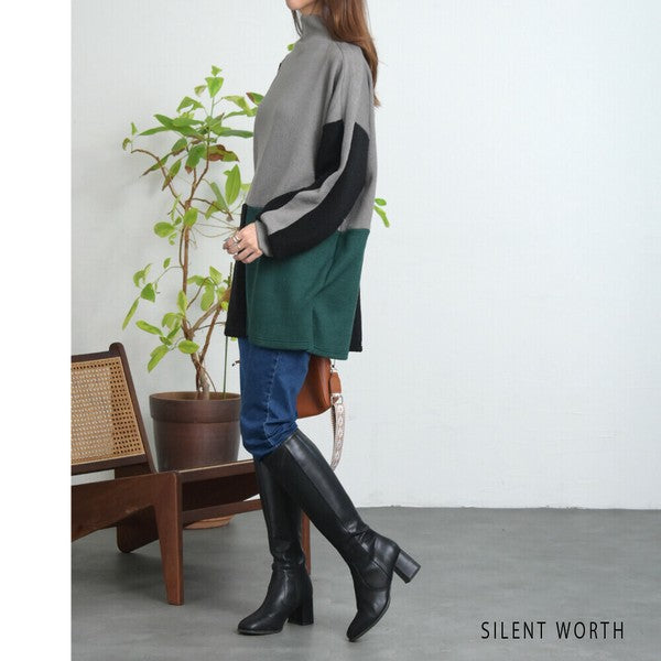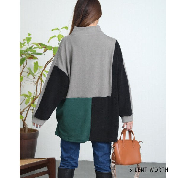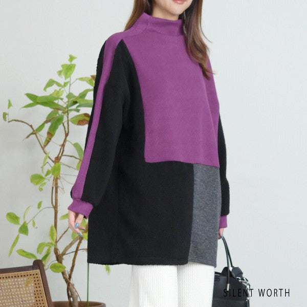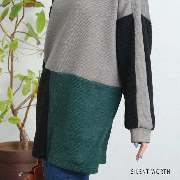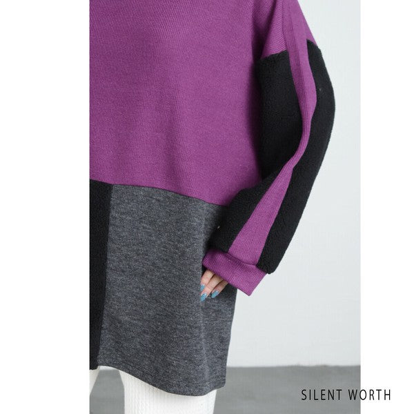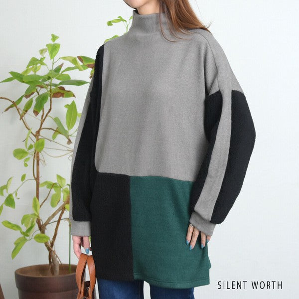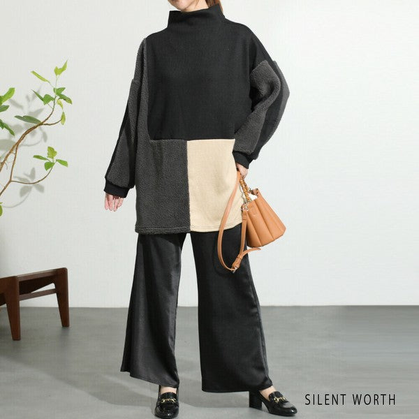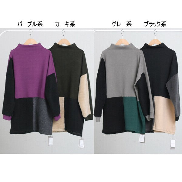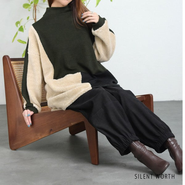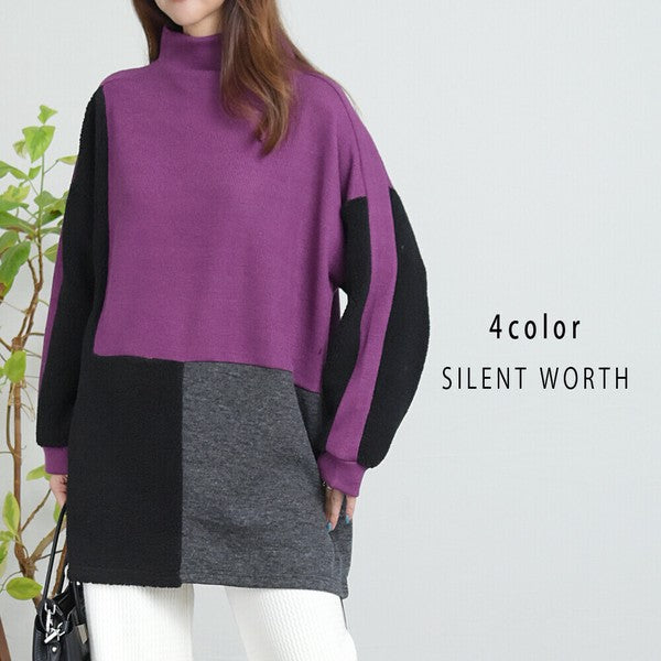 【Mサイズ】ボアブロッキングチュニック|異素材切替・ふんわりあたたか・体型カバー|SILENT WORTH C-3205