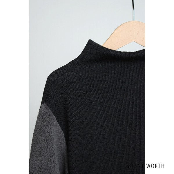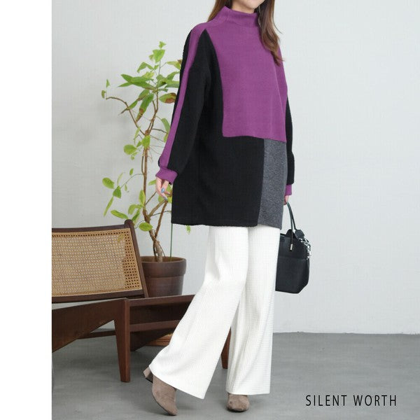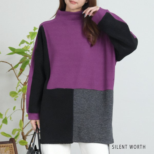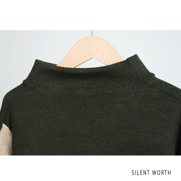 【Mサイズ】キルティング×ニットデザインプルオーバー|異素材切替・あったかオフタートル・サイドボタン仕様|SILENT WORTH N-3017