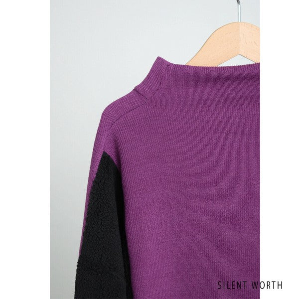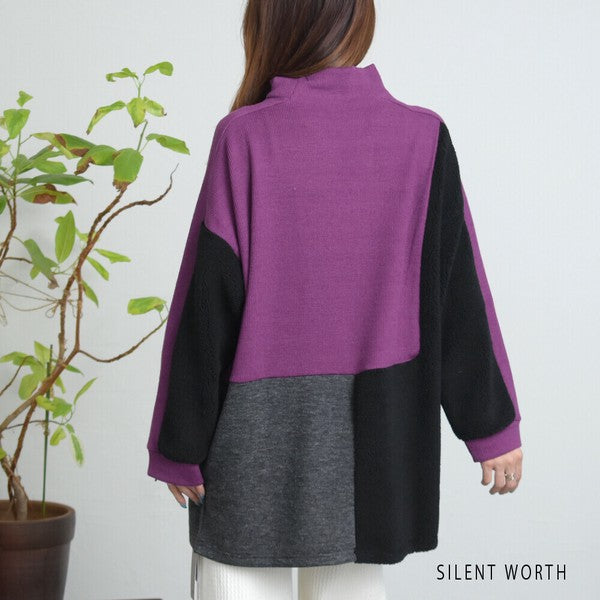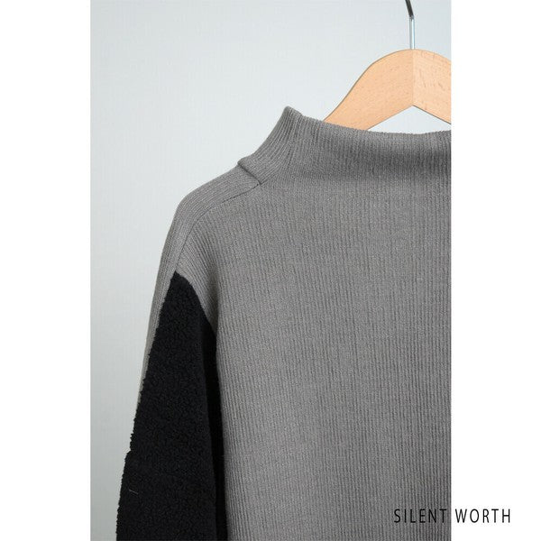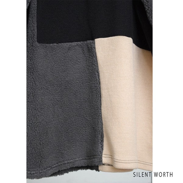 ふんわりとしたボアとニットカット素材を切り替えた、SILENT WORTHのブロッキングチュニック。