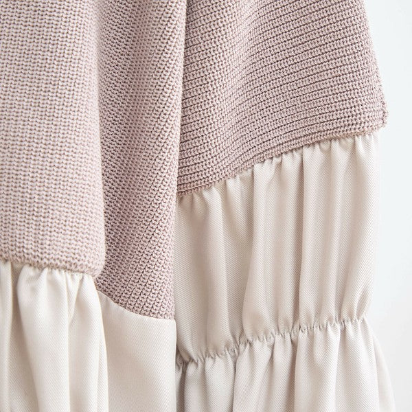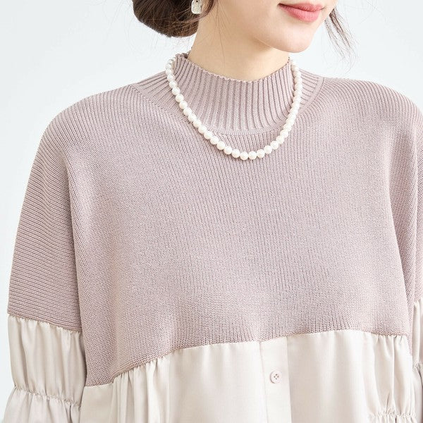 ●上身頃は柔らかなリブニット、下身頃はさらりとした布帛素材