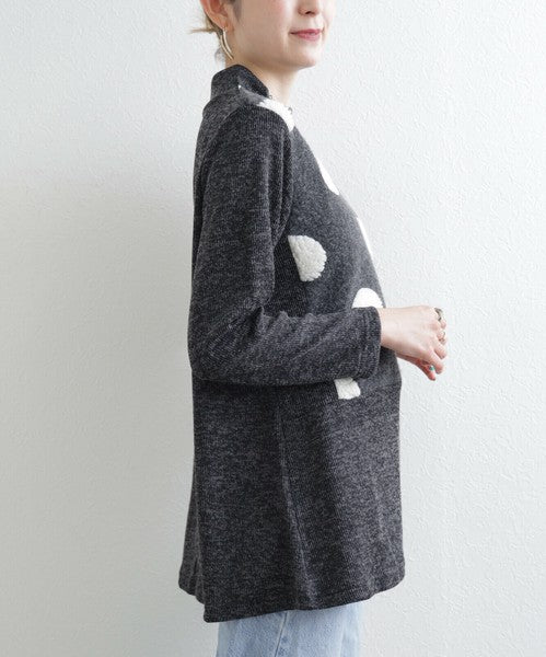 前身頃の立体的なもこもこドットがアクセント