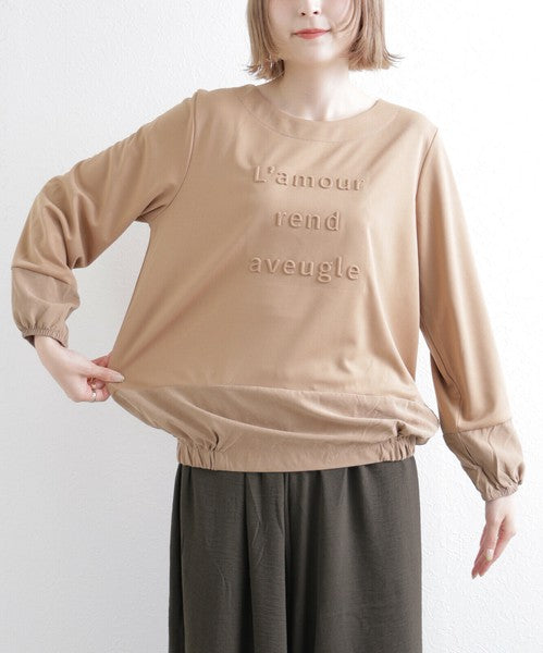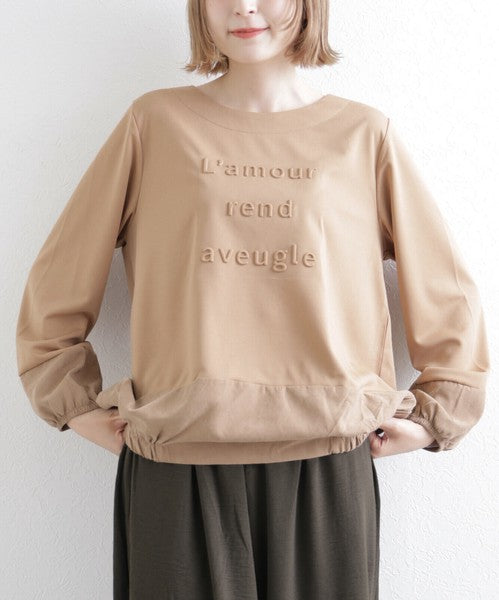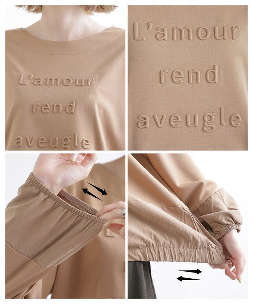 エンボス加工の英字ロゴがアクセントになるプルオーバー