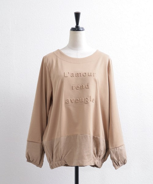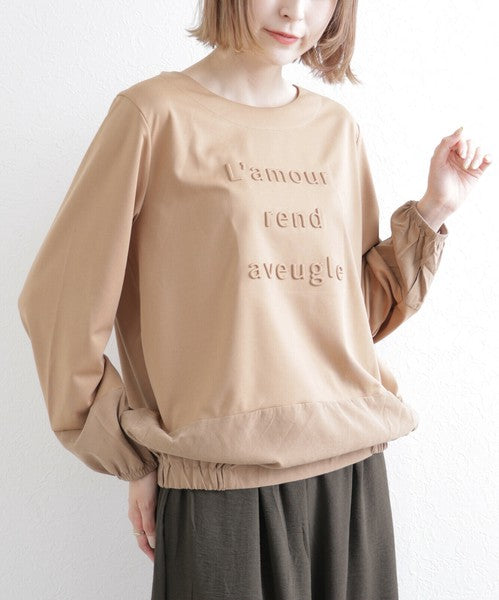 【M〜L】エンボス英字ロゴプルオーバー|配色デザイン・カジュアル長袖トップス・Economico IF839