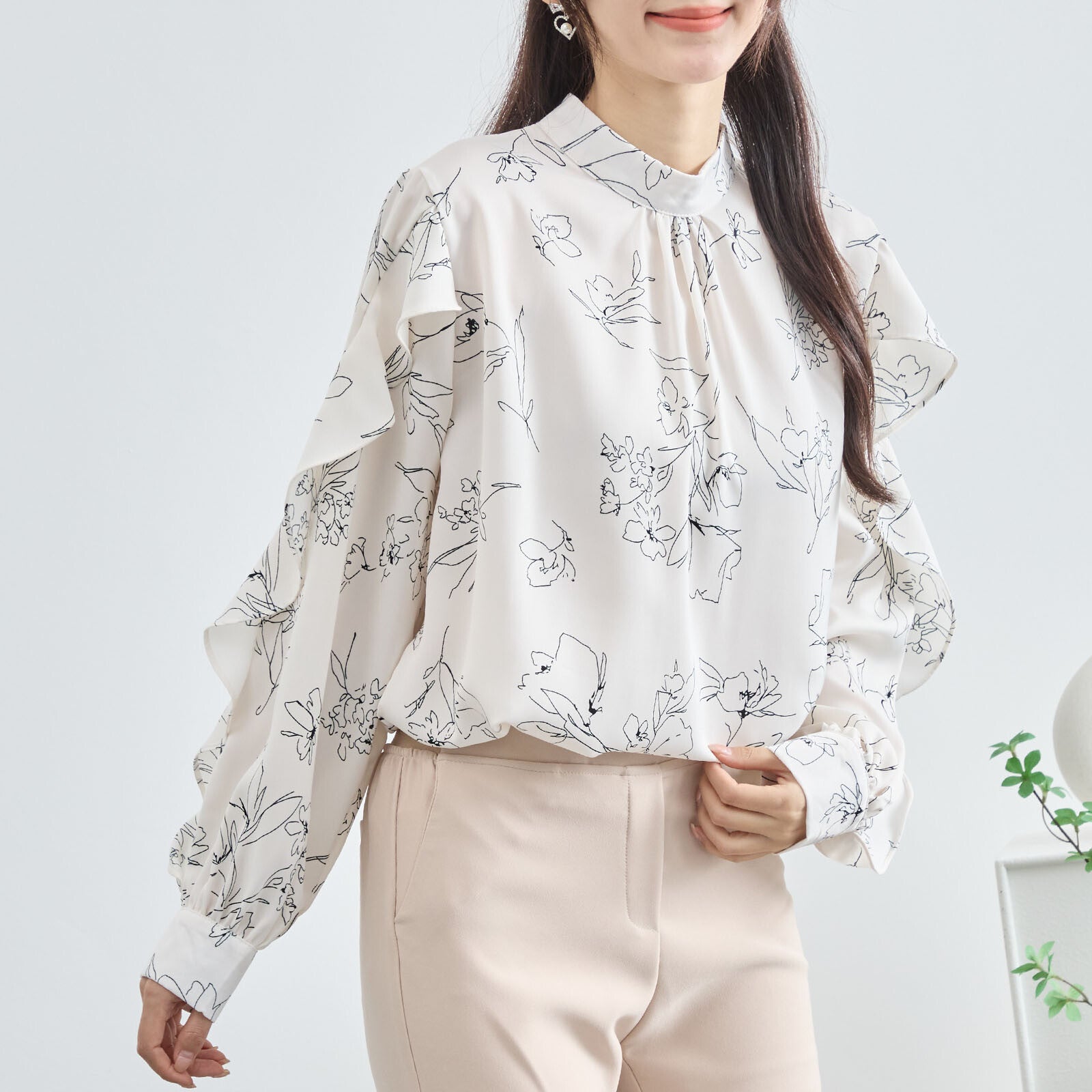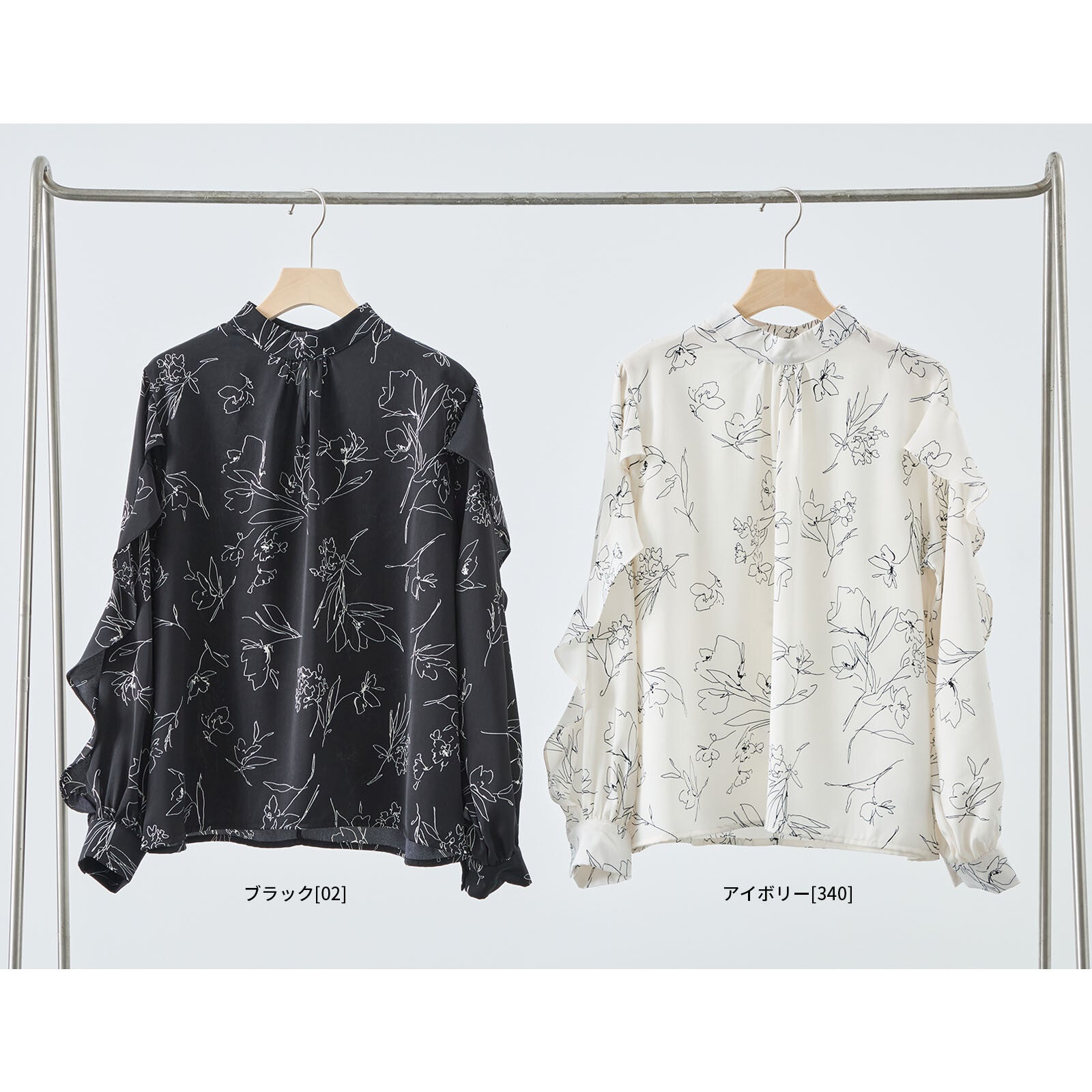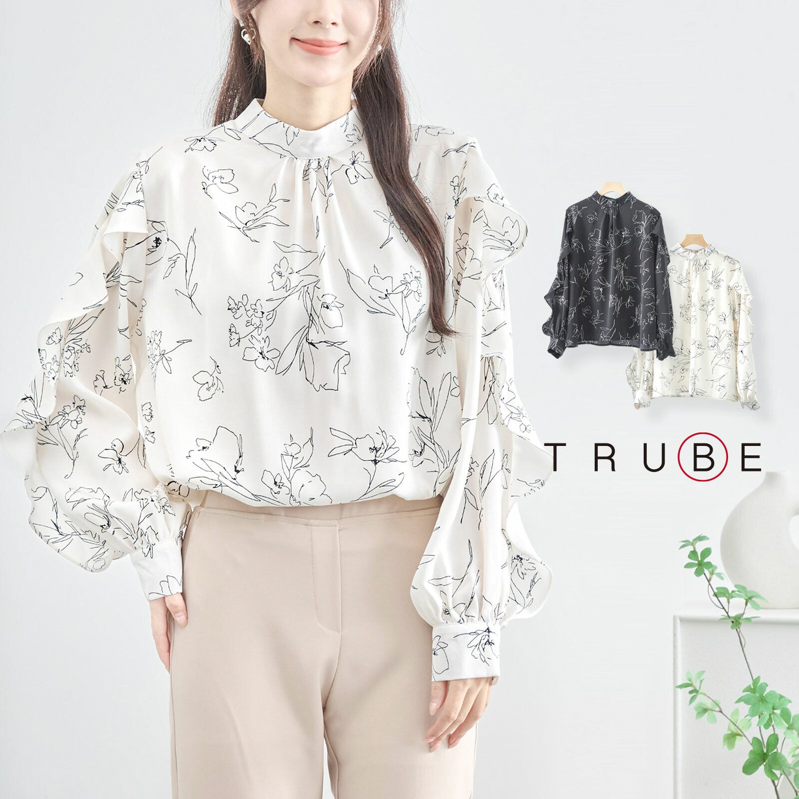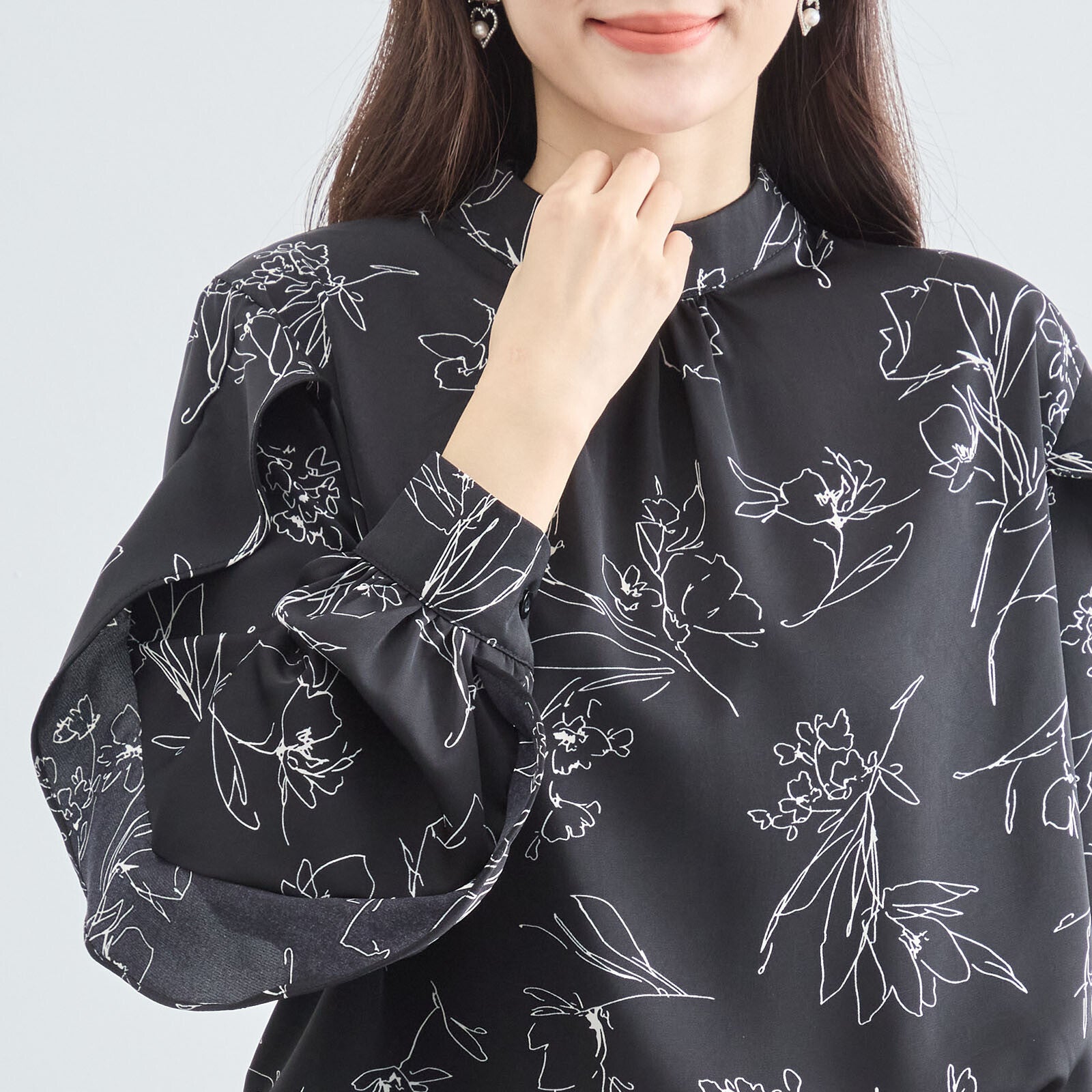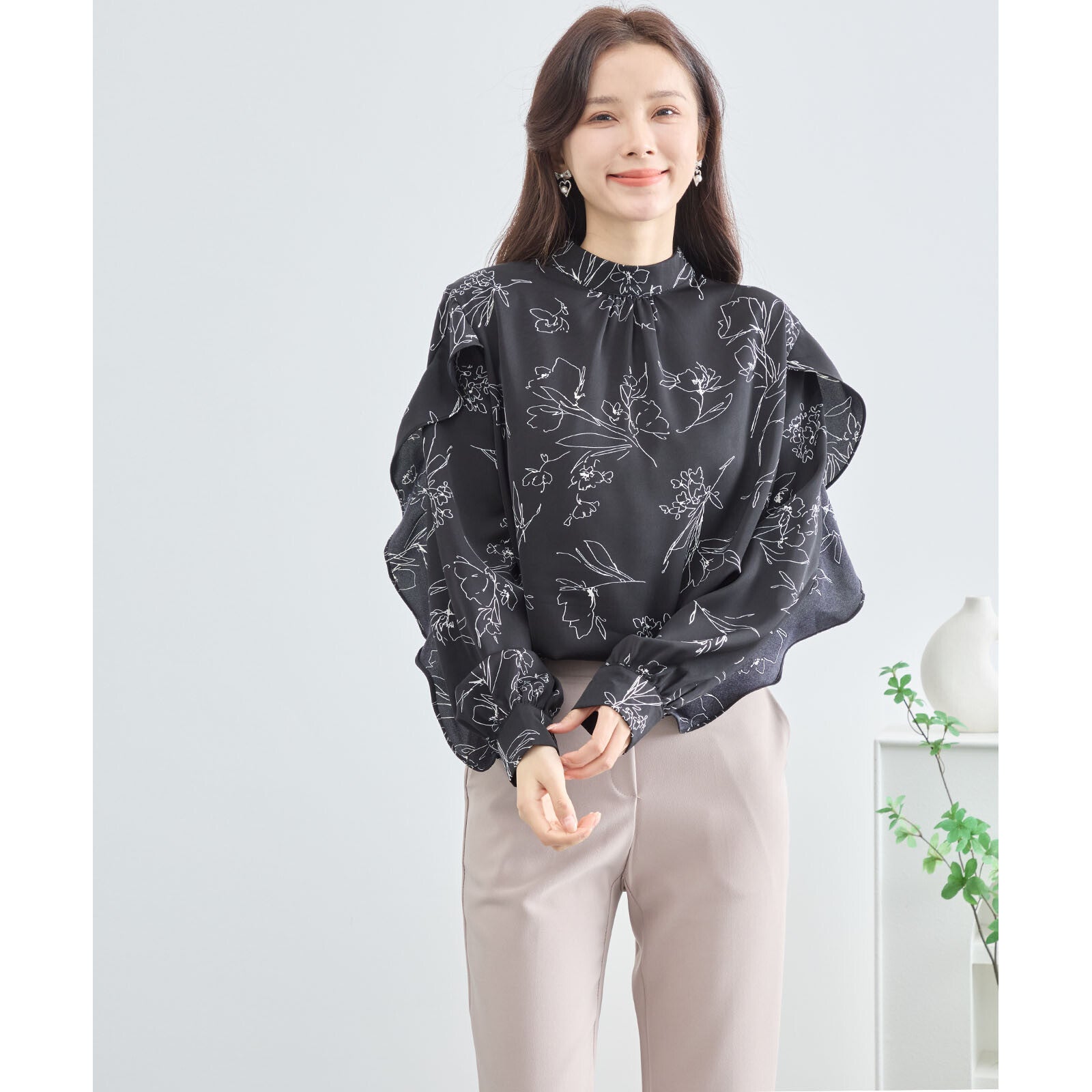 【M〜L】花柄フリルスリーブブラウス|プチハイネック・長袖トップス・きれいめ・12564811 TRUBE