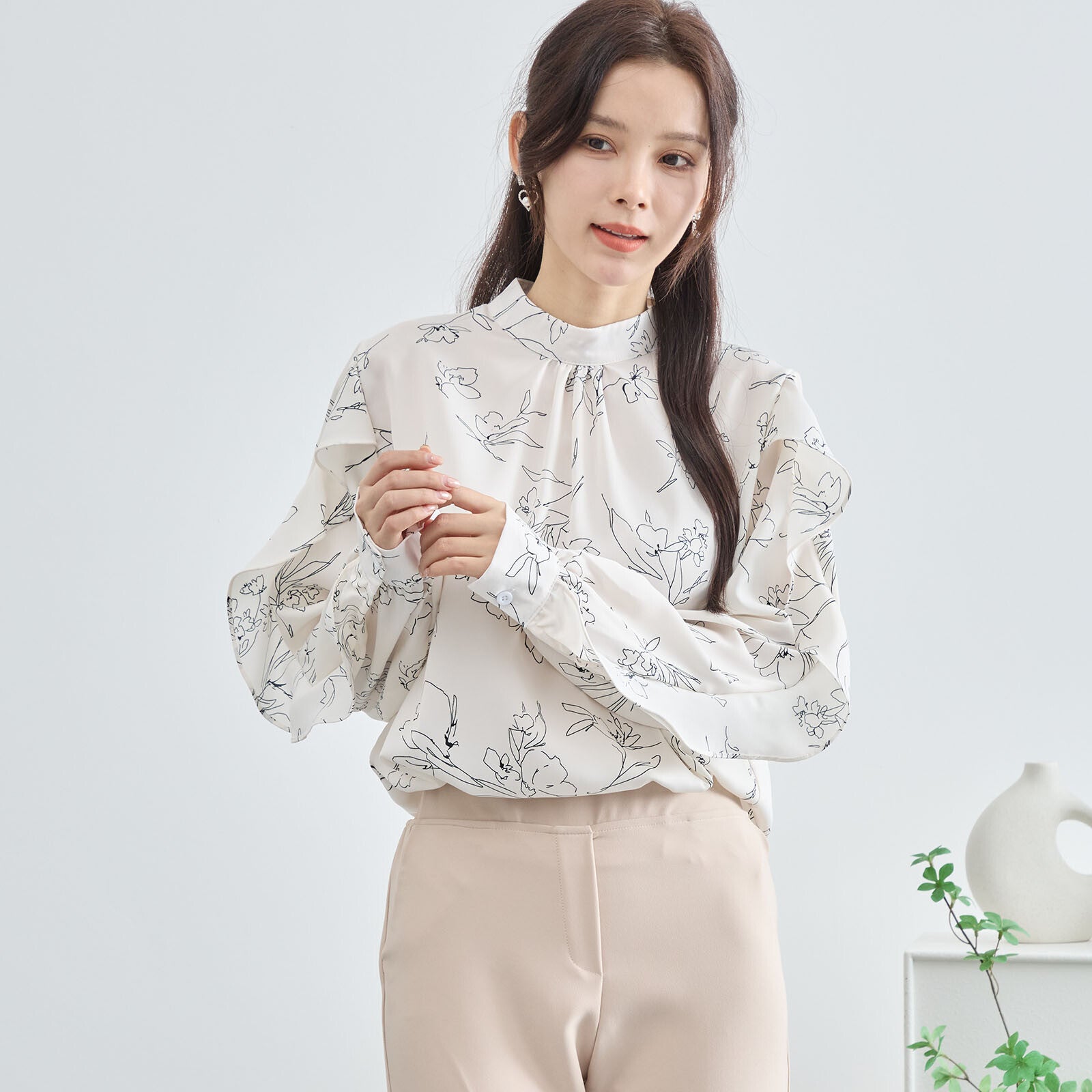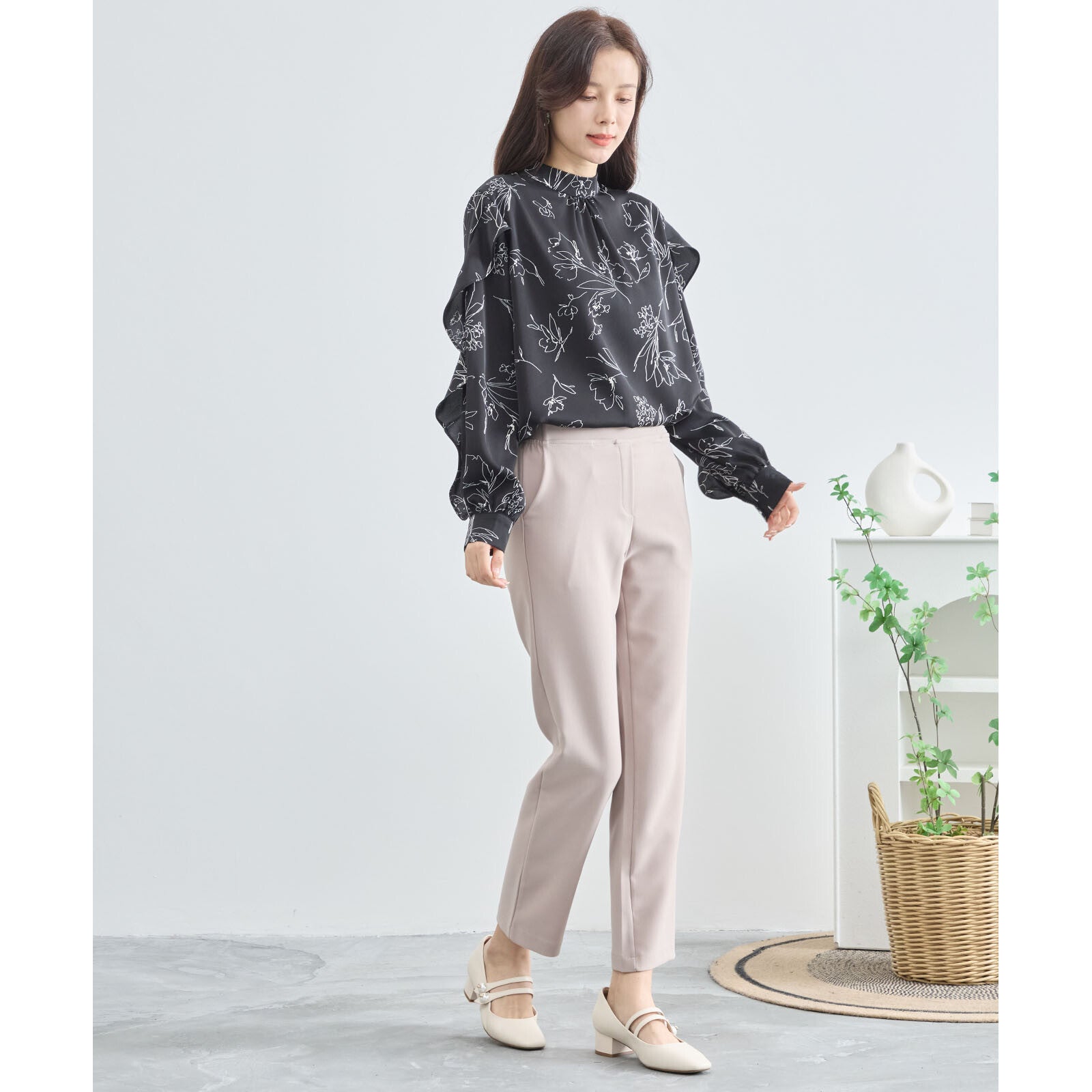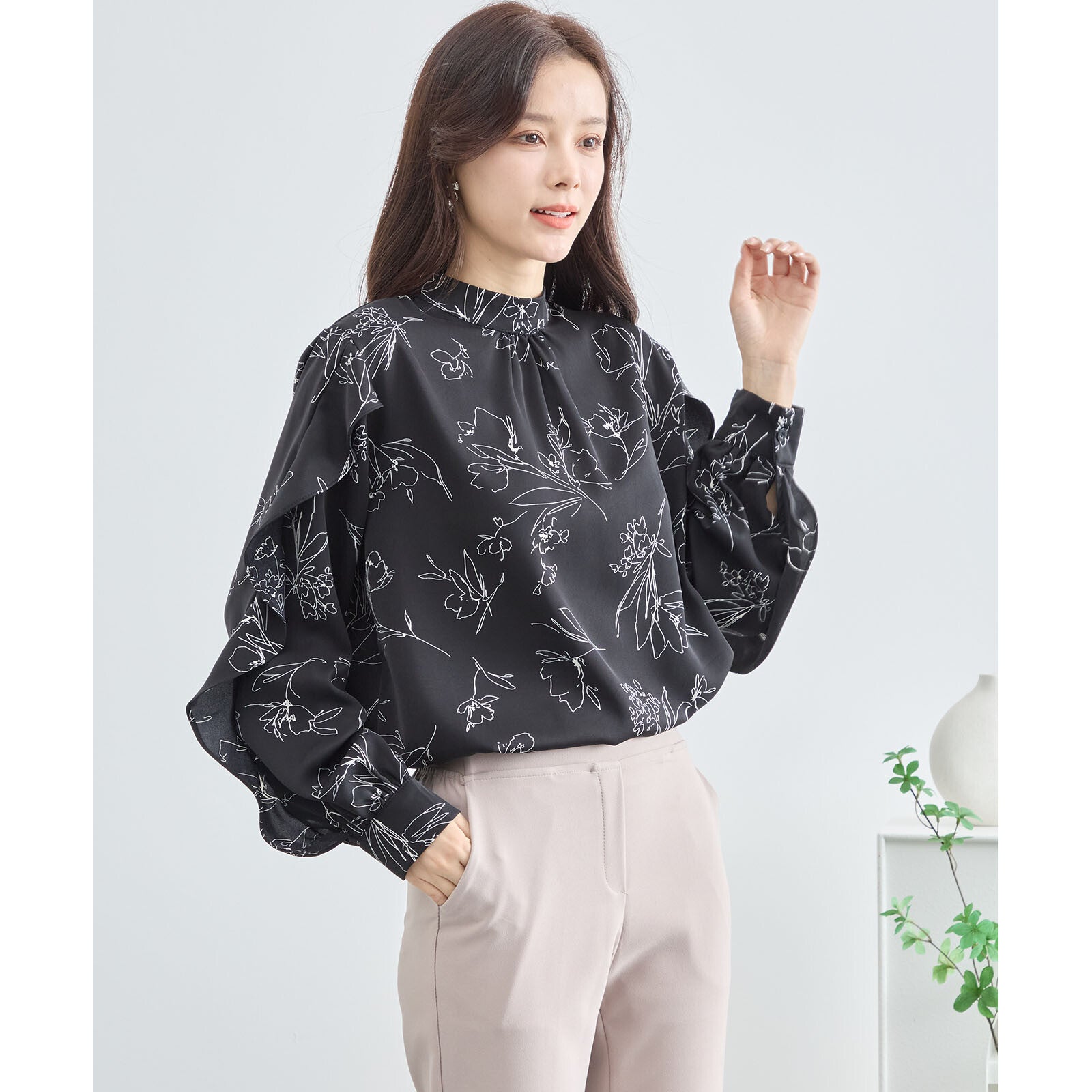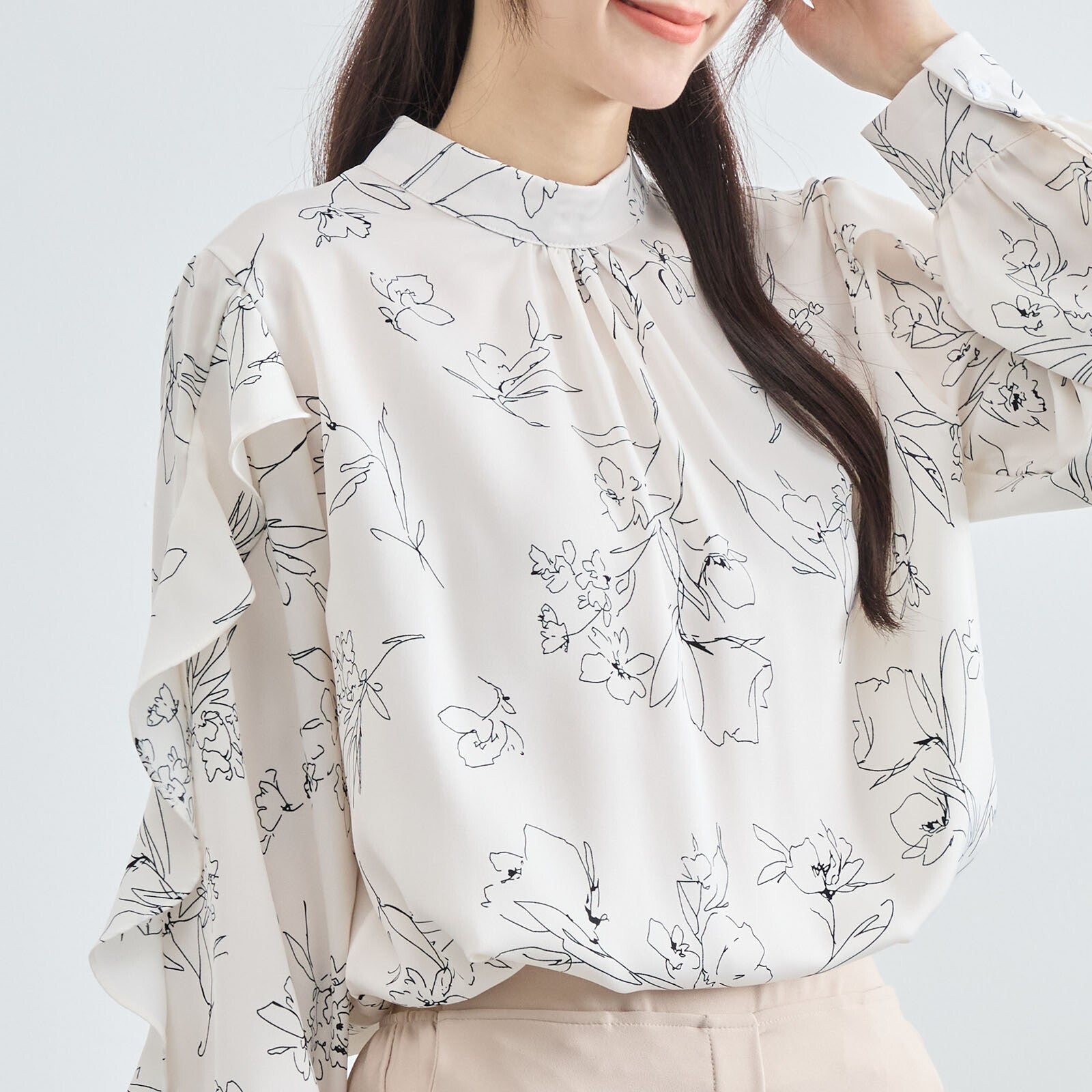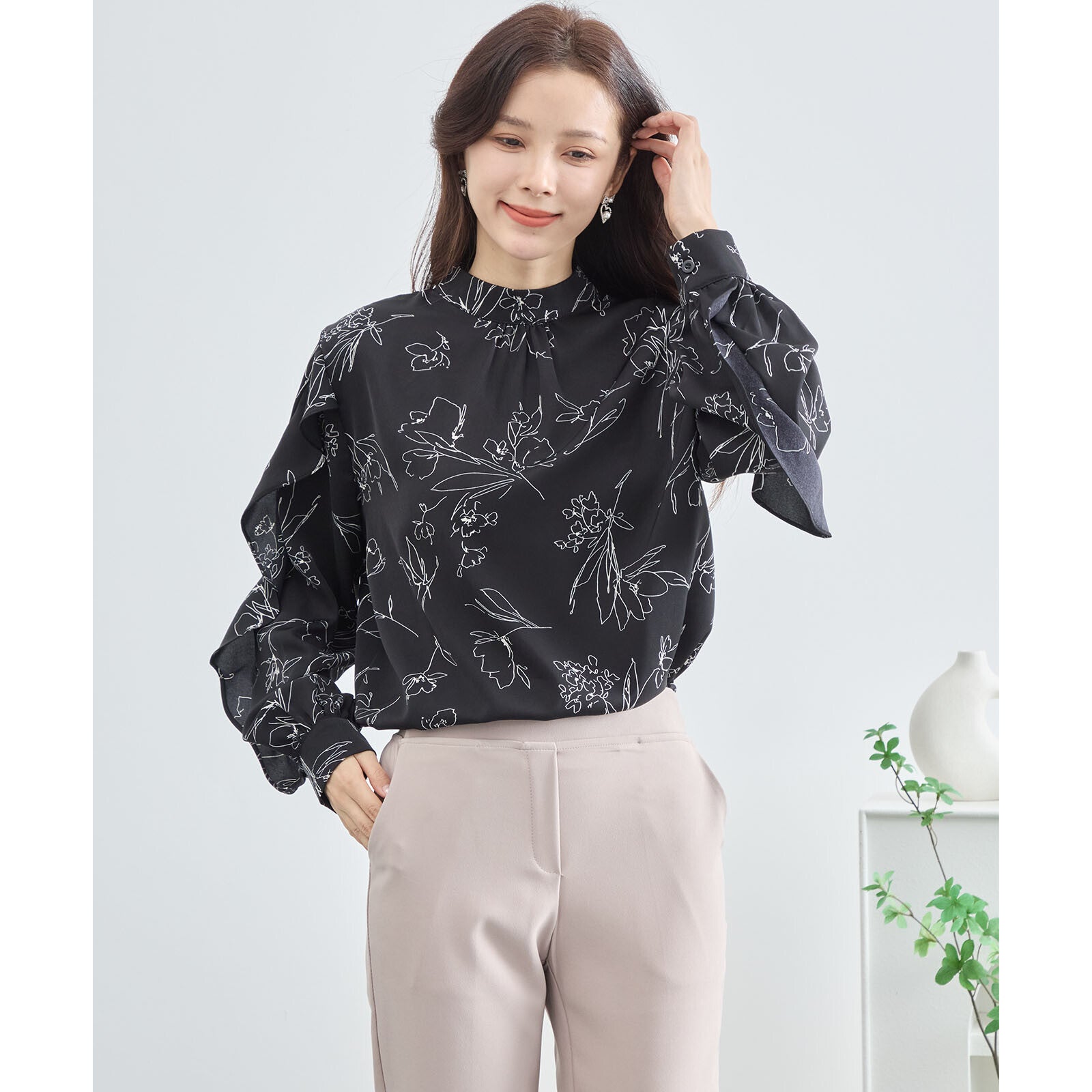 【M〜L】花柄フリルスリーブブラウス|プチハイネック・長袖トップス・きれいめ・12564811 TRUBE