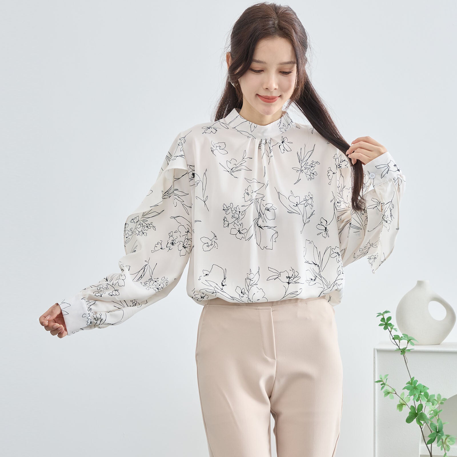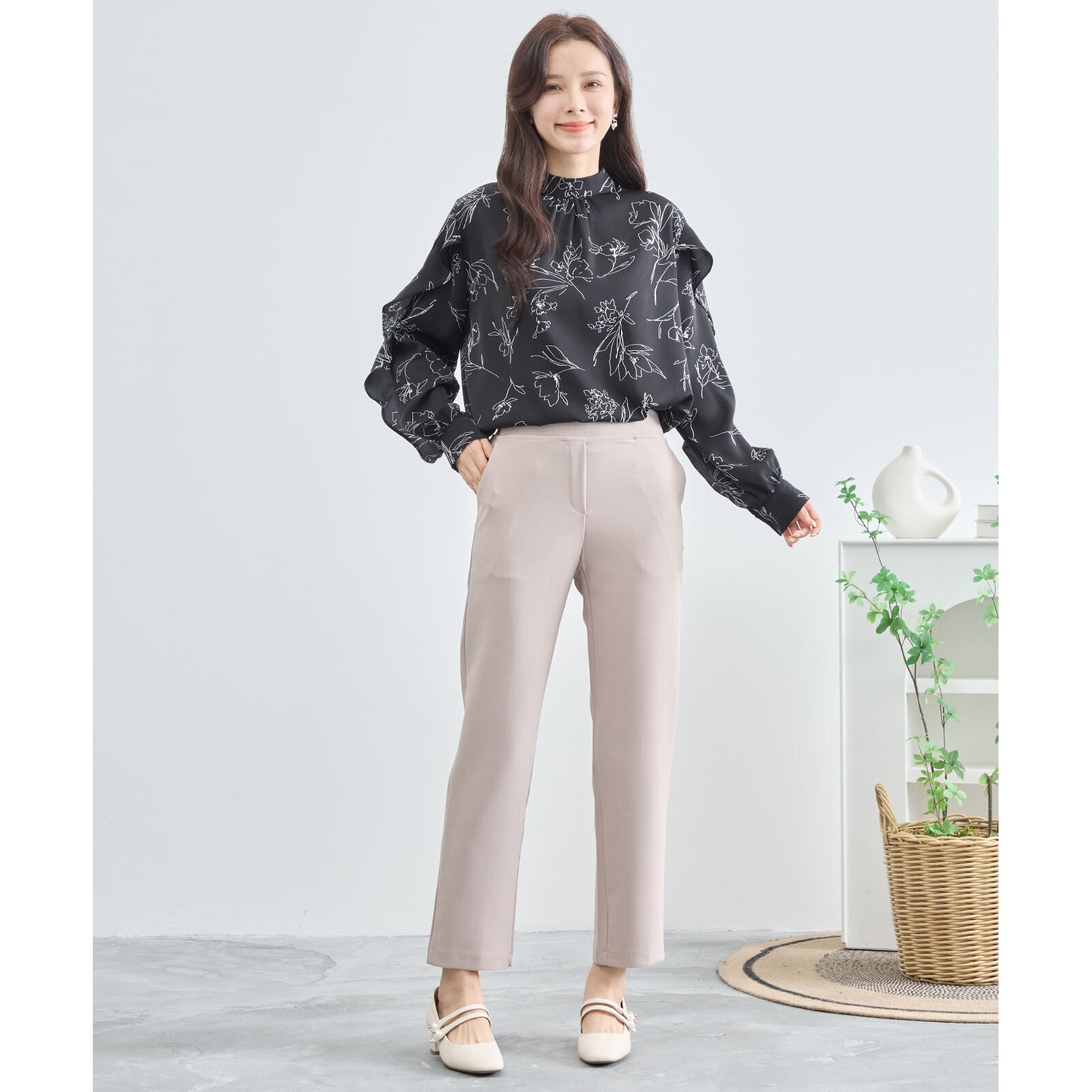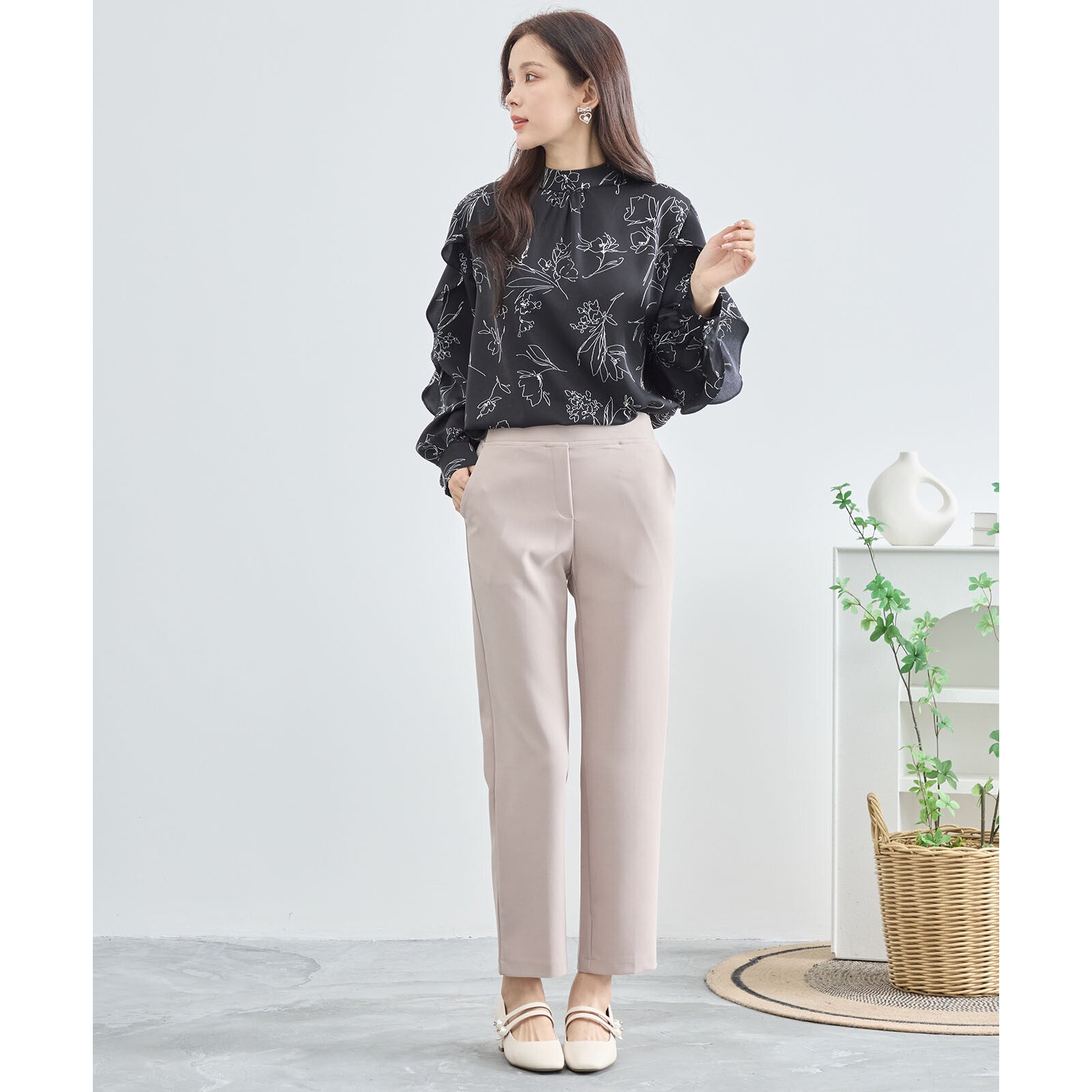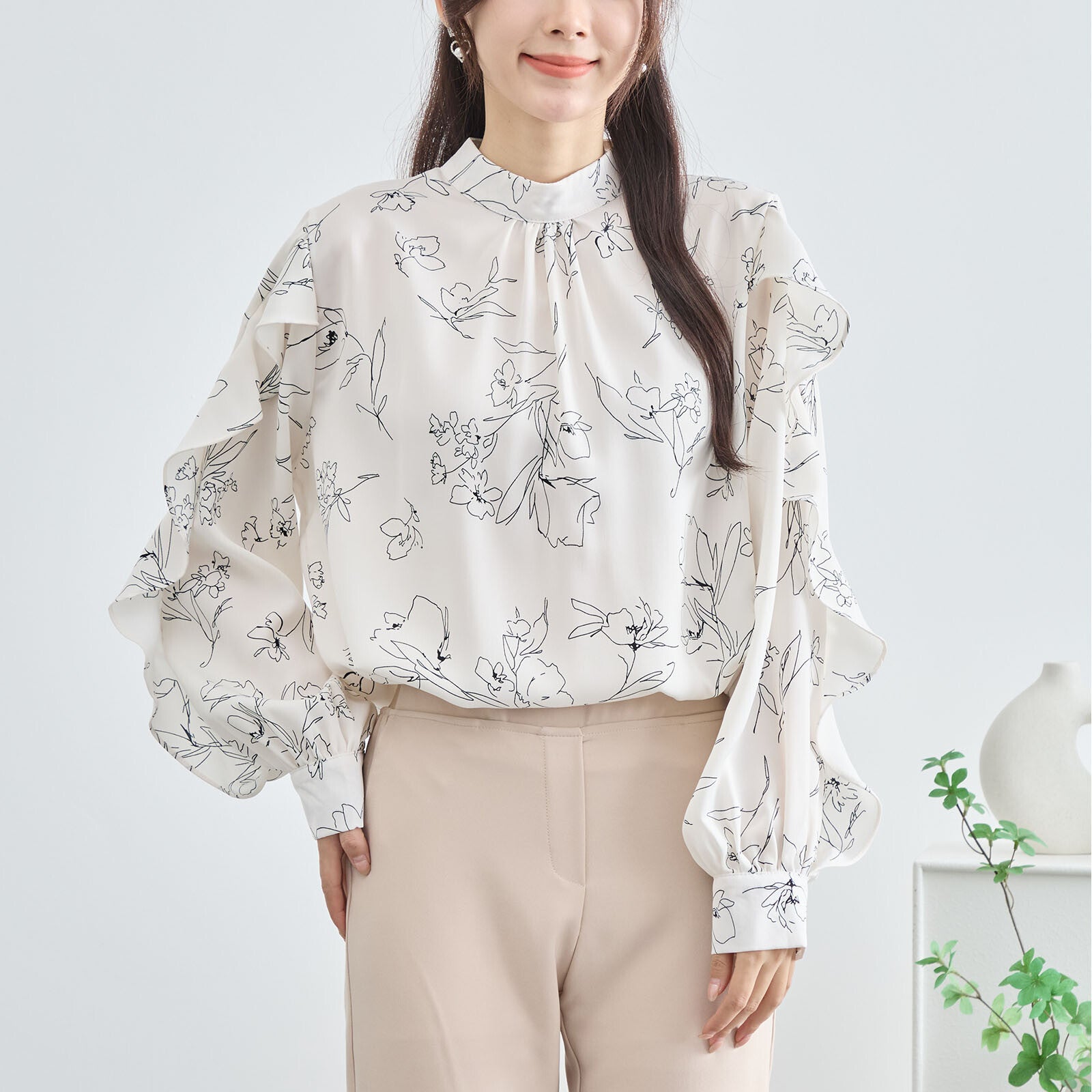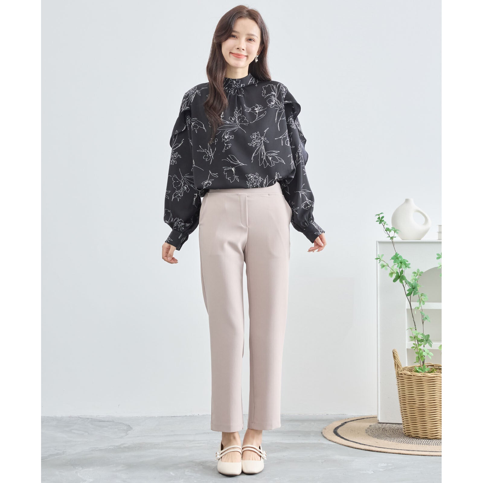 【M〜L】花柄フリルスリーブブラウス|プチハイネック・長袖トップス・きれいめ・12564811 TRUBE