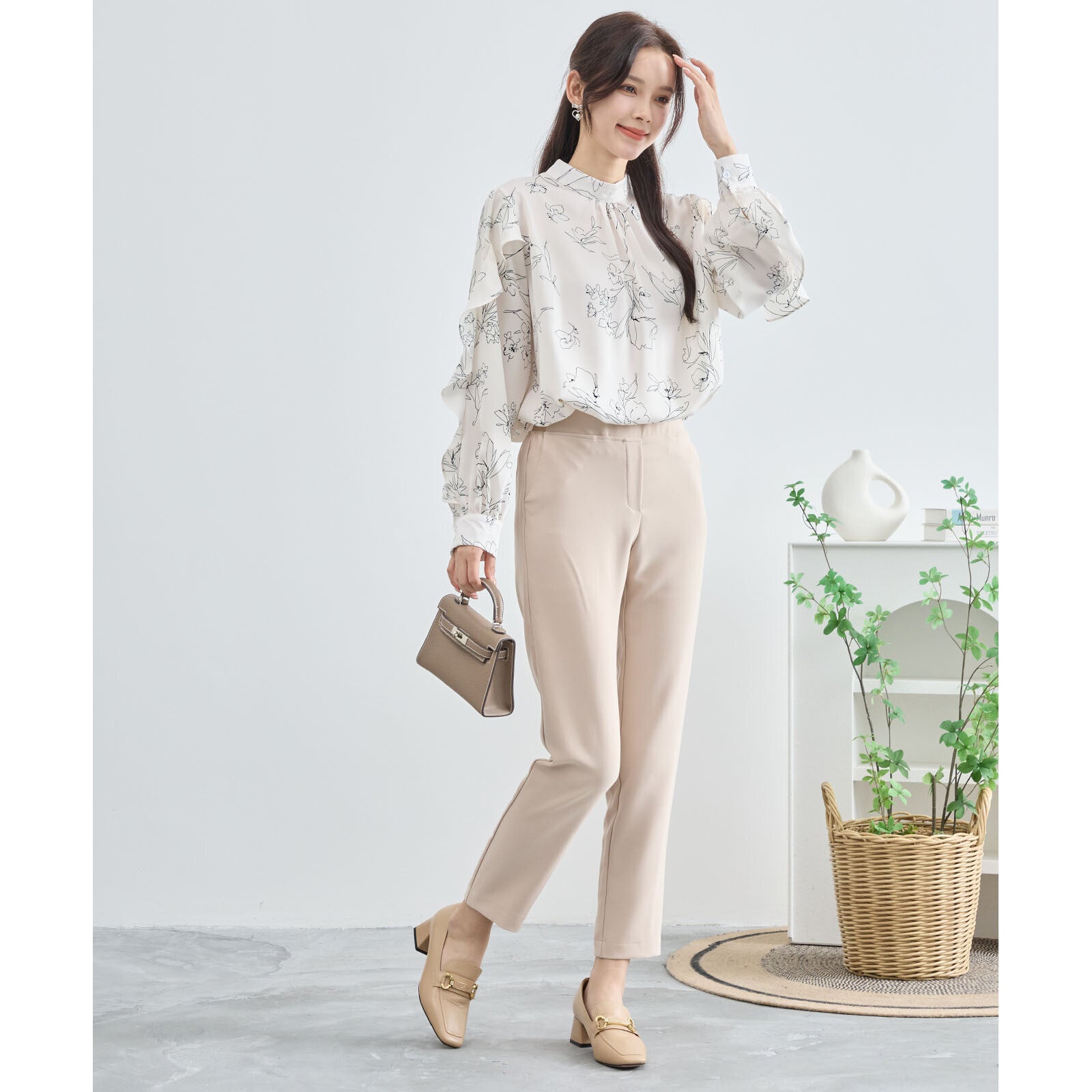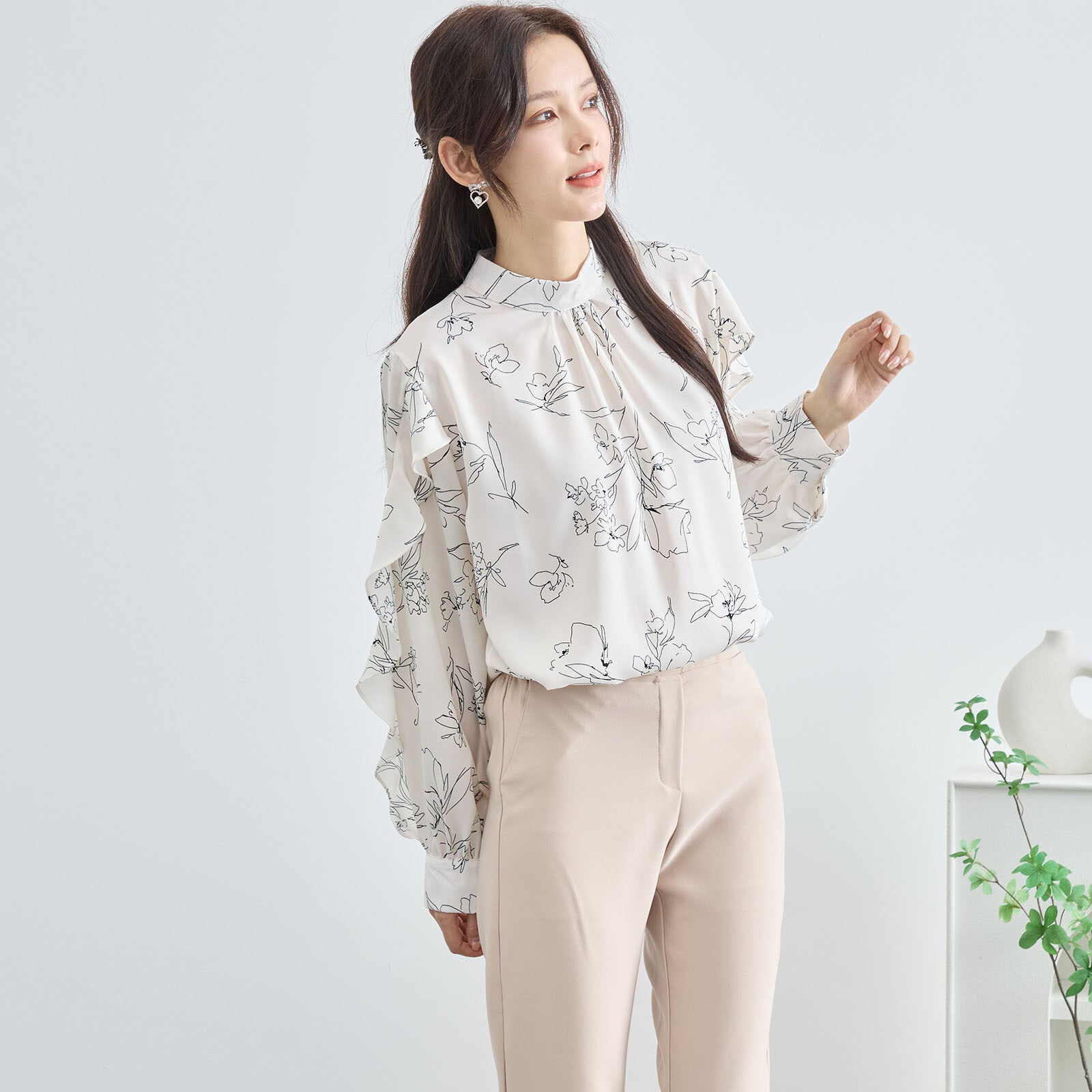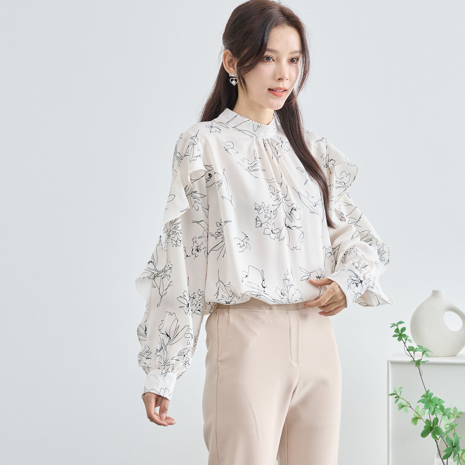 女性らしい華やかさを引き立てる「フリルスリーブブラウス」。