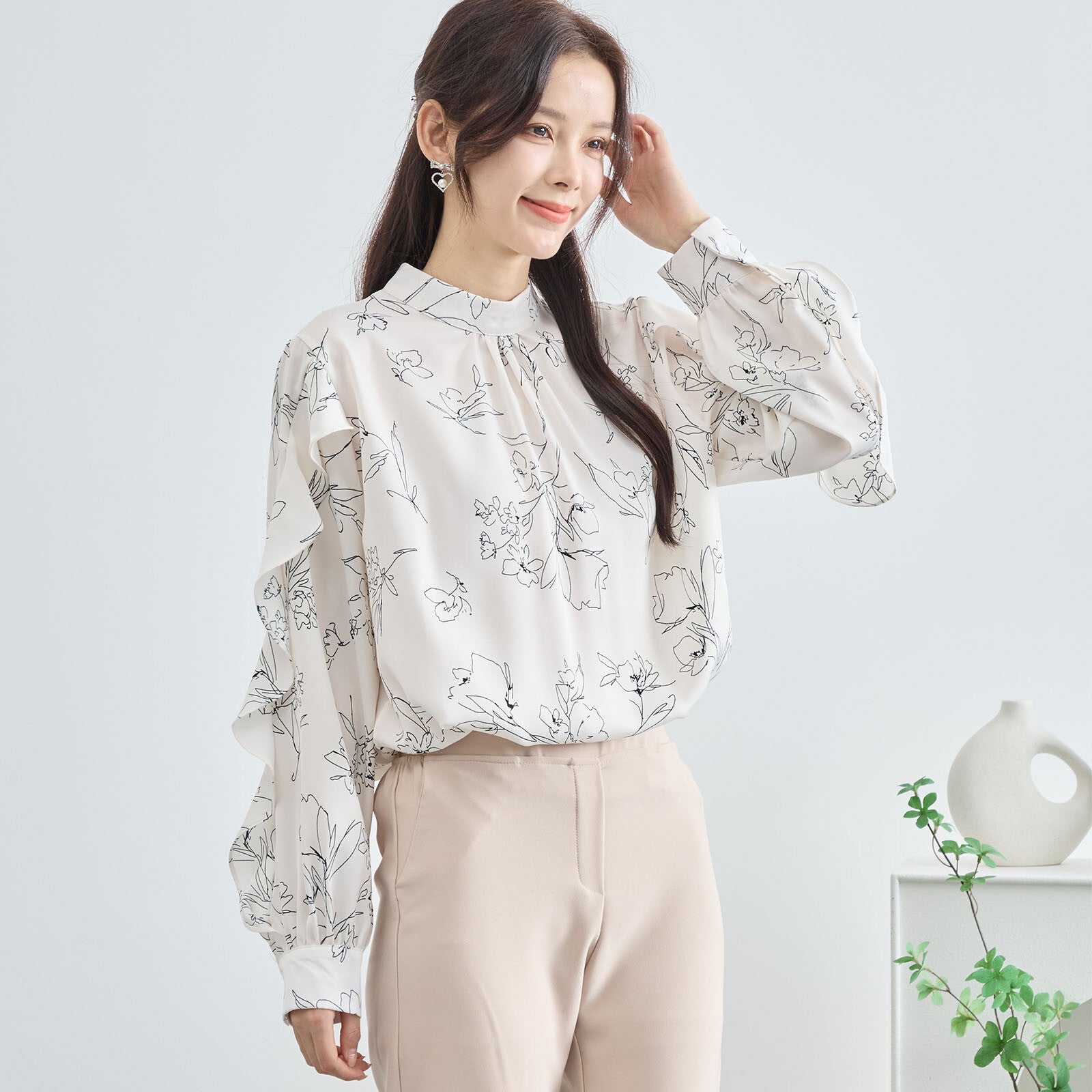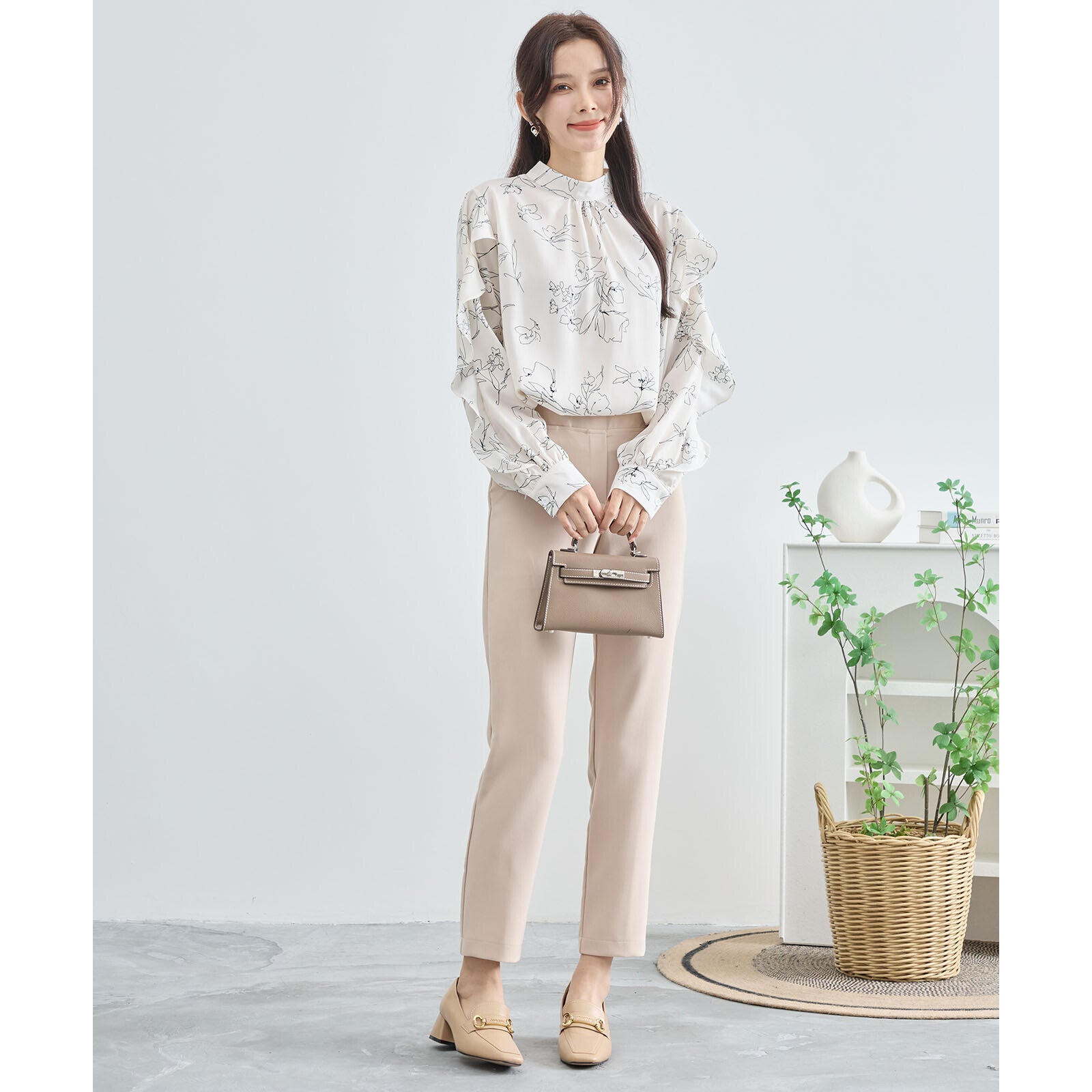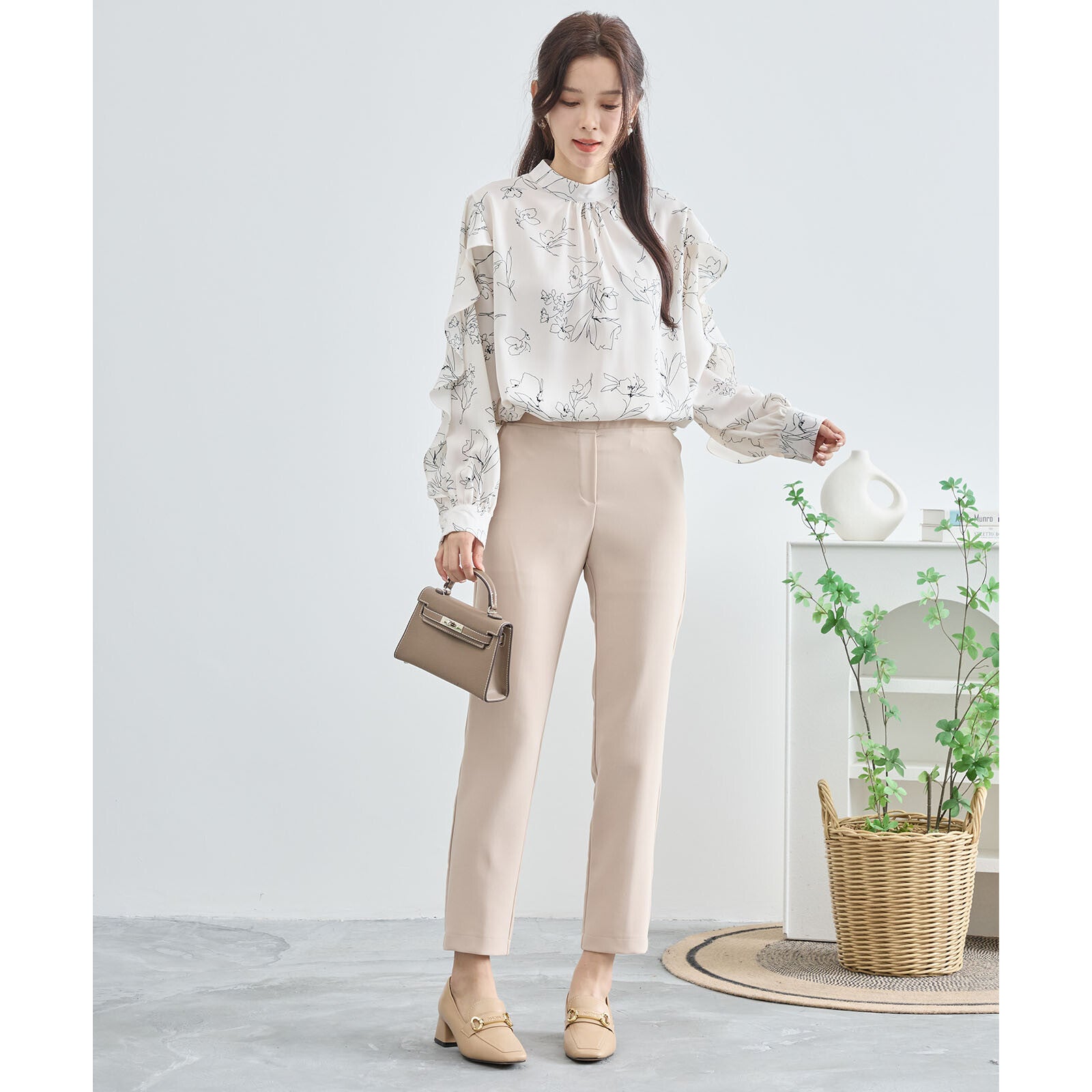 女性らしい華やかさを引き立てる「フリルスリーブブラウス」。