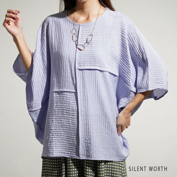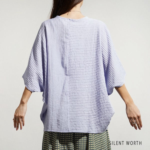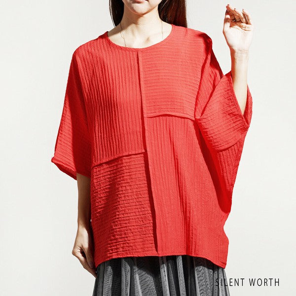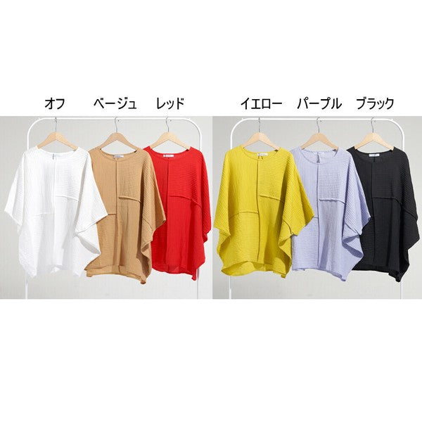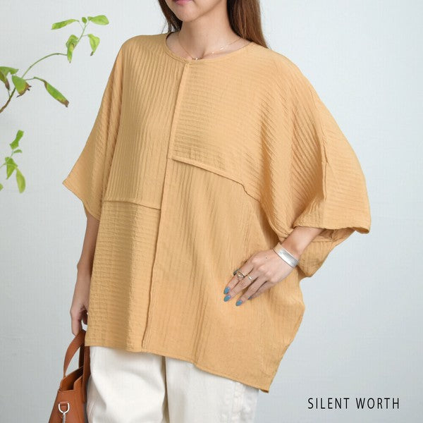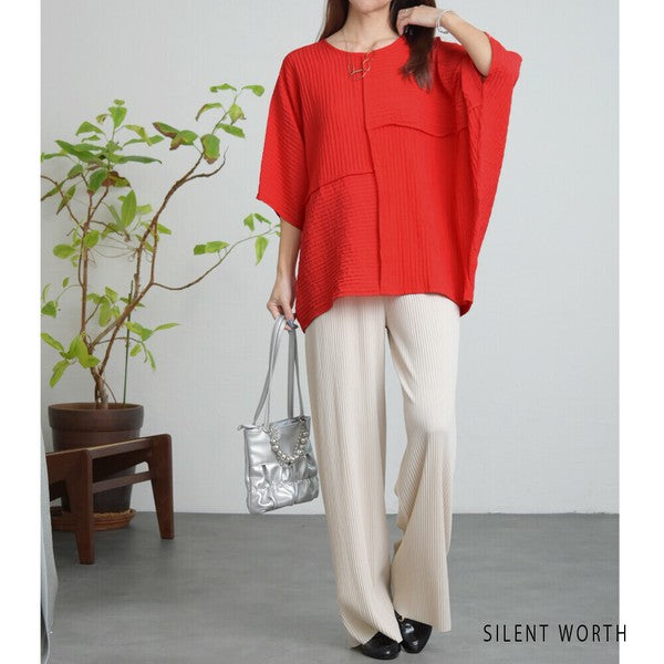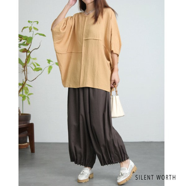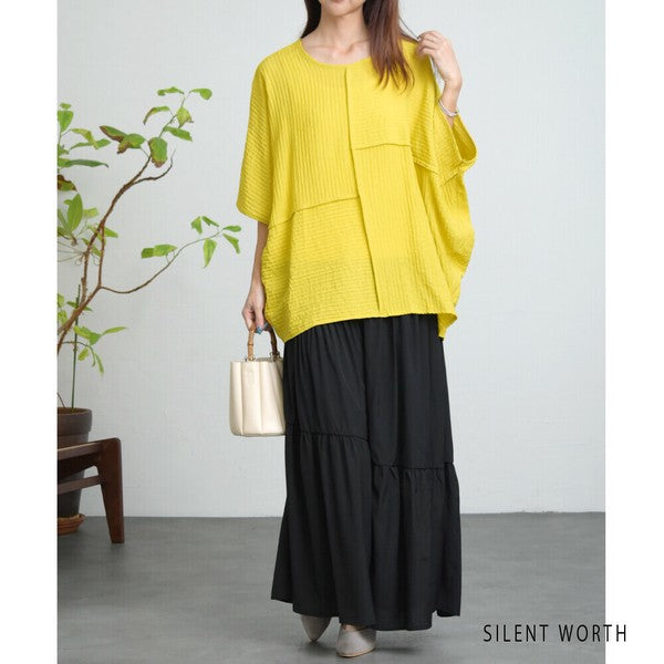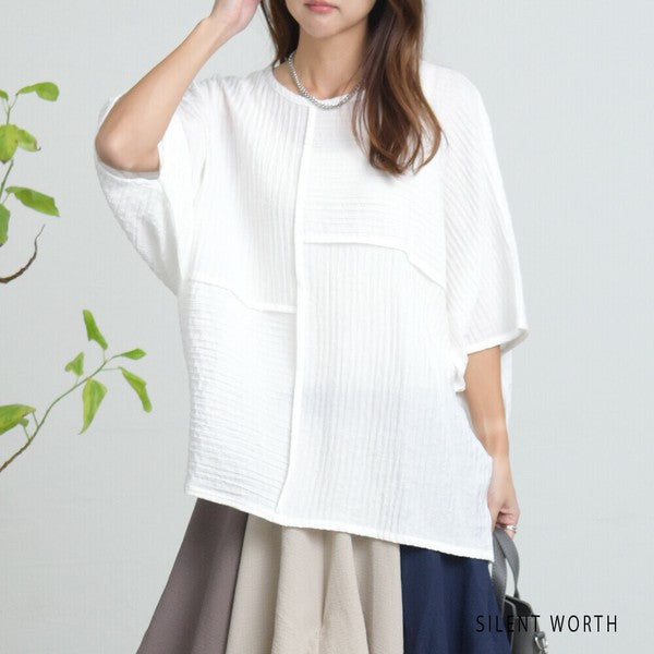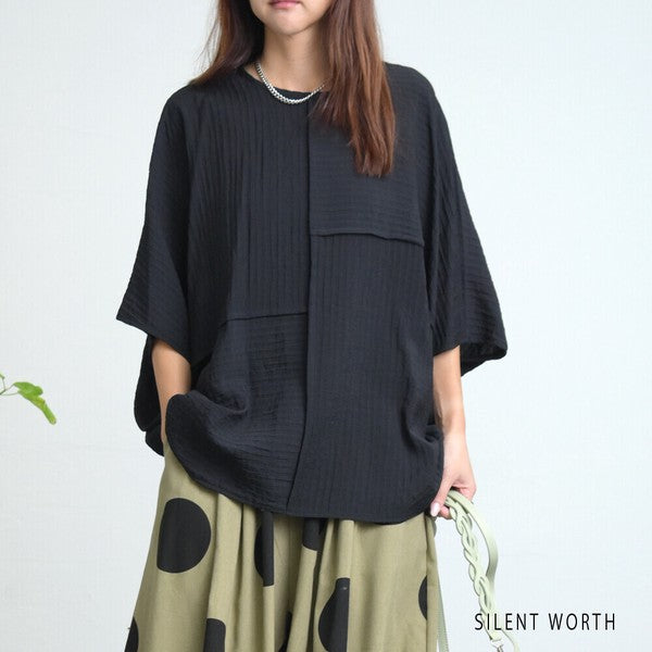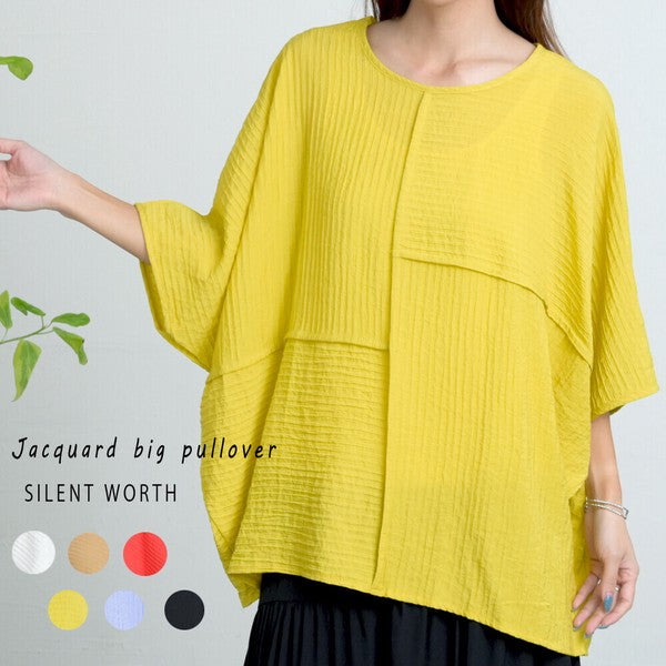 【M】切替デザインジャカードプルオーバー|フクレ素材・ビッグシルエット・体型カバー・SILENT WORTH Y-0012