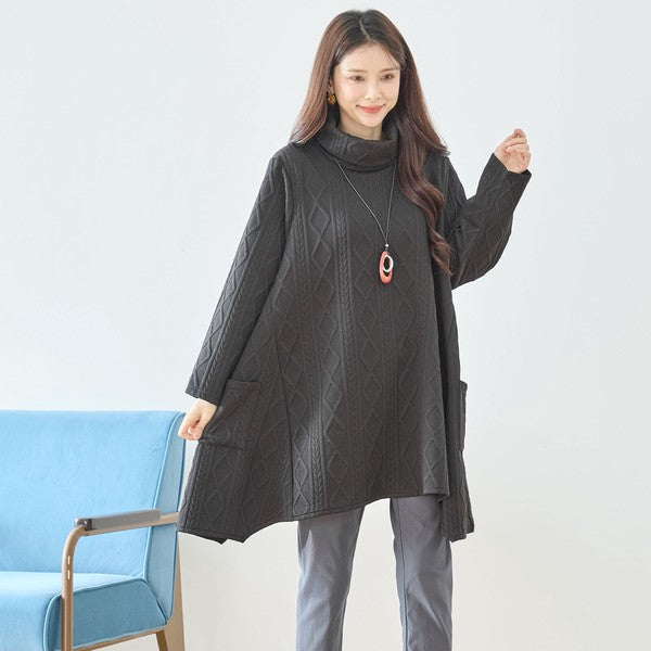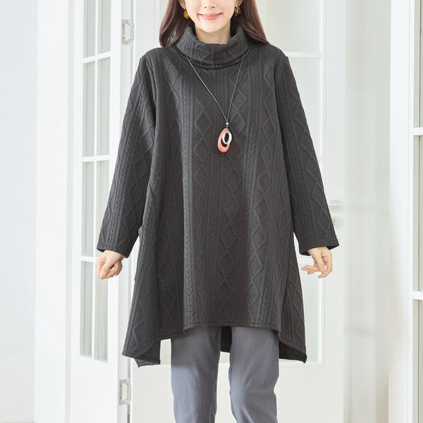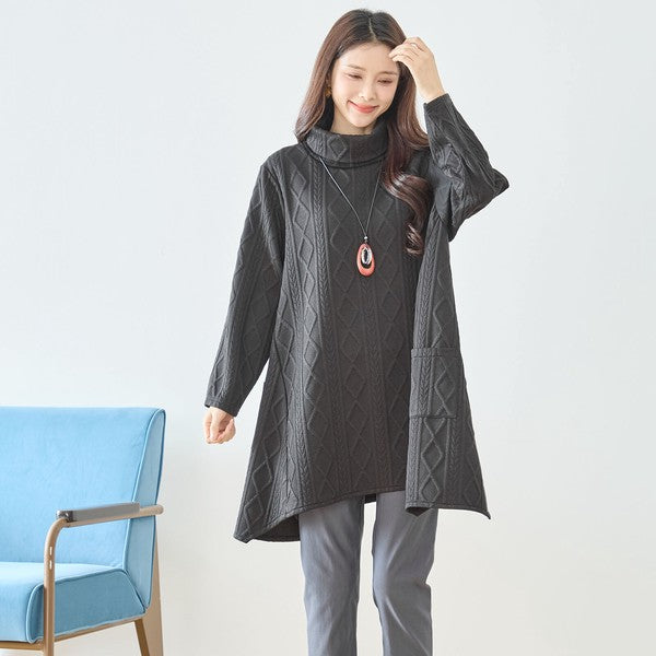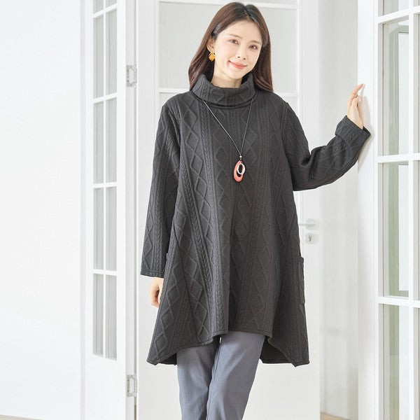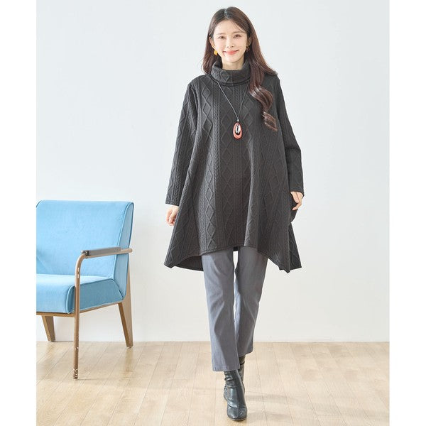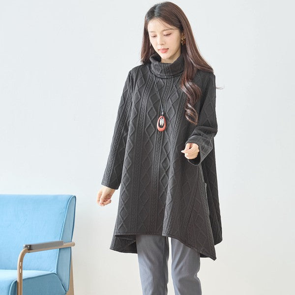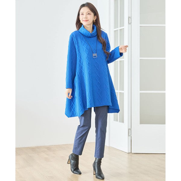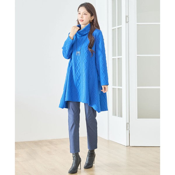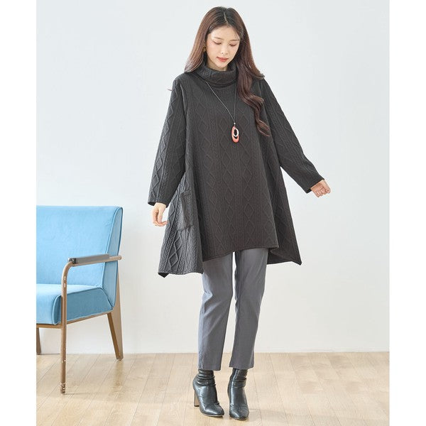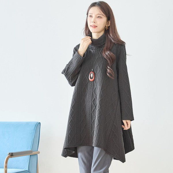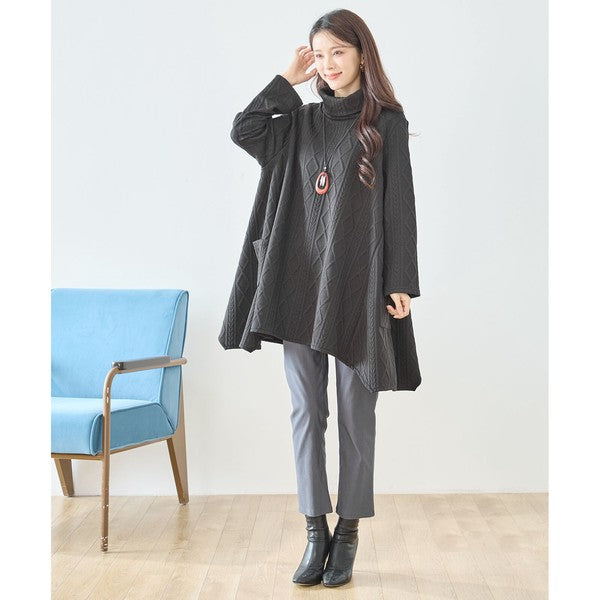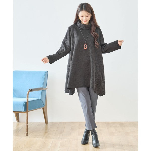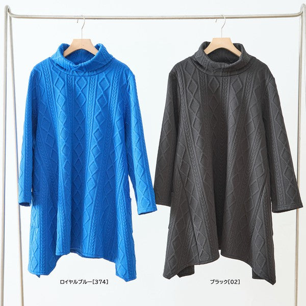 【L〜LL】立体ジャガードタートルネックAラインチュニック|ゆったり体型カバー・大人上品・TRUBE・N83-238