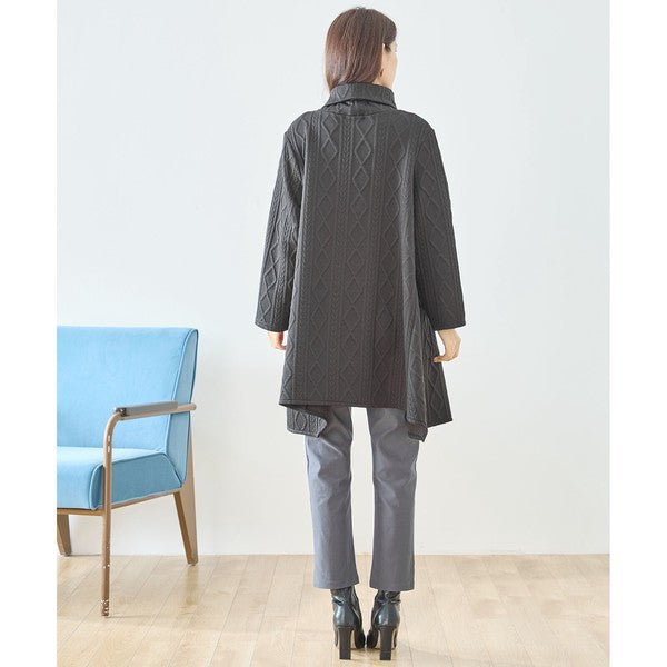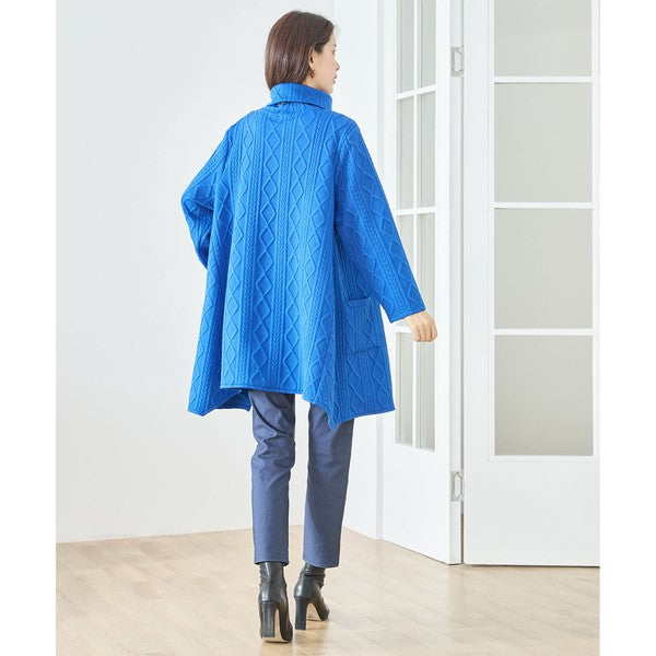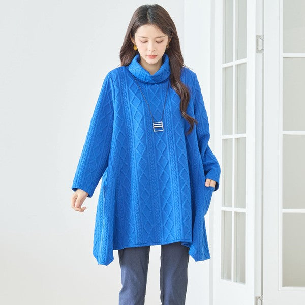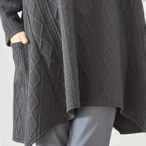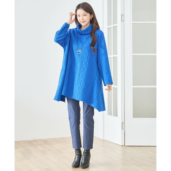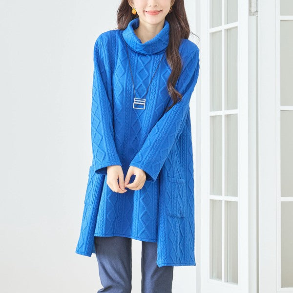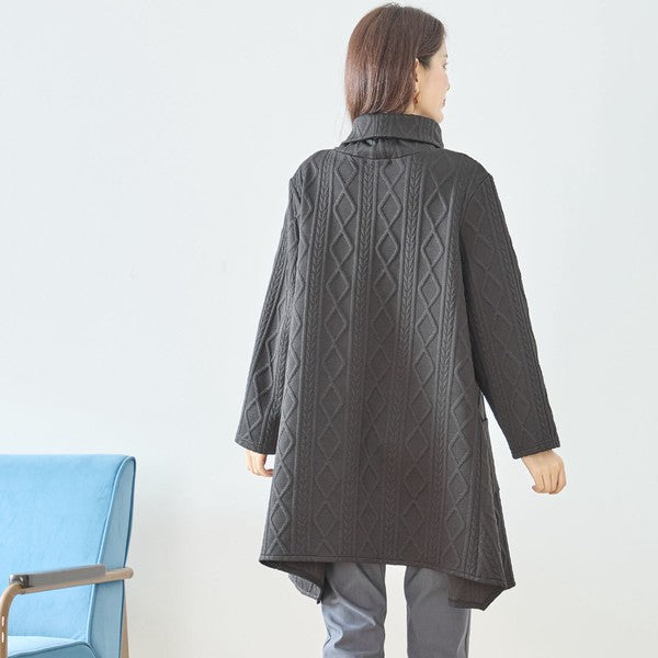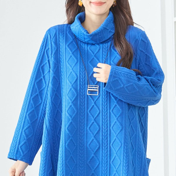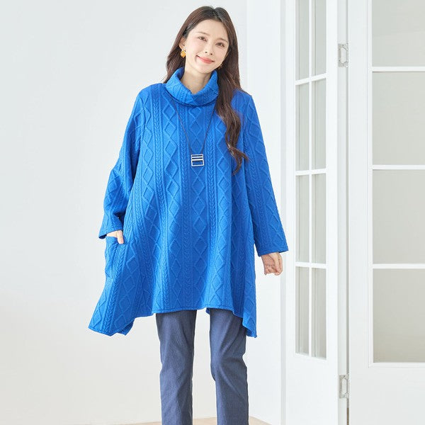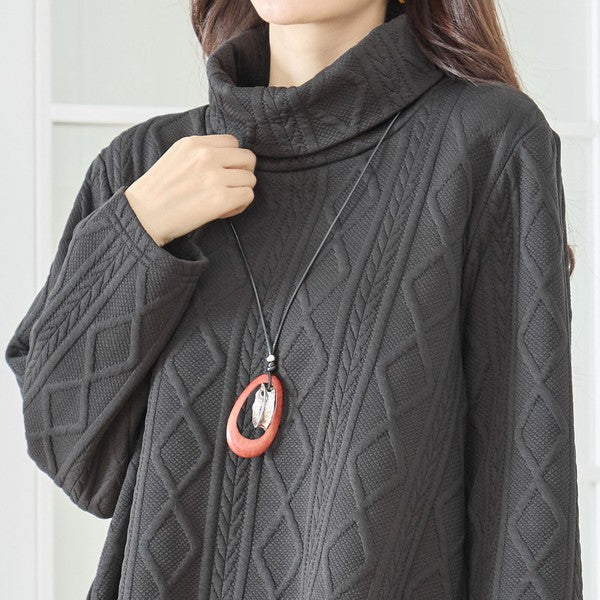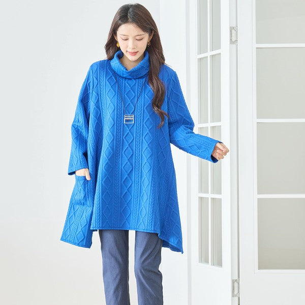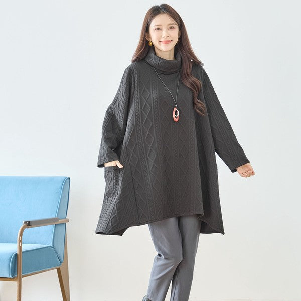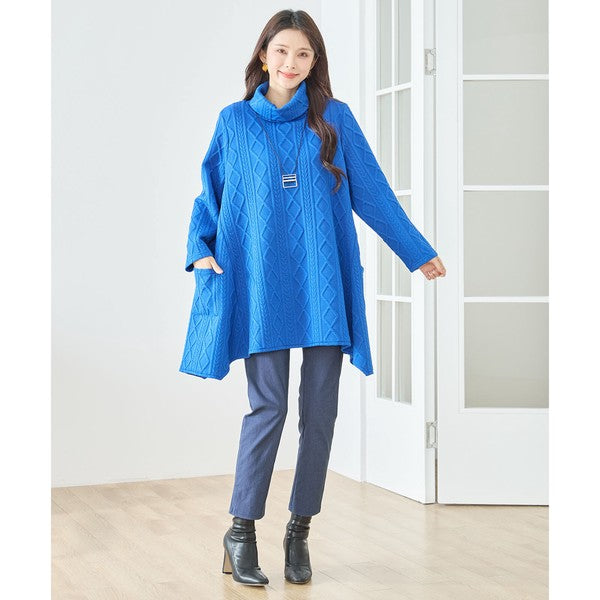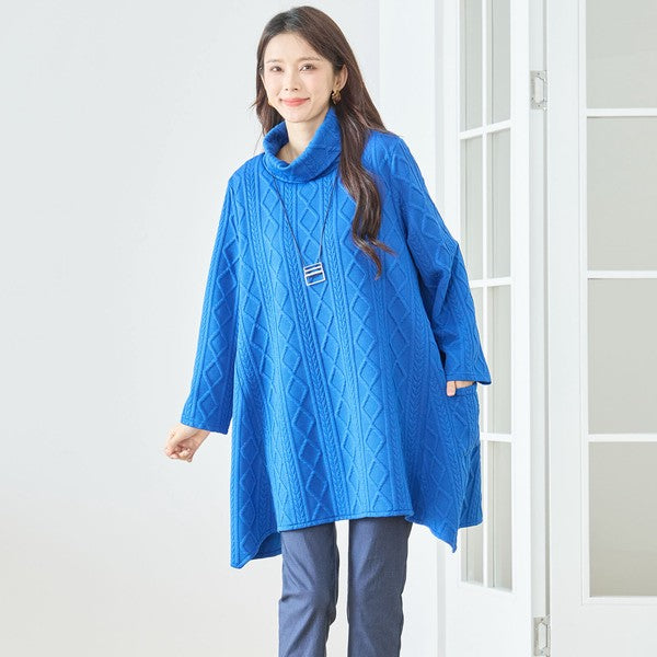 【L〜LL】立体ジャガードタートルネックAラインチュニック|ゆったり体型カバー・大人上品・TRUBE・N83-238