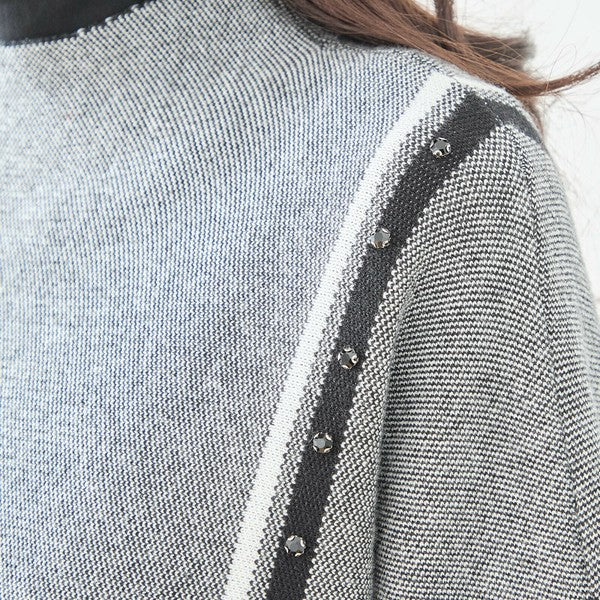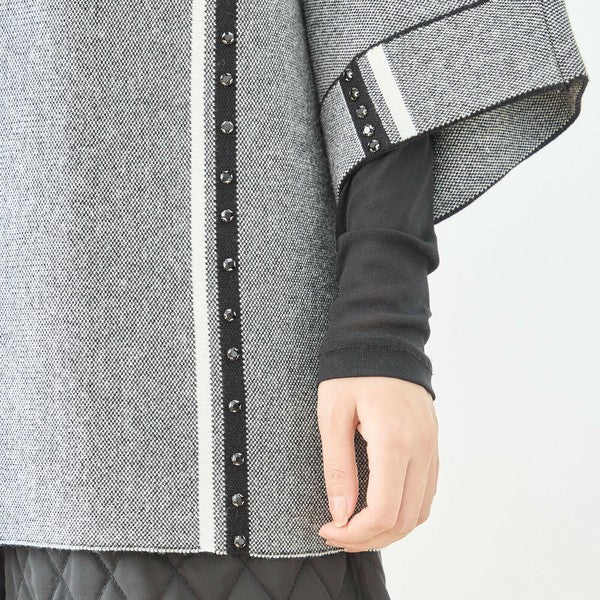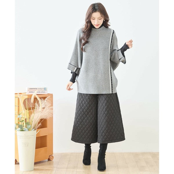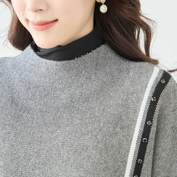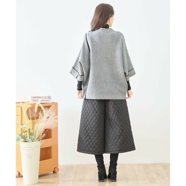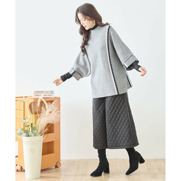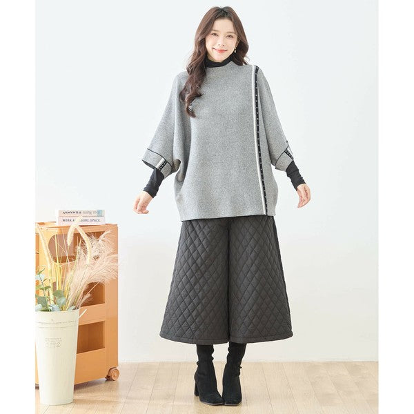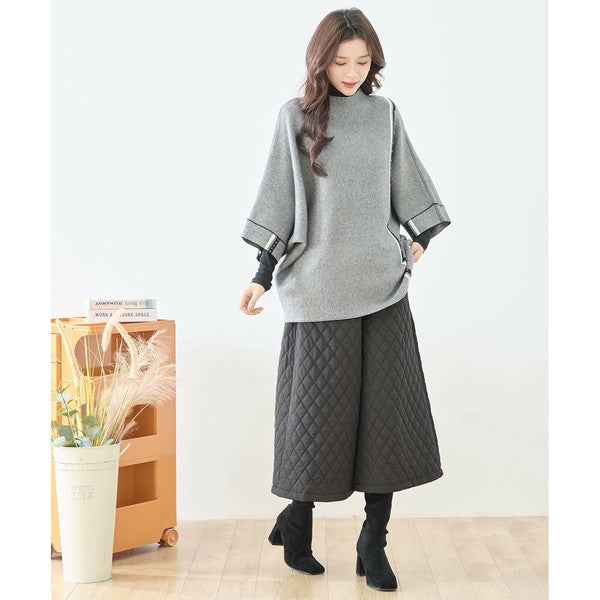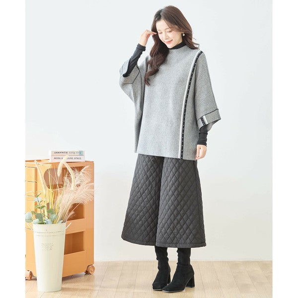 【L〜LL】配色ラインポンチョプルオーバー|ゆったり体型カバー・ハイネック・大人モード・TRUBE・N12-874