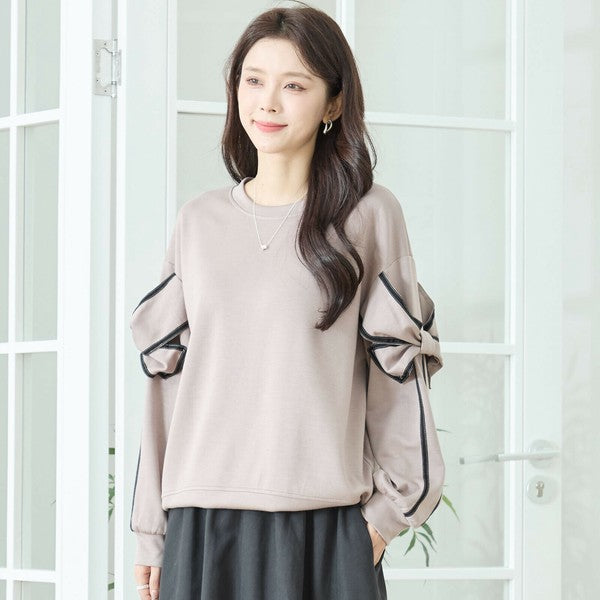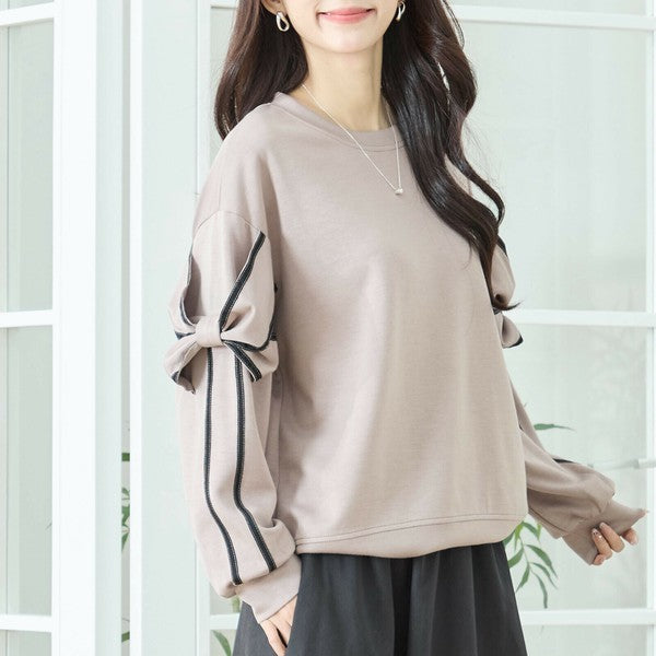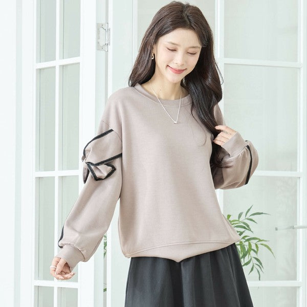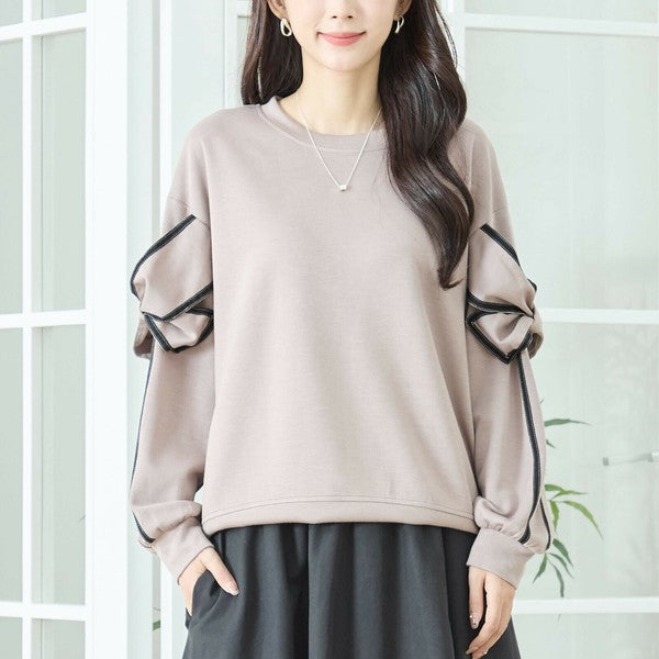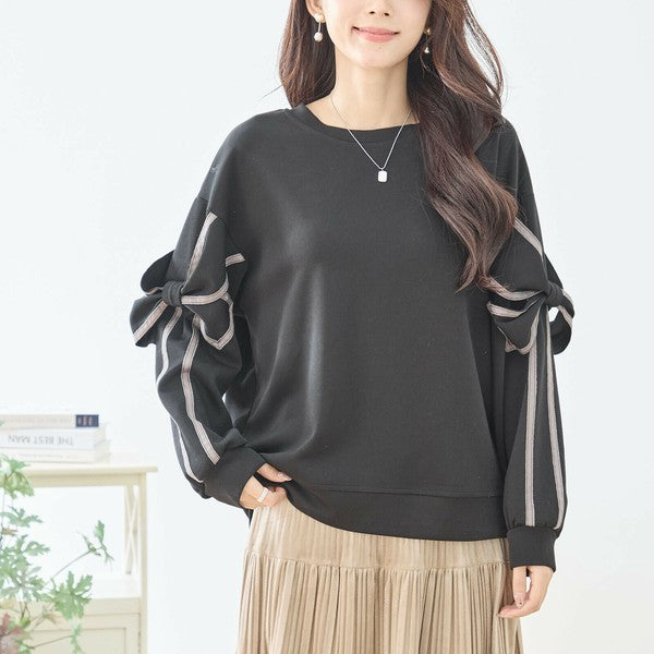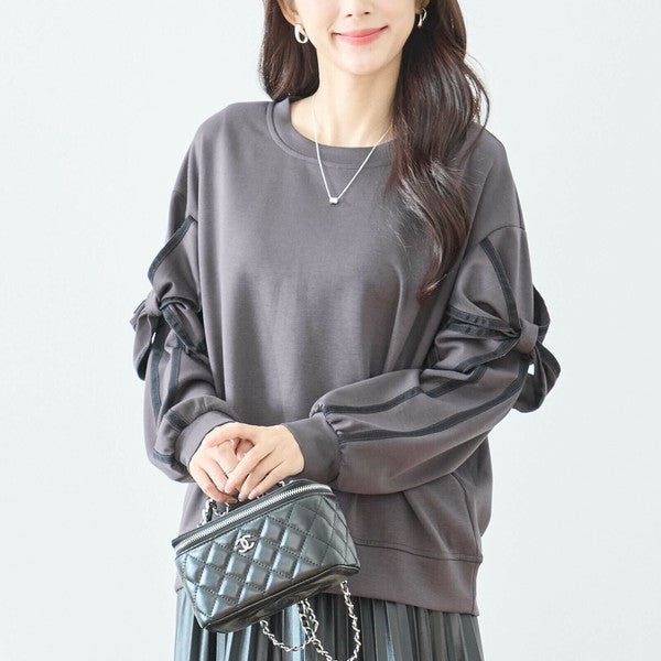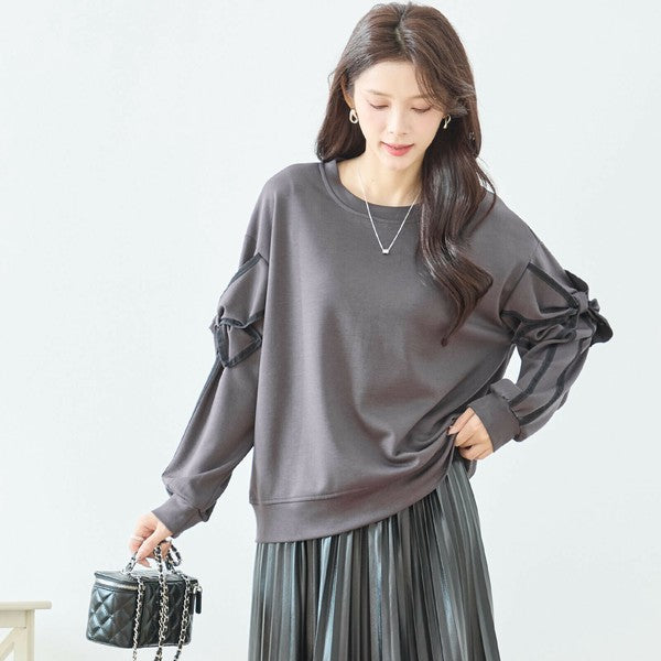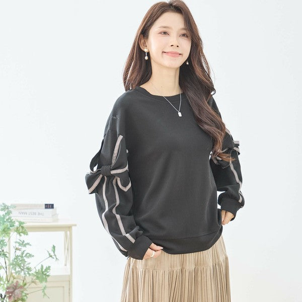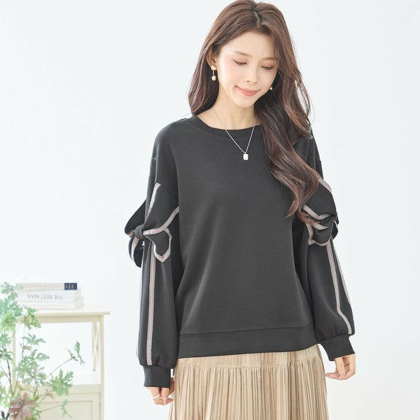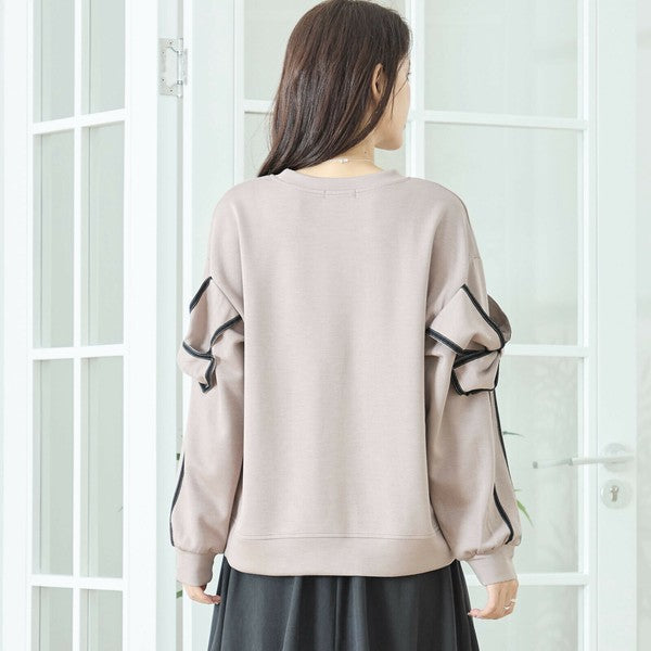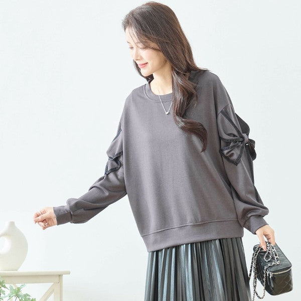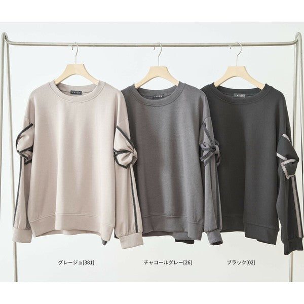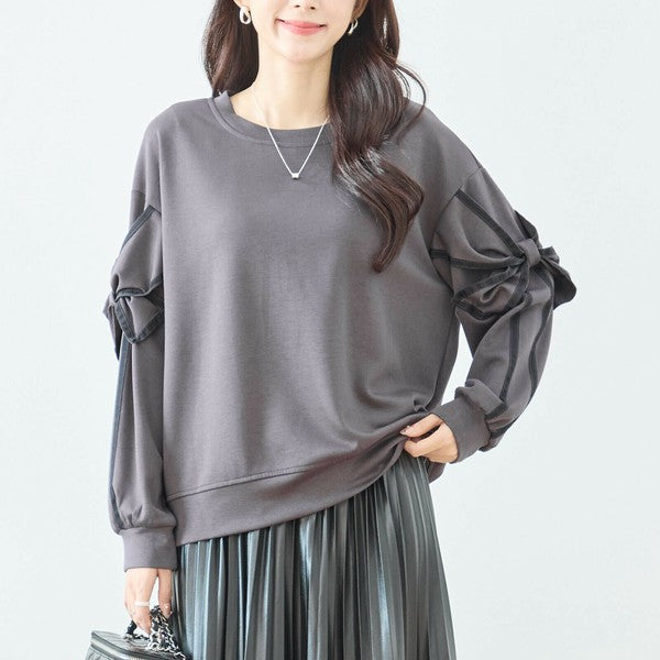 【M〜L】リボンスリーブデザインプルオーバー|大人可愛い抜け感トップス・カジュアル×フェミニン・TRUBE N13-340