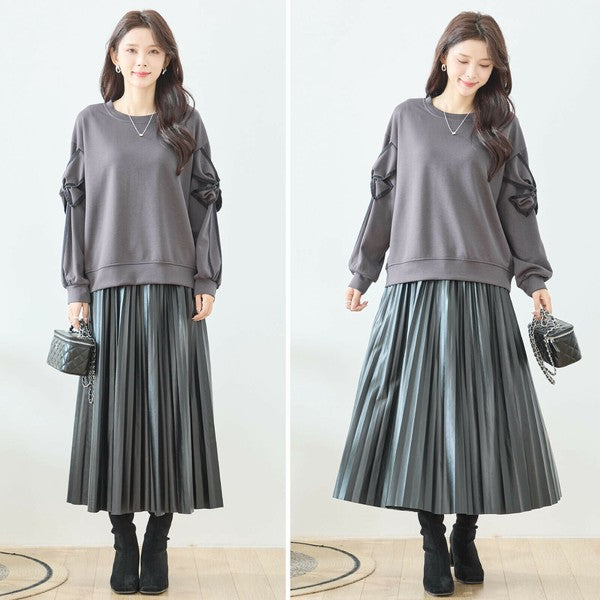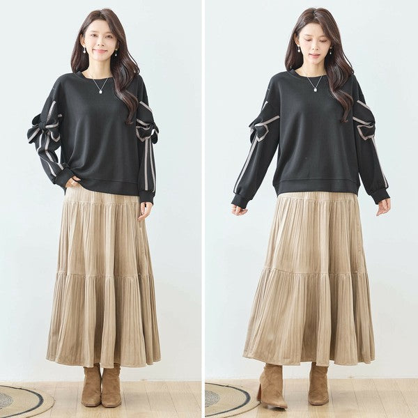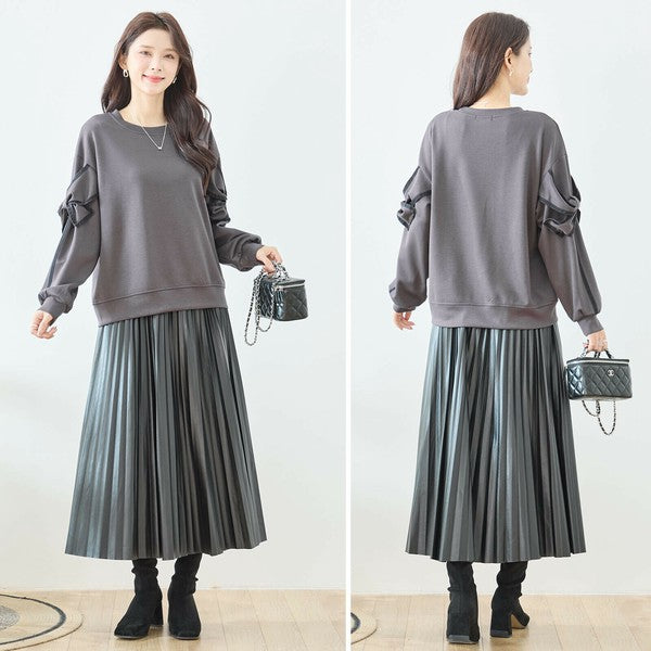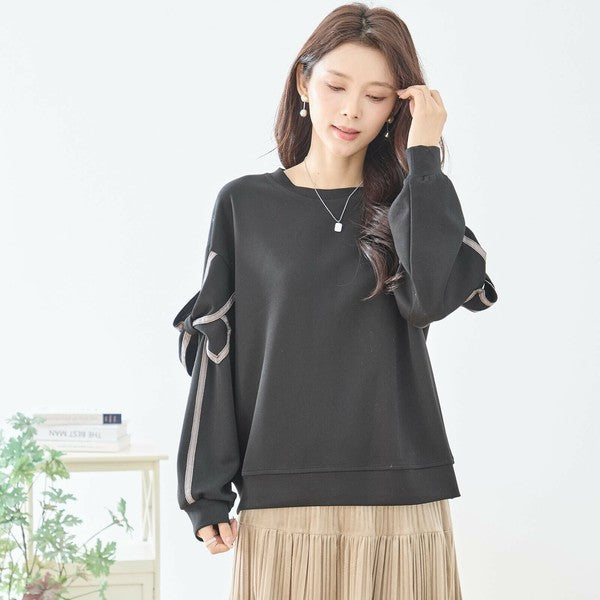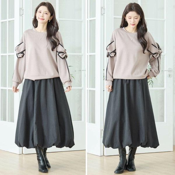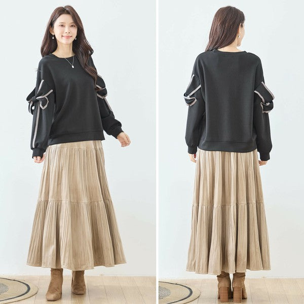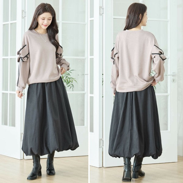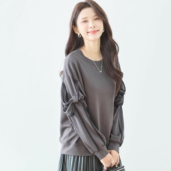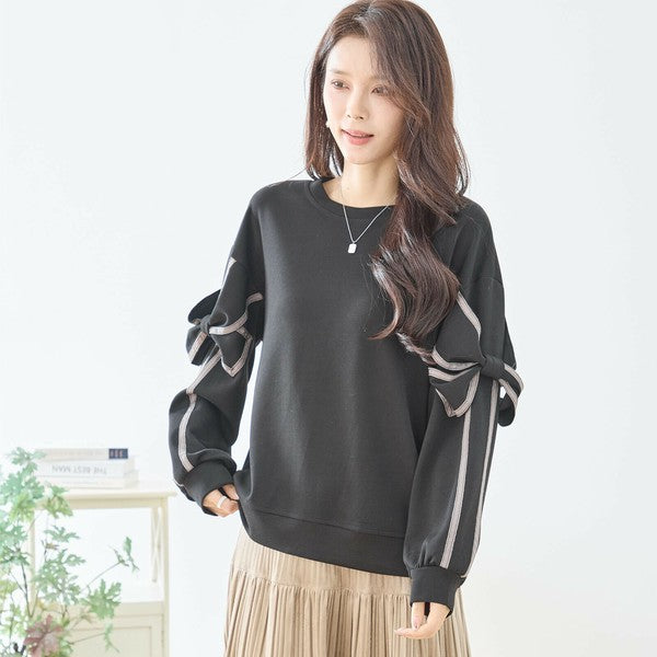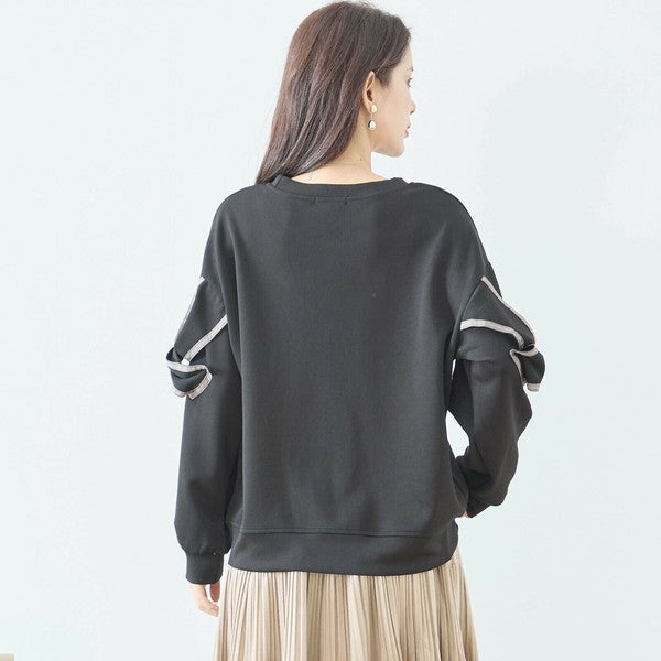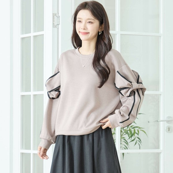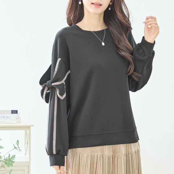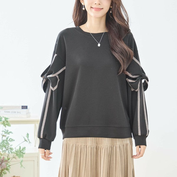 【M〜L】リボンスリーブデザインプルオーバー|大人可愛い抜け感トップス・カジュアル×フェミニン・TRUBE N13-340